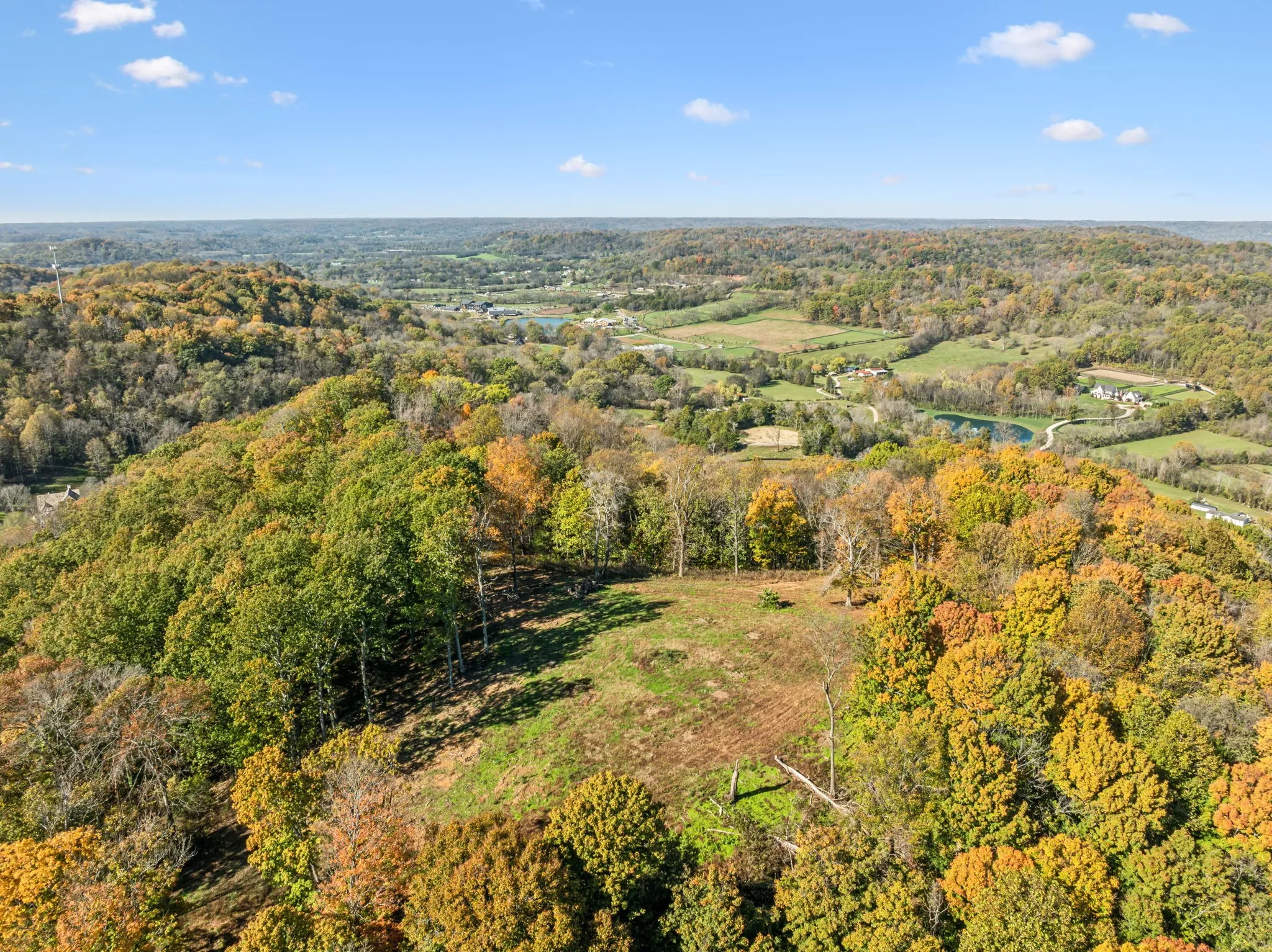 75 Acres. Gorgeous views abound!! One of the highest elevations in Williamson Co! Located approx 5 min to Downtown Franklin and 5 minutes to Leipers Fork Village. Privately located behind Southall Farm & Inn. Has underground water & electric pulled to top building site, including conduit fiber, phone & cable. Fiber in engineering w/ At&t. Hilltop building site for 4 Bedroom septic. Lower area evaluation is four 8 Bedroom and auxiliary structure up to 2 Bedroom. New paved driveway to the top building site. Rolling Meadows below have two large preliminary soil areas. If you are ready to build this is must to see.