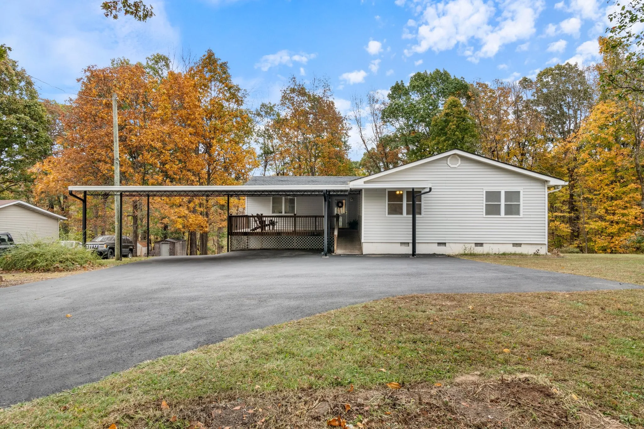 Beautiful country setting just 25 minutes outside of Nashville. Located on a dead-end street, this charming 3 bed, 2 bath home with an additional flex room sits on one acre. Huge covered front porch for enjoying the peace and quiet. Large family room and dining room perfect for family gatherings. Large primary with walk-in closet and ensuite bath. Has additional room in unfinished basement with access from outside of home – perfect for a workshop or storage. There is an additional separate garage just right off the driveway. HVAC 2 years old. Selling as is. Plenty of covered parking!