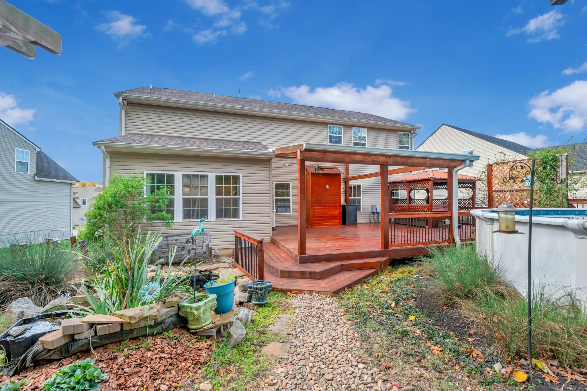 +"PublicRemarks": "Homeowners have built a new home and are READY TO SELL, QUICK CLOSE DESIRED. Looking for the next owners to cherish and create new memories in this well cared for/one owner home. PRICED TO SELL, BELOW COMPS. This custom built, one-owner home has many added extras. Open concept Kitchen (espresso-stained wood cabinets and two pantries) is open to Family Room and Breakfast Room. First floor also has a dedicated Home Office, Mud Room, Powder Room, and Formal Dining Room. Bedrooms are all upstairs, along with a Laundry Room and Oversized Man-Cave/Media Room with 120” projection TV. Large Primary Suite with jetted tub, walk-in shower with built-in bench, large walk-in closet and separate water closet. Two-car garage with massive built-in overhead storage. Beautiful hand-scraped hardwood floors, tankless water heater, custom zoned HVAC system and Security System. Samsung large capacity washer and dryer and Samsung stainless steel kitchen appliances, including large capacity fridge and gas range, can remain. New architectural roof (2022). Lot is larger than most in the area at .37 Acres. Sixty plus thousand dollars was spent creating the Outdoor retreat with professionally installed Pool (24ft steel 2015, new liner 2022), multi-level decking, mahogany gazebo for hot tub, covered decking, extensive landscaping (last pics are summer pictures), koi pond, mature trees, river rock pathways, French drains, fire pit, and protected common tree line (privacy) behind lot. Quaint community of homes nestled next to Percy Priest Lake. Home has best view of the Nashville Shores fireworks. Great location close to Percy Priest Lake and minutes to shopping, restaurants, biking, hiking, boat launches, I 40 accesses, Cook Park and Long Hunter State Park, boat ramps and golf. 15 mins to Nashville Airport and 25 to downtown Nashville. Hot tub negotiable. Home Inspection complete! Home Warranty provided!"