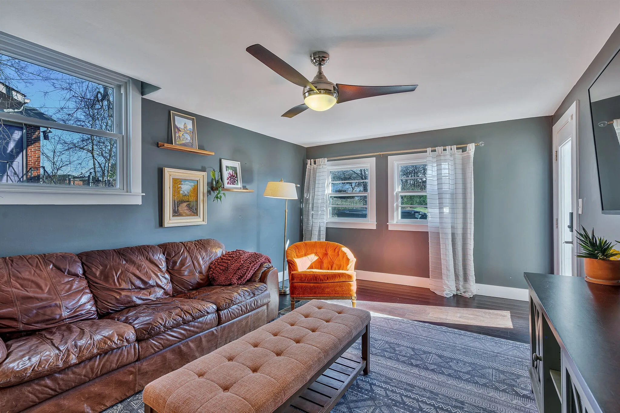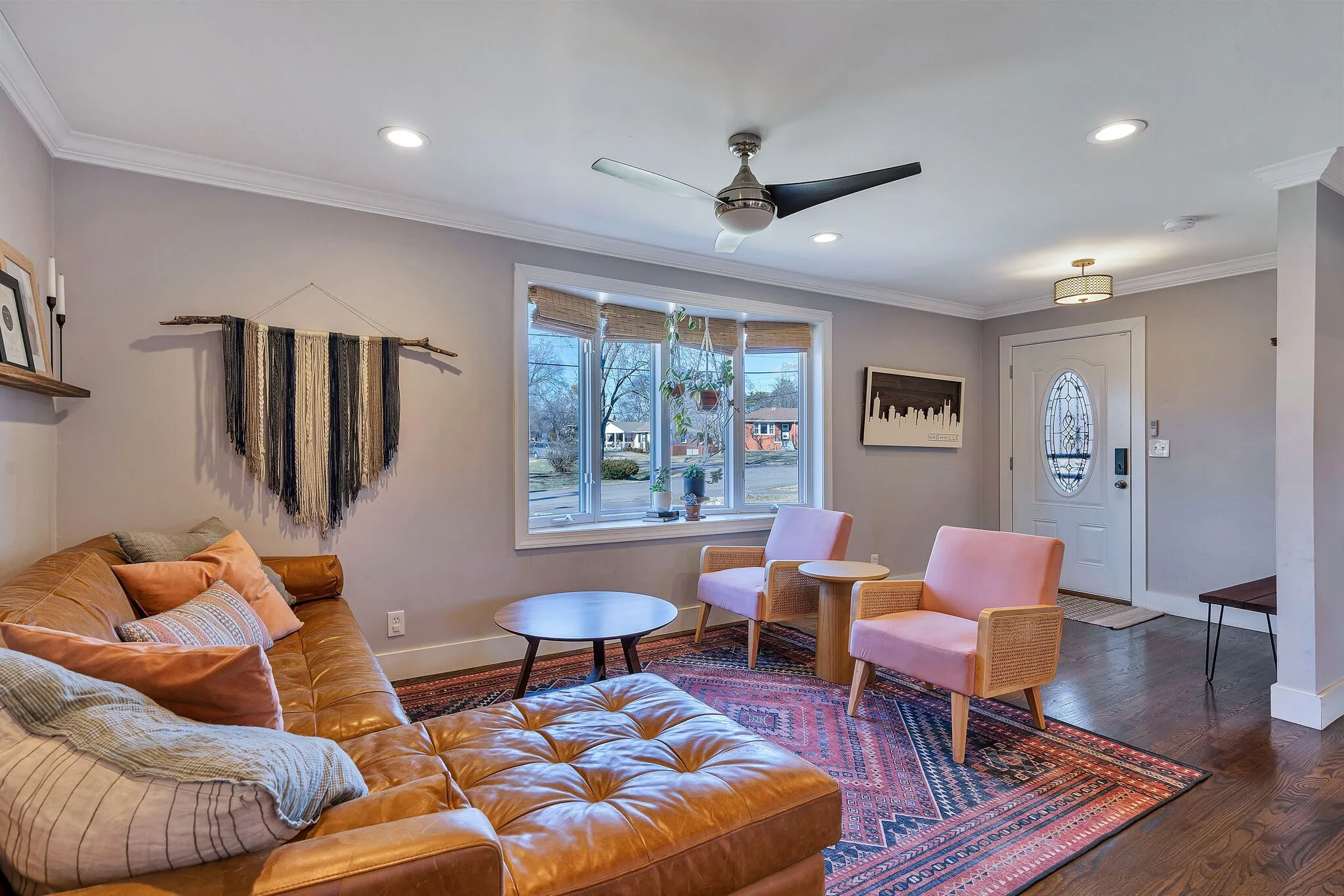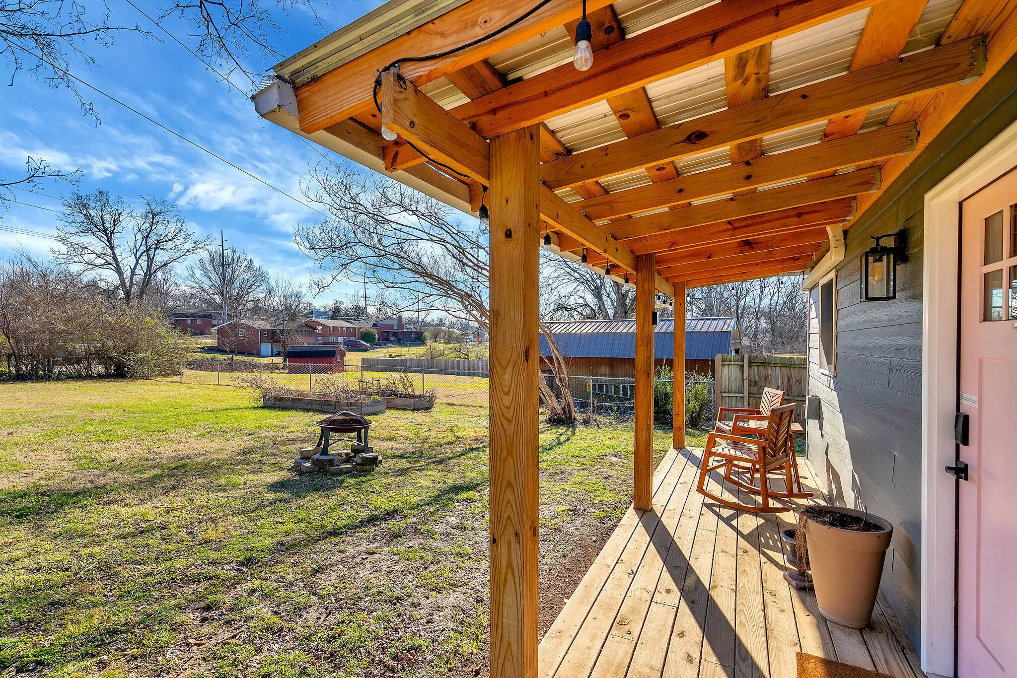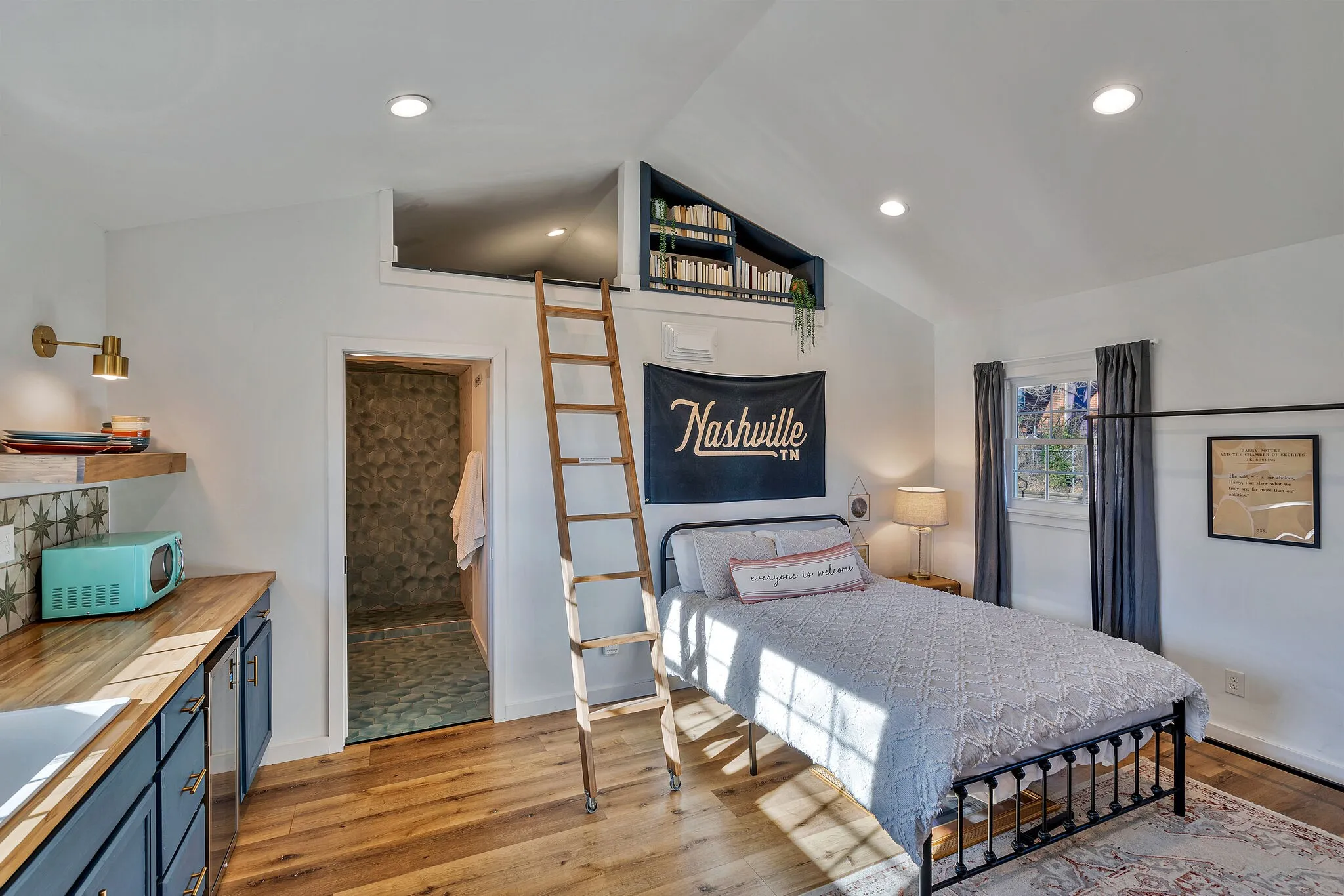 HOME WITH GUEST HOUSE! Great renovated ranch home with adorable studio apartment included–make it your home office/hobby space or 4th bedroom! On a large, fully fenced in flat lot, this home delivers an open layout kitchen/living room, butcher block countertops, primary ensuite bathroom, all hardwoods, and a covered patio for grilling. Just minutes from Target, Kroger, Planet Fitness, Sylvan Park and The Nations restaurants all on a quiet street but easy access to I-40. Great place for those who crave one level living and like to entertain. Ample off-street parking and EV charging outlet. Freshly painted main house. Zoned for brand new high school. House is NOT furnished, staged to show you the potential. Max 3 occupancy or family with small kids. Small Pet OK with additional $25/mo pet fee. Tenant to pay $45 for bkgrd check.