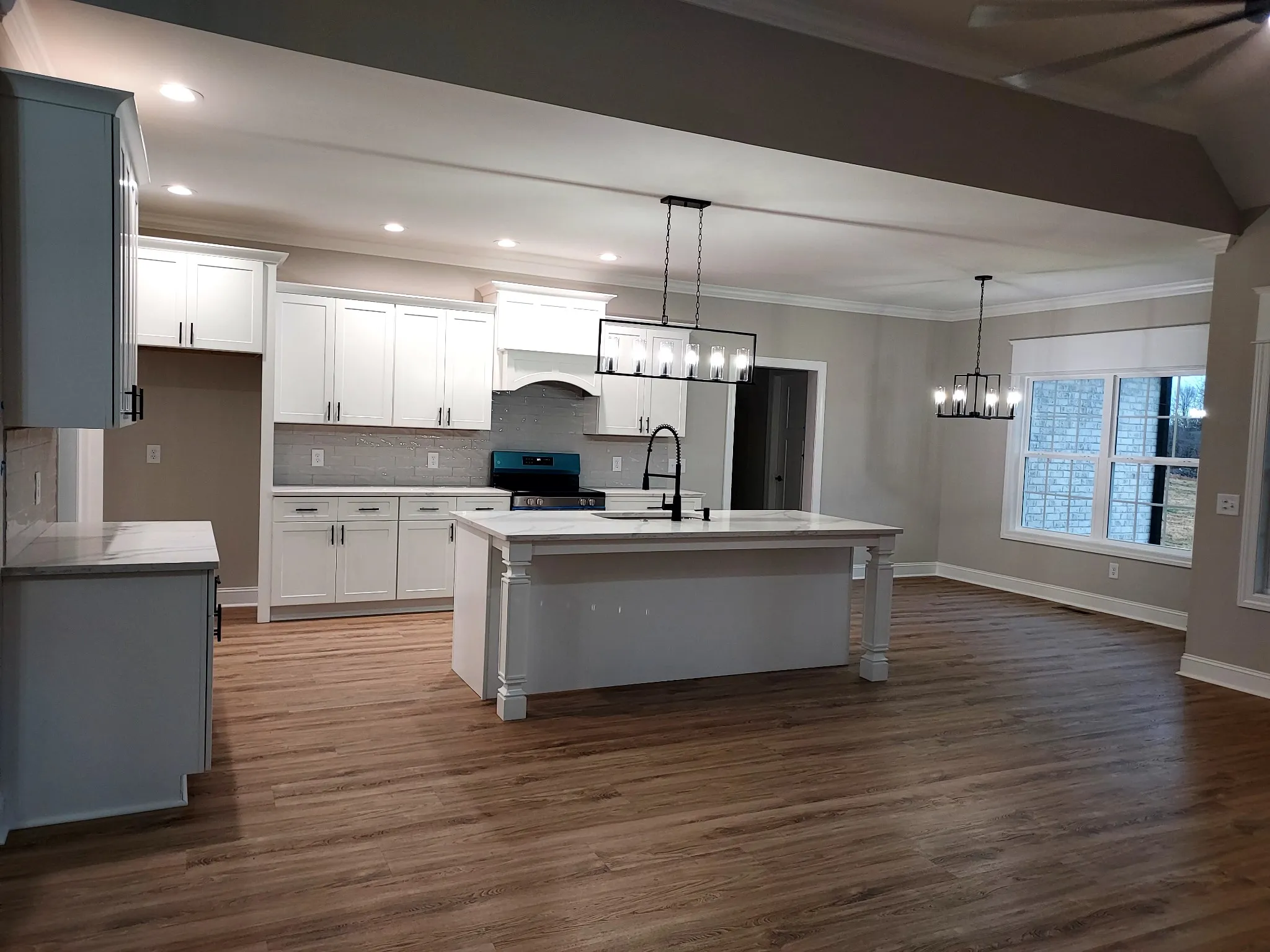 New brick home on 5 acres in great location close to town. House has large rooms with 3 bedrooms, 2 full baths, separate dining room and bonus room over garage. Kitchen and breakfast nook and large living room together. Zoned bedrooms with large master bedroom, master bath with tile shower and walkin closet. Features include shaker style white cabinets with quartz counter tops. Appliances include stove, dishwasher and microwave. All flooring is high quality luxury vinyl except bonus room has carpet with hardwood steps. Covered porch and patio on back. Workmanship of this house is top quality.