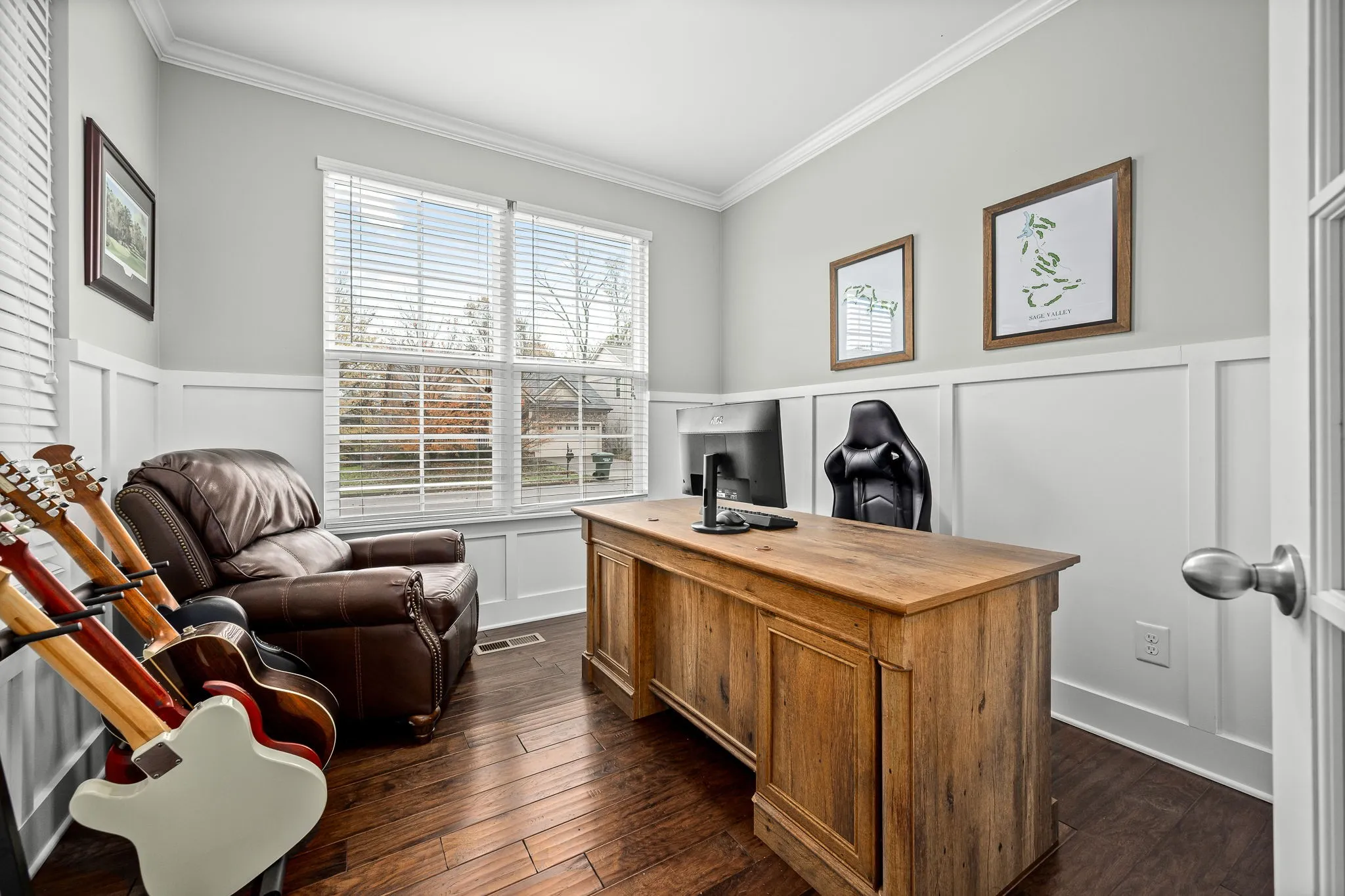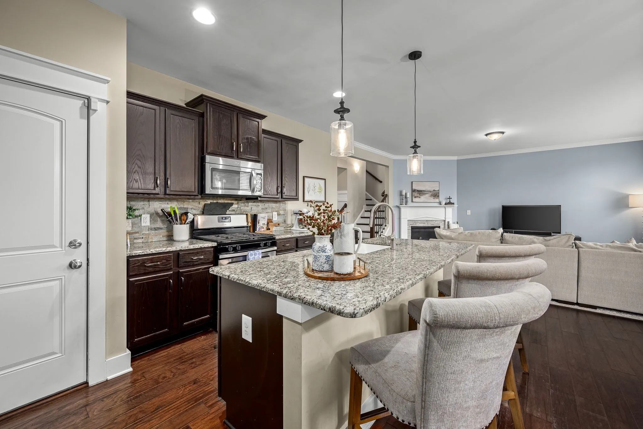 Welcome this this move-in ready home situated on a corner lot. As you step inside you’ll be wowed by the custom judges panelling in foyer & office & hardwood throughout the entire home. Home office includes french doors & closet that could make it a 4th BR. Moving into the living space, enjoy the open floor plan, perfect for hosting & entertaining! This stunning kitchen includes granite countertops, ss appliances, tile backsplash, oversized sink, gas range, & walk-in pantry. a convenient “drop zone” for bags, shoes, & coats. In the living room, grab a book or cup of coffee & cozy up next to the fireplace. Upstairs you’ll find a spacious loft/flex area, extra storage closets, & spacious primary suite w/ vaulted ceilings, custom built walk-in closet, tiled shower, & double vanity. Outside enjoy the newly renovated deck w/ privacy wall perfect for entertaining & grilling or walk over to the neighborhood playground & walking trail. Convenient to Lenox Village, Brentwood, Nashville, BNA, parks, schools, shopping, etc.