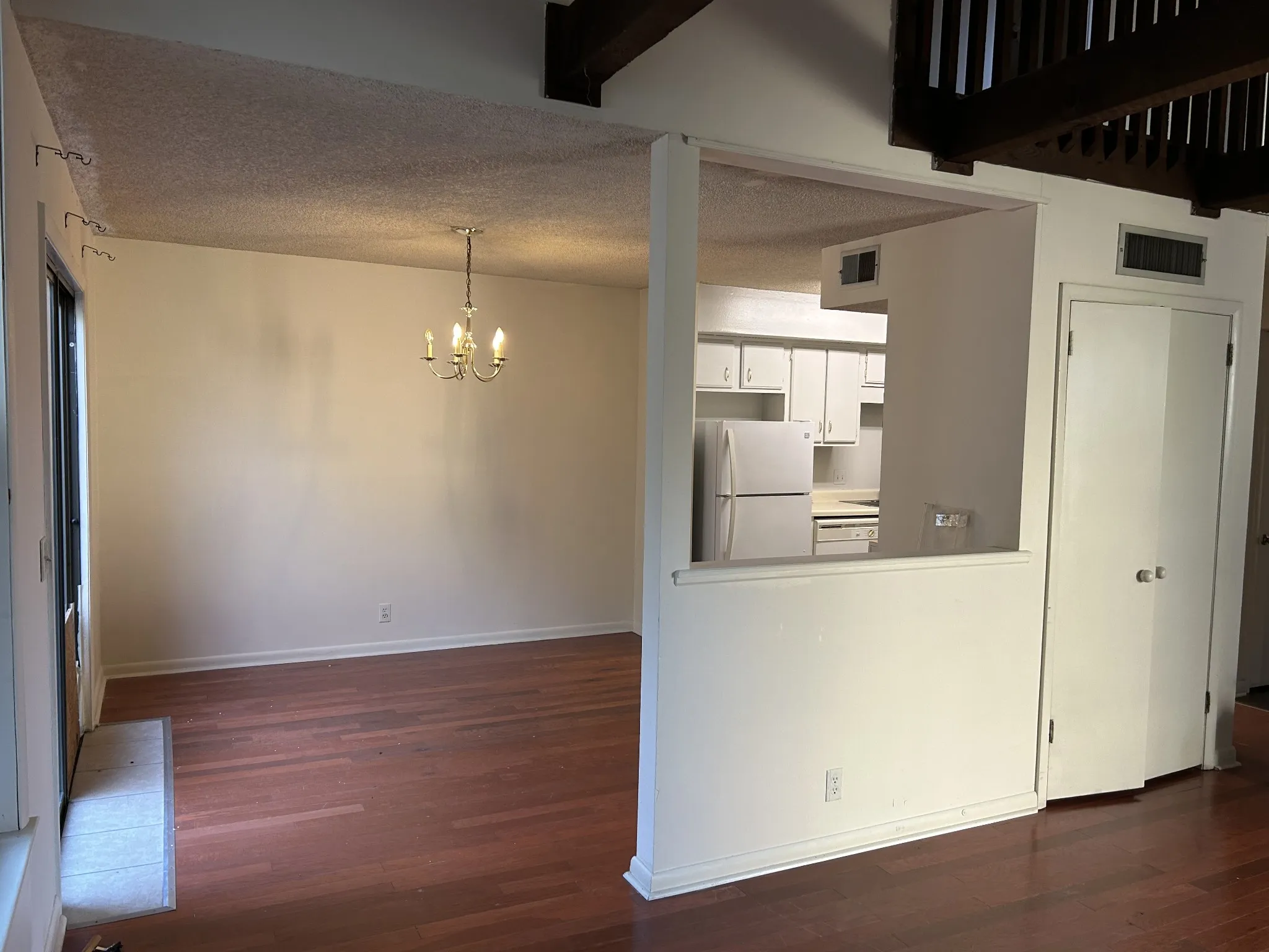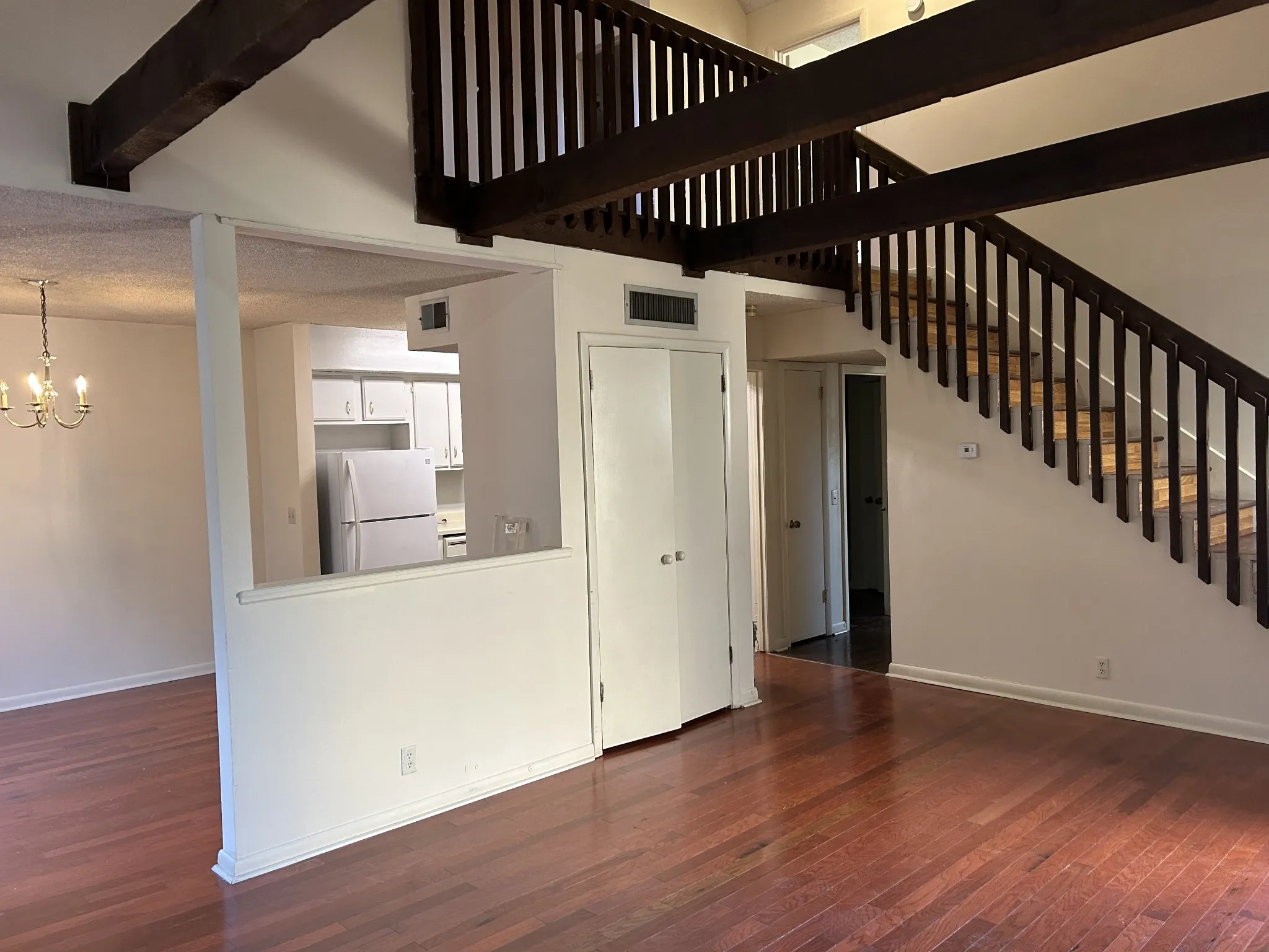 Loverly Duplex ready for new tenant. Huge 2 bedroom with loft overlooking living room, Great space with soaring living room ceilings, nice fireplace wet bar, and storage room. Both bedrooms are very large and have private baths. The loft would make a great office or bonus room area. Fresh paint and wood floor, 4 autos can be parked in the front driveway. Very convenient to I-24.