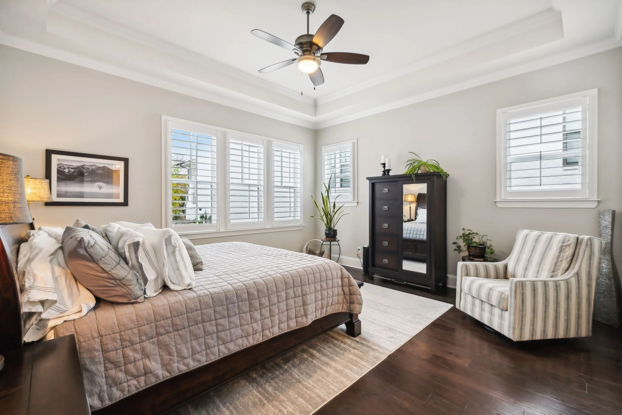 +"PublicRemarks": "Welcome to 642 Lockwood Lane, a custom-built masterpiece nestled in Franklin, TN. This elegant home features five luxurious en-suite bedrooms, with two conveniently located on the main level, offering over 4,210 square feet of modern living space. With over $85,000 in upgrades, this residence seamlessly blends sophistication and comfort. Inside, you'll find custom wooden shutters with window treatments that enhance the home's modern aesthetic. The chef’s kitchen is equipped with top-of-the-line stainless steel appliances. The inviting living area, highlighted by a cozy fireplace, opens to an enclosed patio, perfect for seamless indoor-outdoor living. The master suite serves as a true retreat, complete with a walk-in closet and a spa-like bathroom. The property also boasts an attached garage with Guardian flooring, a sealed front porch, and a large flagstone patio with immaculate hardscaping, including raised beds and meticulous landscaping with outdoor uplighting. The beautifully landscaped and fenced side yard is ideal for pets or a play area for children. Located just minutes from downtown Franklin, this home is a rare find, offering modern elegance and unparalleled amenities in a sought-after location."