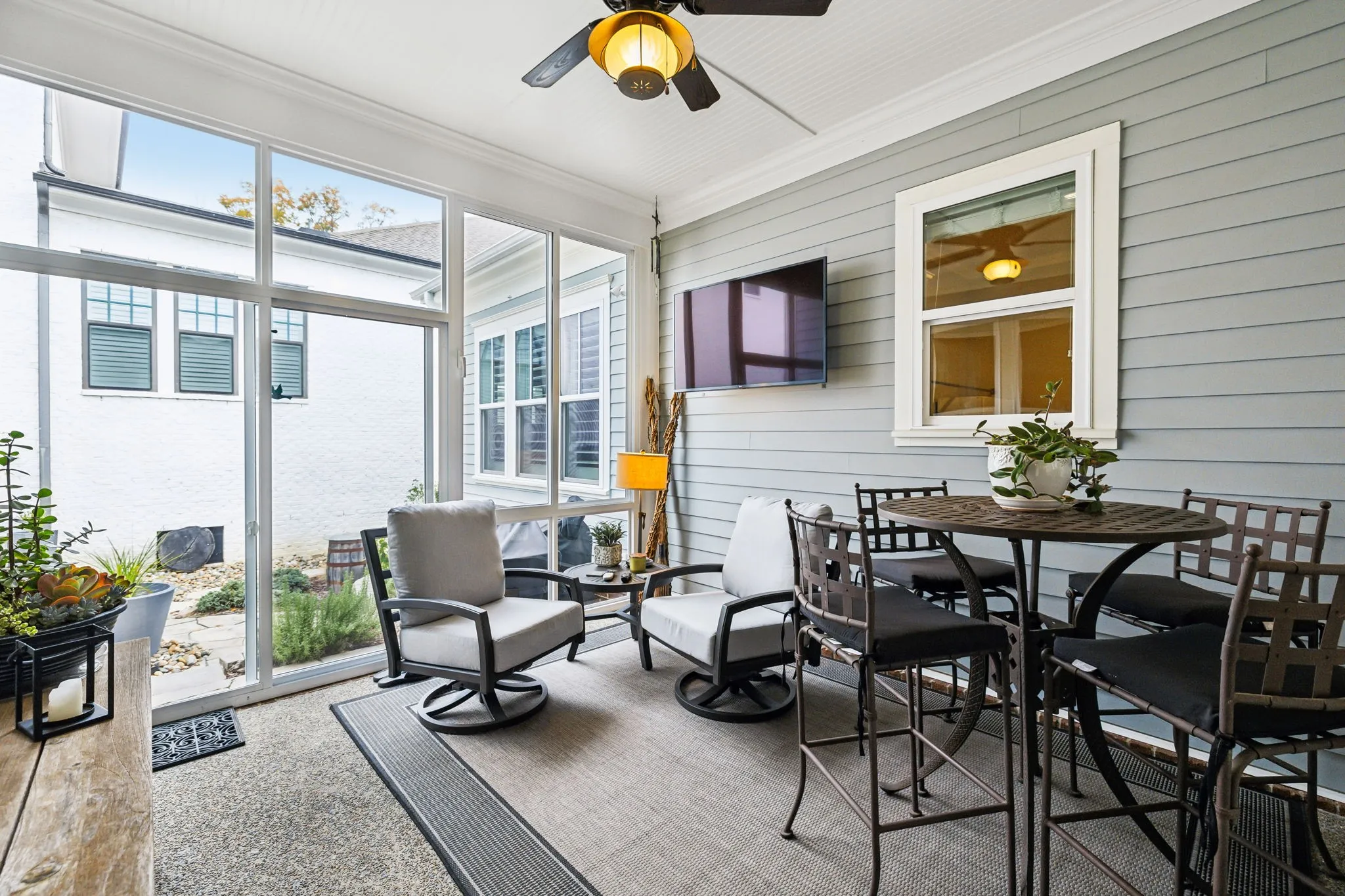 "LongDescription" => "Enclosed patio off main floor living area leads to custom designed side yard"