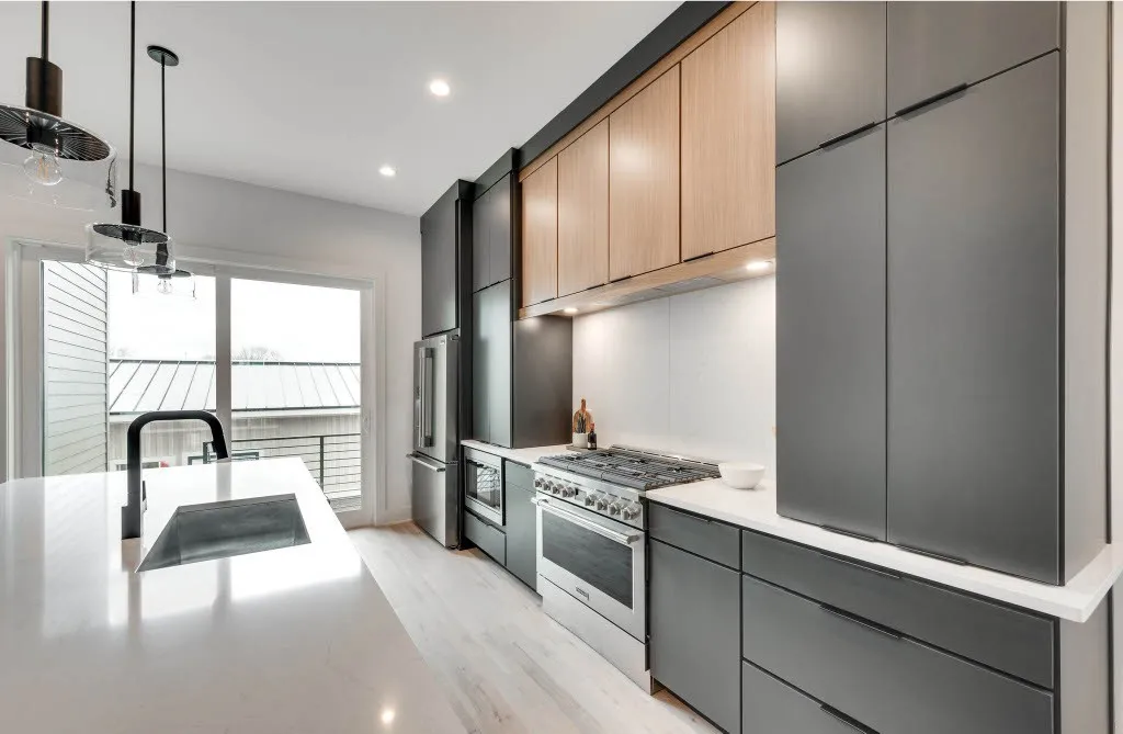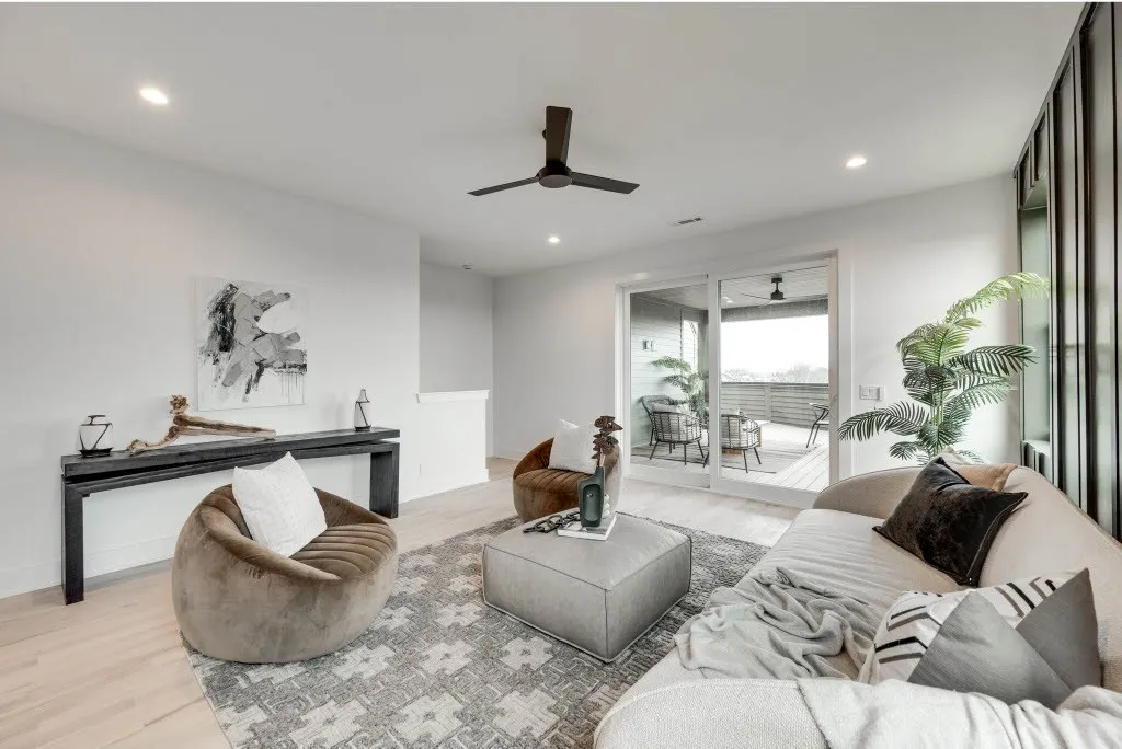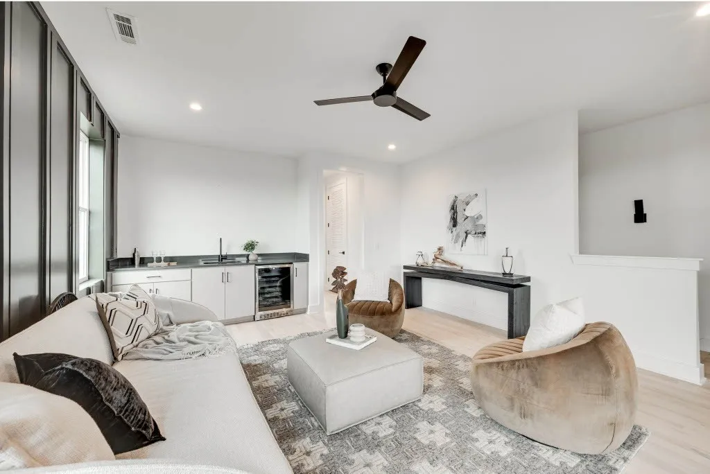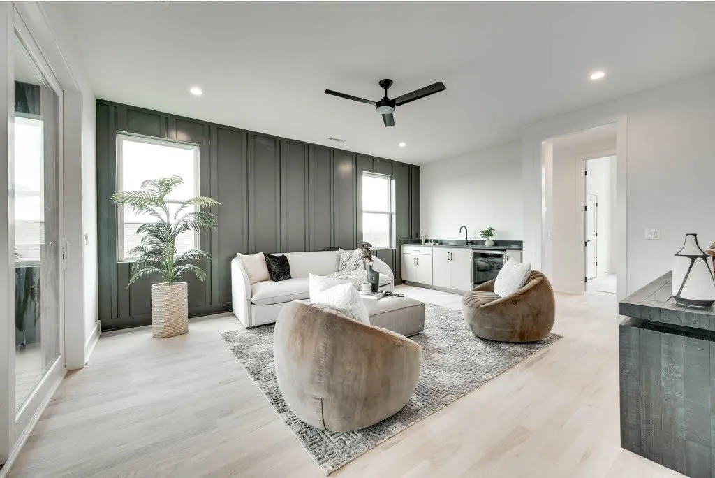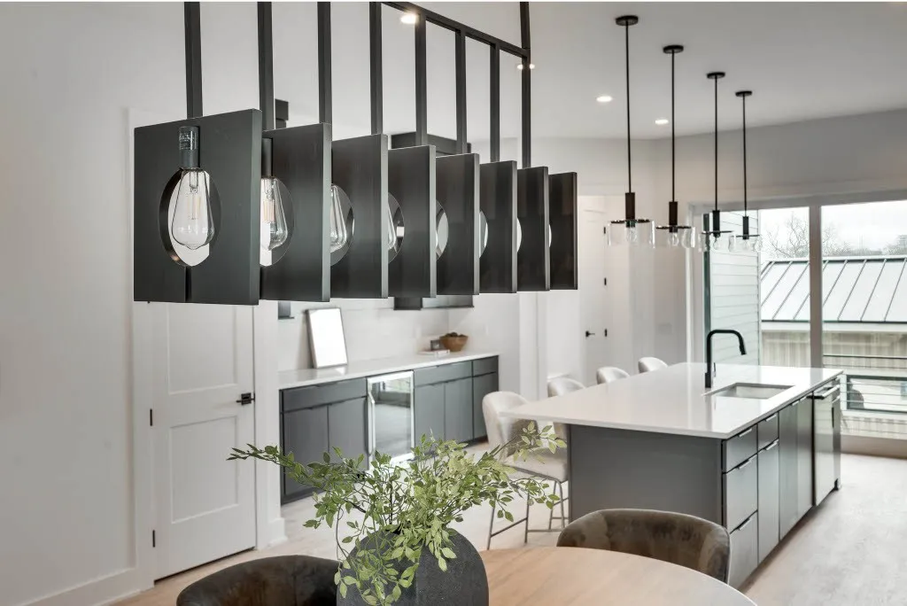 Stunning new construction home in desirable 12 South offers luxurious living in a prime location! Within walking distance to local restaurants, coffee shops, retail shops and parks. Minutes away from Belmont University, The Gulch, Wedgewood-Houston and Downtown! This modern 3 story home features designer lighting, custom built ins, lots of storage, private backyard, 2 car garage, flex space with wet bar, covered 3rd floor balcony with staircase leading to a 4th level rooftop deck equipped with gas, water, electricity and Downtown Views!