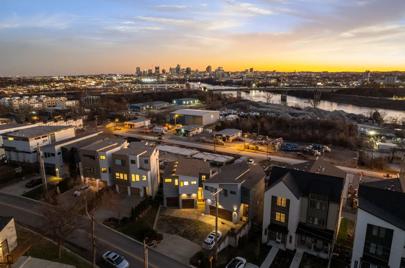MODERN NON OWNER OCCUPIED AIRBNB – SHORT TERM RENTAL DEVELOPMENT WITH CITY VIEWS & ROOF TOP HOT TUBS! Introducing Hudson Row, a premier collection of 9 units meticulously designed to optimize short-term rental income potential. These California-inspired contemporary homes boast open floor plans bathed in natural light, showcasing high-end finishes and thoughtful details at every turn. Key Features: + Chef-inspired kitchens with eat-in islands, ample cabinetry, and quartz countertops. + Spacious living areas perfect for relaxation or entertaining. + Luxurious primary suites with premium finishes. + Durable and stylish LVT flooring, high-efficiency appliances, LED lighting, tankless water heaters, and high-performance HVAC systems. + Expansive rooftop decks featuring stunning skyline views, with optional outdoor kitchens and private hot tubs. + Two-car garages large enough to use as additional entertaining spaces. + Located adjacent to the River North development, this property benefits from its proximity to over $12 billion in new construction projects, including the new Titans Stadium, Top Golf, East Bank redevelopment, Station East, and Oracle’s headquarters. Zoned MUL, Hudson Row is a prime VRBO and NOO STR short term rental investment opportunity in one of the most exciting areas of the city.