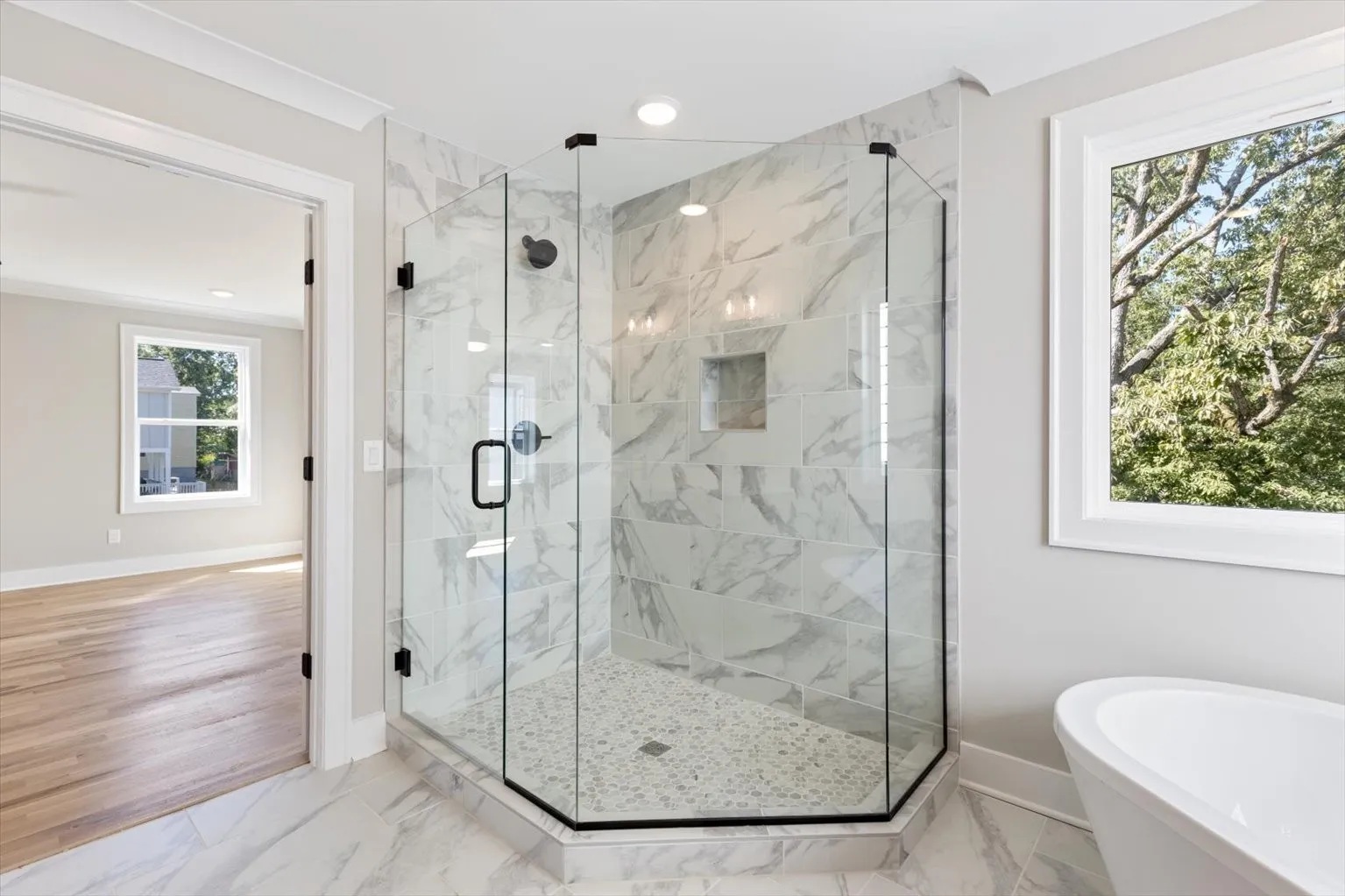 Experience the epitome of lavish living in this sleek & stunning new home nestled in the coveted Charlotte Park neighborhood of Nashville. A seamless fusion of sophistication, comfort & modern functionality awaits you. Bask in polished, open-concept living, boasting high ceilings, custom trim, and hardwood floors. The gourmet kitchen, adorned with top-tier SS appliances and quartz countertops, invites culinary delights. Retreat to the spa-like primary suite with dual sinks, a soaking tub, and glass-enclosed shower. Entertain on the back deck overlooking the shaded back yard, or by the custom woodwork-adorned gas fireplace. Complete with a 2-car garage, custom mudroom, and extra storage.