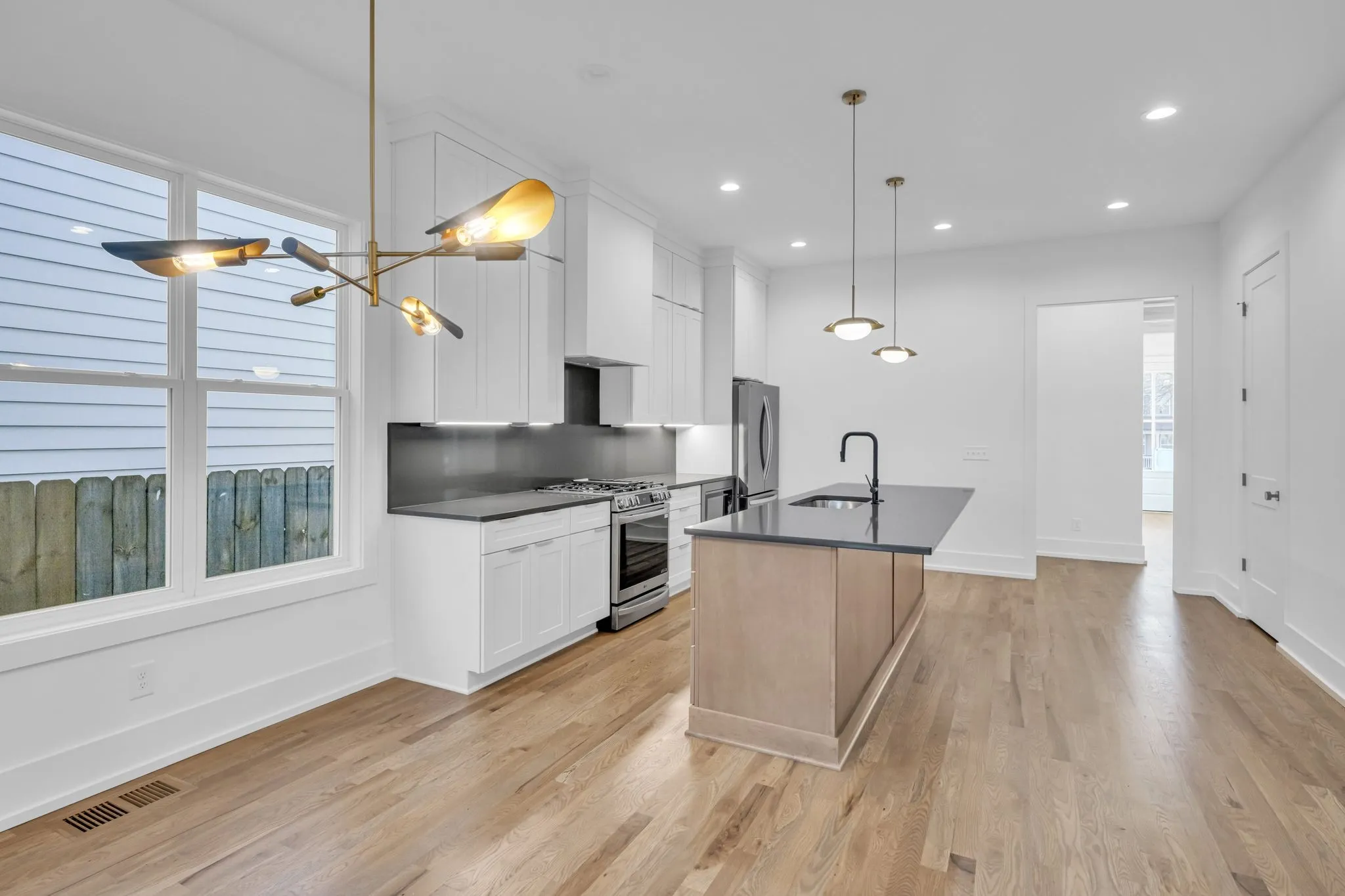 Location, Location, Location! Walk everywhere from this fabulous location in The Nations. First class finishes in this new construction. The unfinished space above the garage has been stubbed in for electric and plumbing. Finish this space for a mother in law suite or home office. This is a must see! Gas fireplace, Gas stove, All hardwoods and tile. Marble showers and a separate soaking tub in the primary. Tankless gas water heater. Stainless appliances. Covered back porch. Fenced in yard.