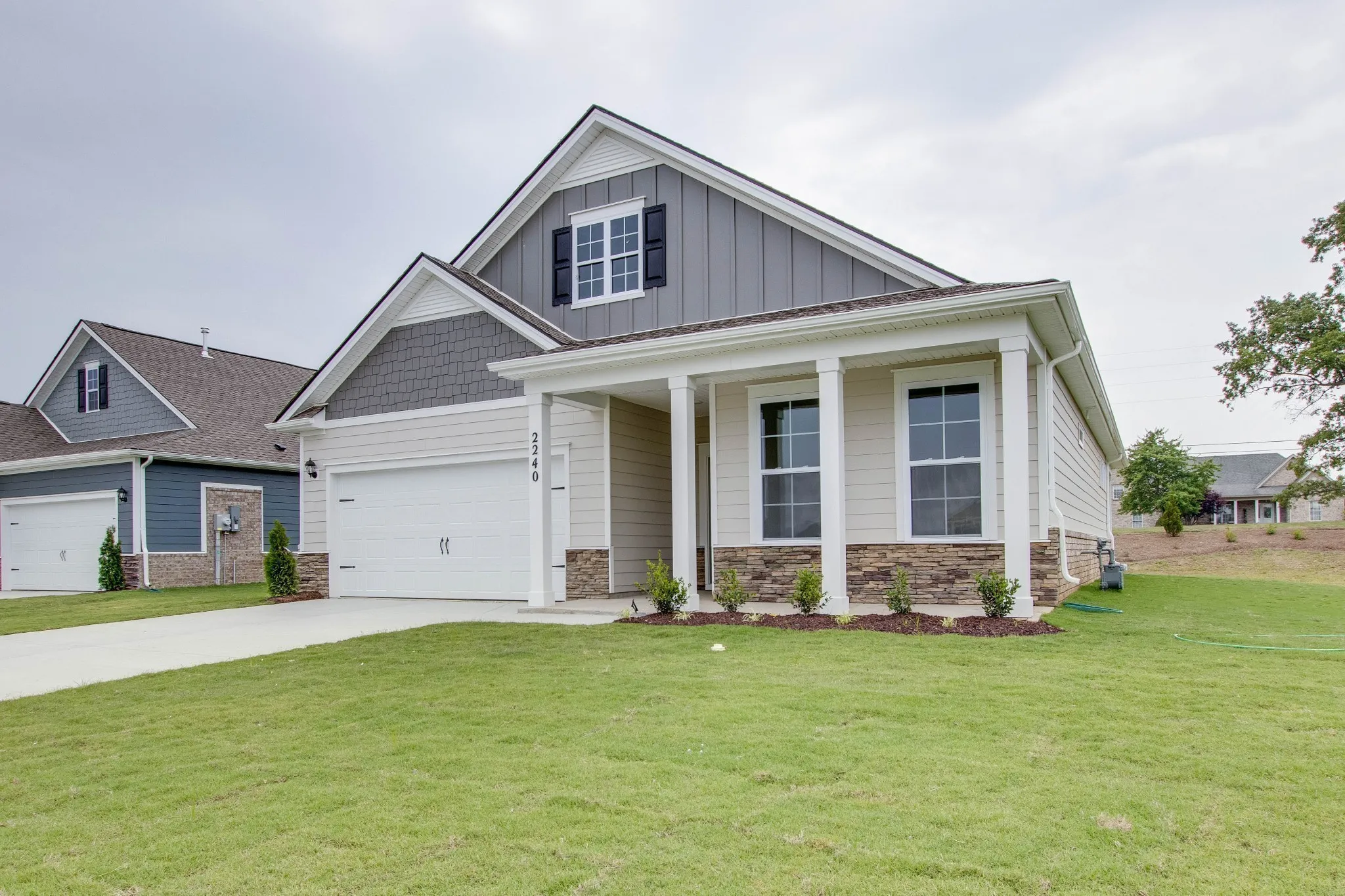 +"PublicRemarks": "$7500 builder incentive towards closing costs and 4.99-5.5% locked in rate with preferred lender! Cash buyer? We love you too! Ask about how we can help you! Lot #297 backs up to green space! Located our final phase, this adorable Arlington plan is a 3 bed, 2 bath one-level with a large primary bedroom, covered front porch and covered back patio! The home features quartz countertops in the kitchen and bathrooms, Whirlpool stainless fridge, stainless gas range/oven, dishwasher & microwave. Kitchen & baths have white cabinetry kitchen backsplash, tile & laminate flooring throughout. Gas tankless water heater. James Hardie siding all four sides, stone and brick accent. Resort style pool, firepit, clubhouse with 2 pickleball courts and walking trails! All this in a quiet rural setting but within minutes of restaurants, shopping and I-65!"