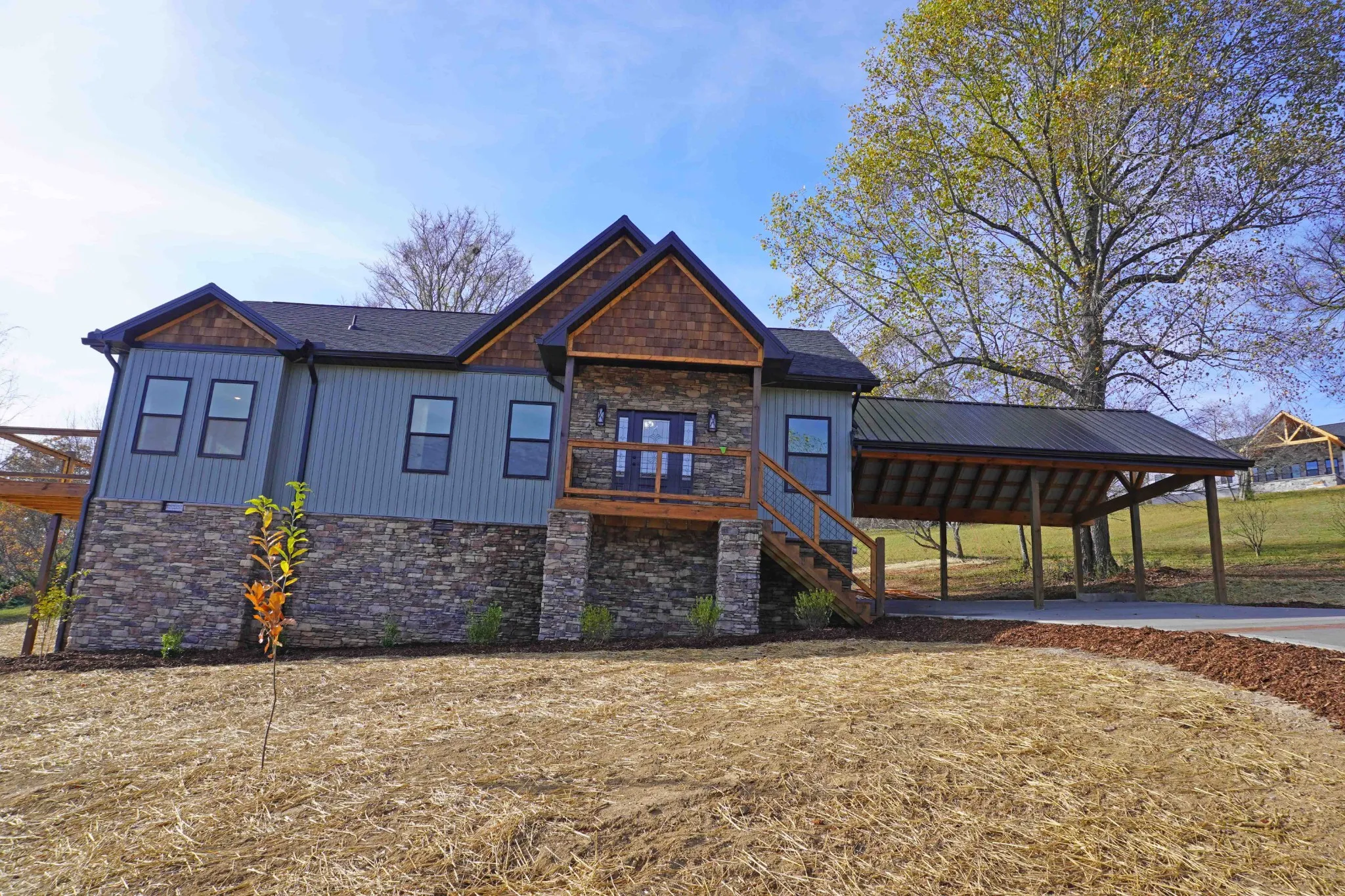 BRAND NEW!!! ON 1.55 ACRES. Start your tour through the beautiful entry door with side lights. This gorgeous house has spectacular views of the mountains including Mt. LeConte from the great room and very large deck. Granite countertops throughout with modern soft close cabinetry. Mat black plumbing fixtures too. The great room has 16.5ft ceilings, 9ft ceilings elsewhere. Beautiful floor to ceiling stack stone fireplace, LVP flooring throughout, modern disc lighting in the ceilings. There are upscale light fixtures, smart mirrors in the bathrooms. The exterior of the home is smartly finished with stack stone, modern vinyl, and shack singles. The roof has a combination of metal and architectural shingles. DON’T WAIT TOO LONG, come take a look at this beautiful home. Of course, the views are much better in person than in pictures. So, set your appointment now! Virtual staging has been used.