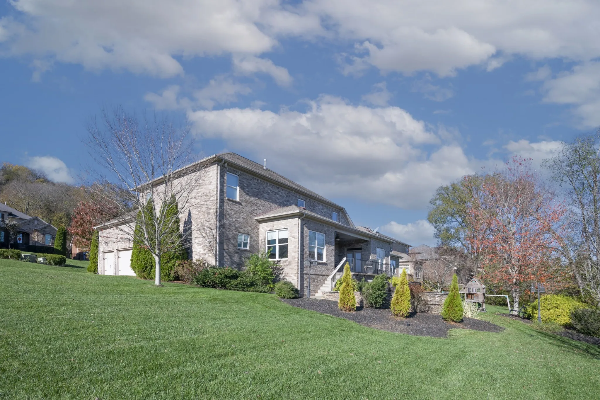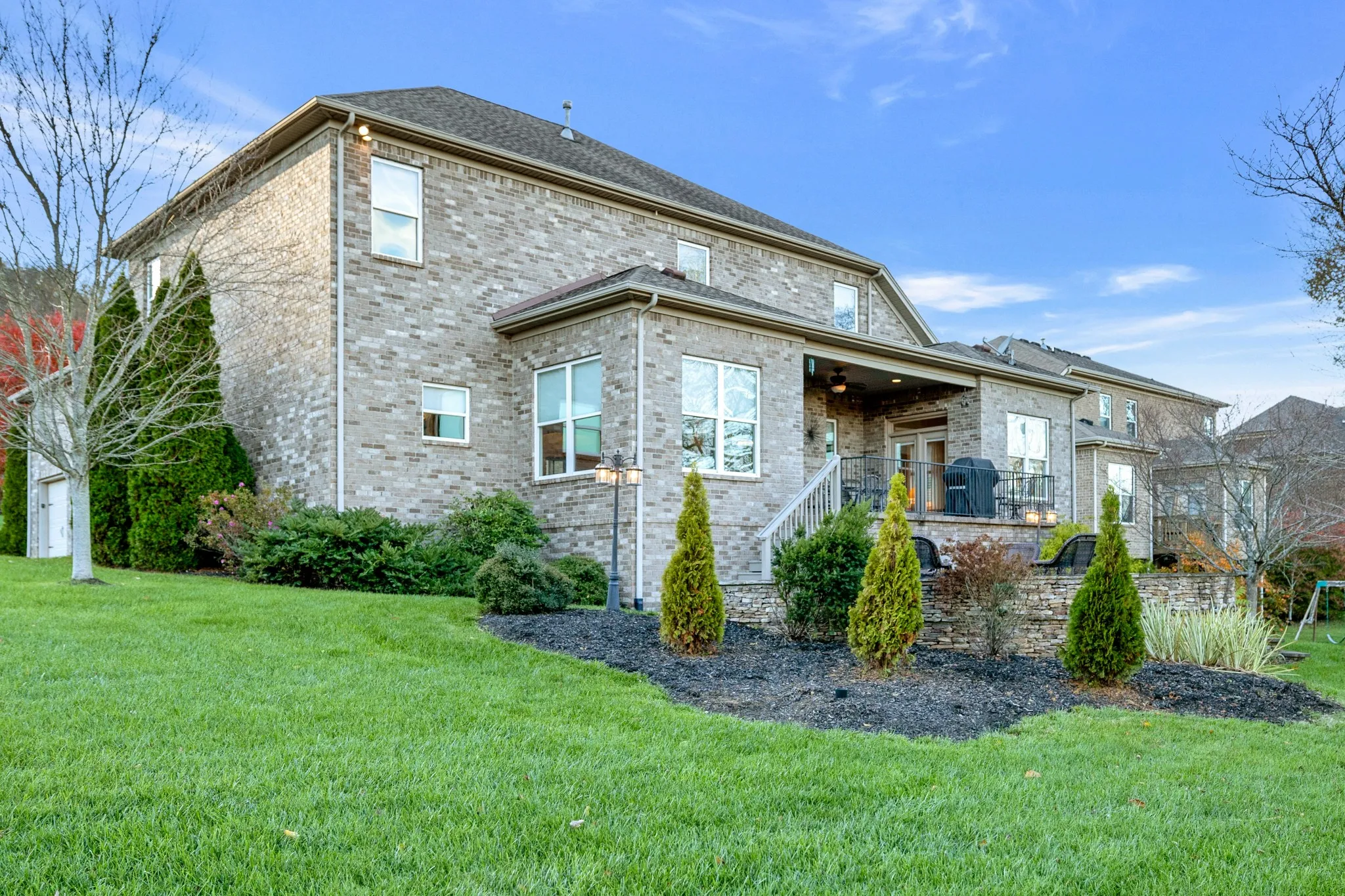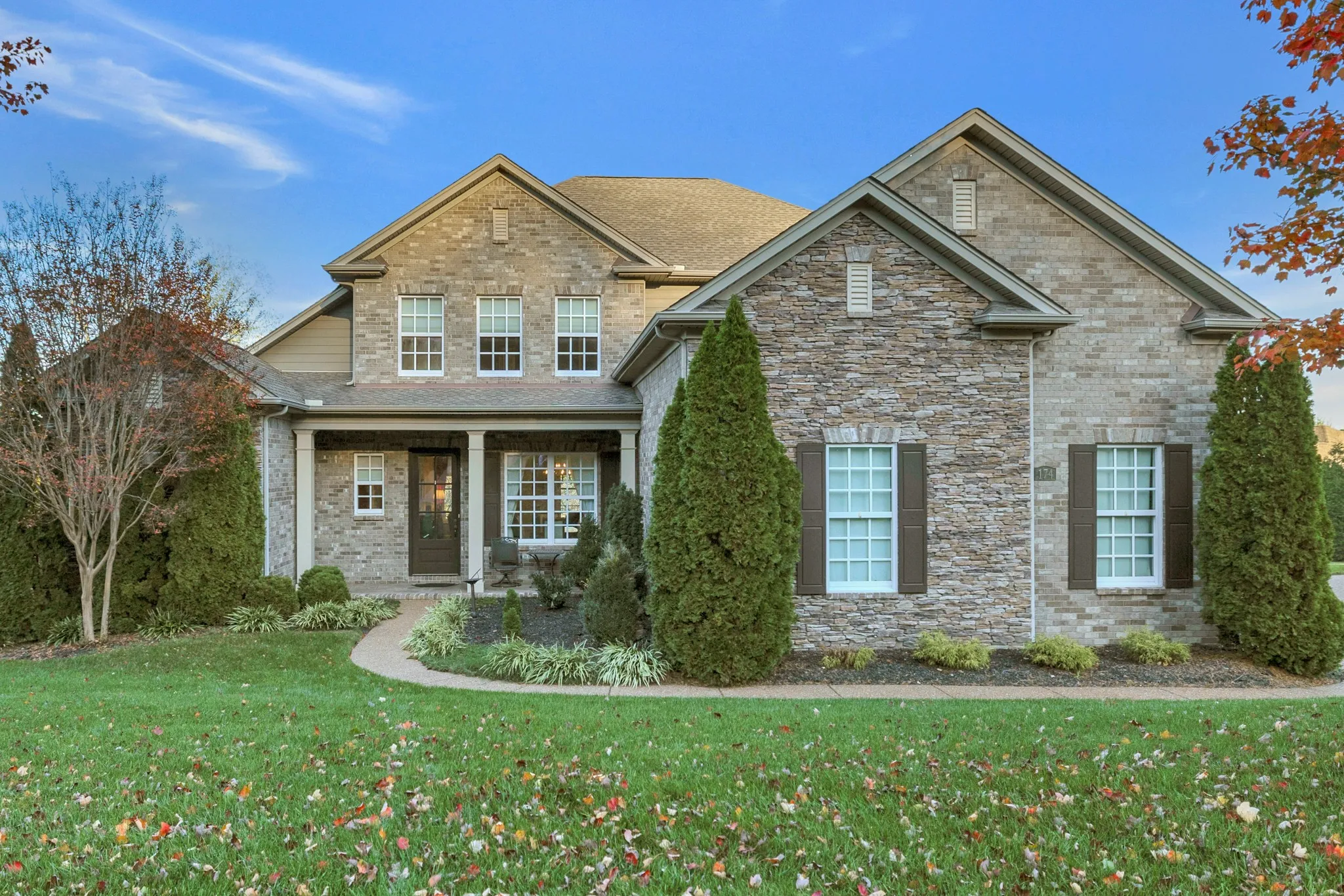 Price Improvement! 174 Azalea Lane creates a unique atmosphere and is situated in a perfect location. Owned by the original owner, this home is tucked away in a gated community 7 minutes from the local elementary, middle school, grocery, your choices of restaurants, Berry Farm’s shops, corporate headquarters, I-65. This all brick, well maintained, home sits on a corner lot with plenty of natural light. Offering an open floor-plan on the main level with a formal dining, a spacious kitchen with an oversized island easy for entertaining, dark granite countertops compliment the stainless steel appliances and additional ideal details include a rainwater water system and wood shelving in the pantry. Next is the great room with a cozy gas fireplace. The first floor’s oversized primary bedroom offers an ensuite bathroom with a custom walk in closet and a reading nook that leads directly out to a lovely patio. Upstairs provides 4 generous sized bedrooms and an entertainment room with extra storage. The backyard has a park like feel with great views. Watch the sunrise on your lovely porch and/or terrace. This is an unique and beautiful home in a lovely neighborhood!