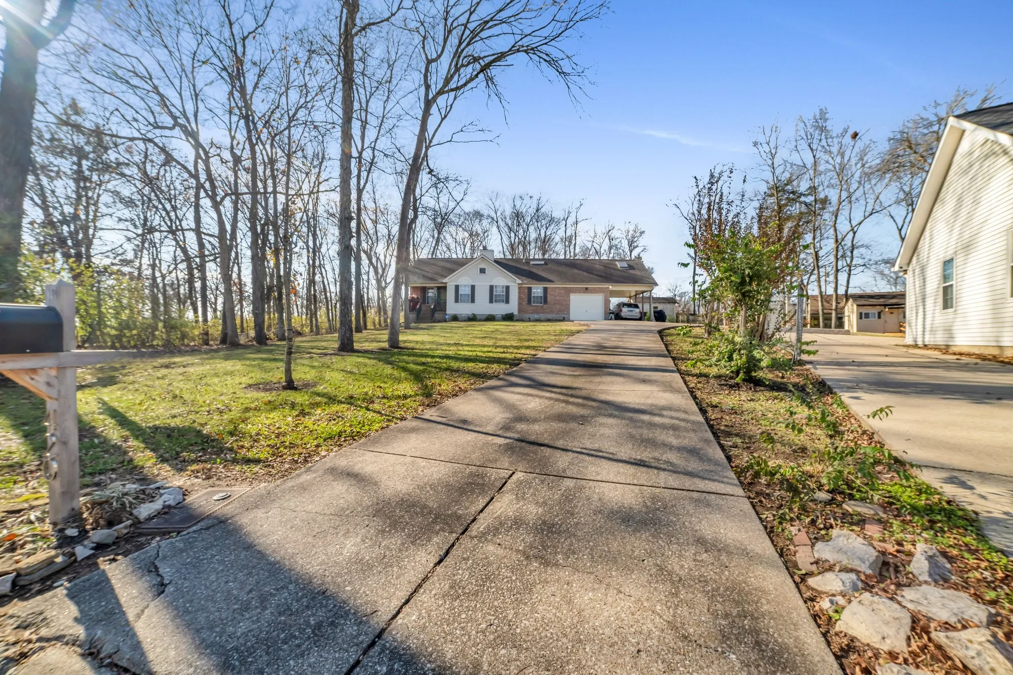 This beautifully renovated home is nestled on a serene 0.6-acre wooded lot in a quiet cul-de-sac, offering both privacy and a park-like setting just minutes from downtown Nashville. The home features a vaulted living room, a spacious primary suite, and a modern eat-in kitchen with granite countertops, a large island, and a butler’s pantry. A formal dining room and a cozy great room with a fireplace add to the charm. With 3 bedrooms and 2 full baths on the main level, plus a private bonus room with skylights, a built-in closet, and an en-suite bath, this space is perfect for an in-law suite or potential rental. The expansive, flat fenced backyard includes a large deck, a storage shed, and mature trees, ideal for outdoor enjoyment. Additional amenities include an attached carport and a 1-car garage, all in a location that combines tranquility and convenience. Check out the 3D Video tour in the links. $3000 Lender Credit & Free appraisal with Preferred Lender Kevin Kenerson NMLS: 171733 Lending Hand Mortgage NMLS: 1522227