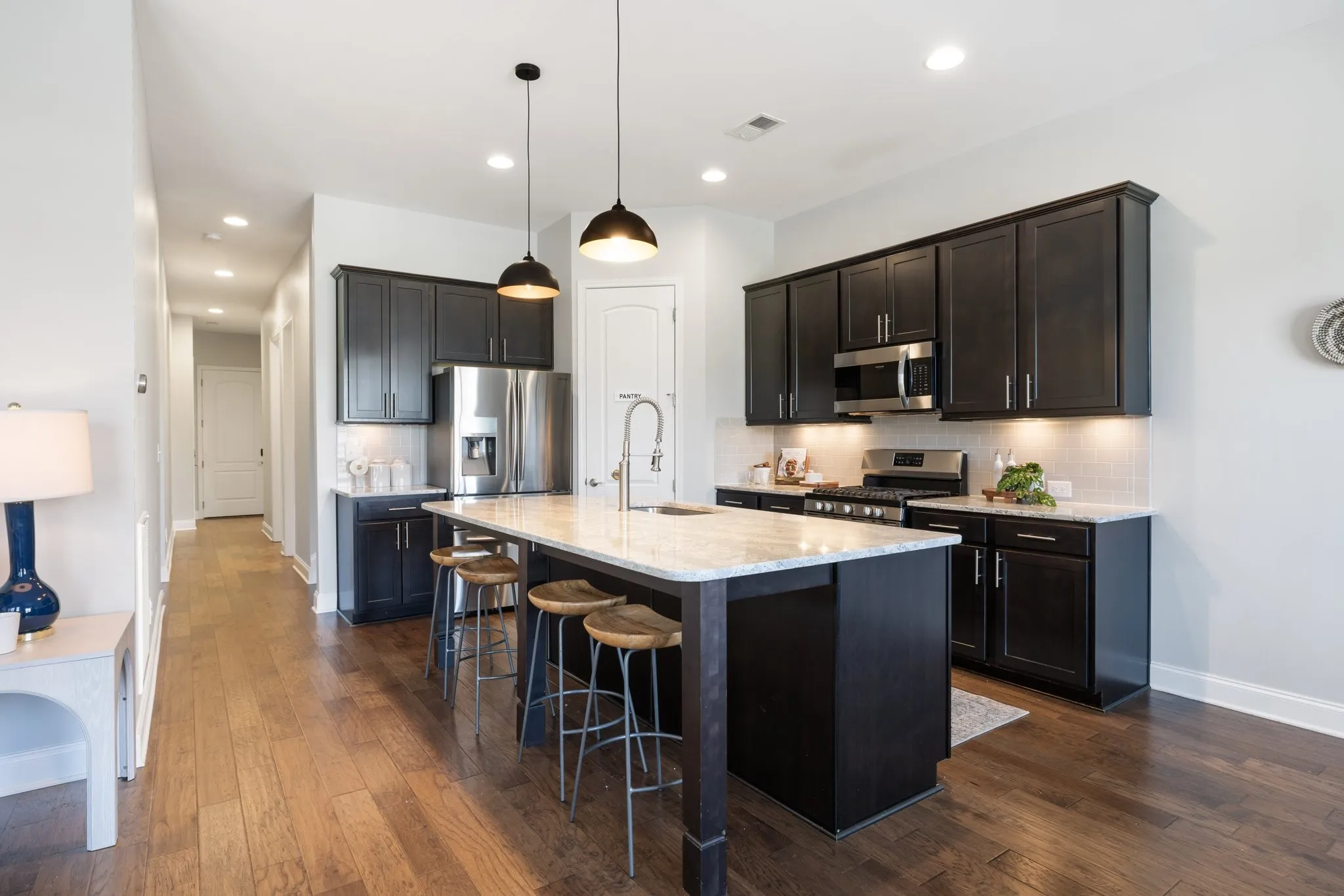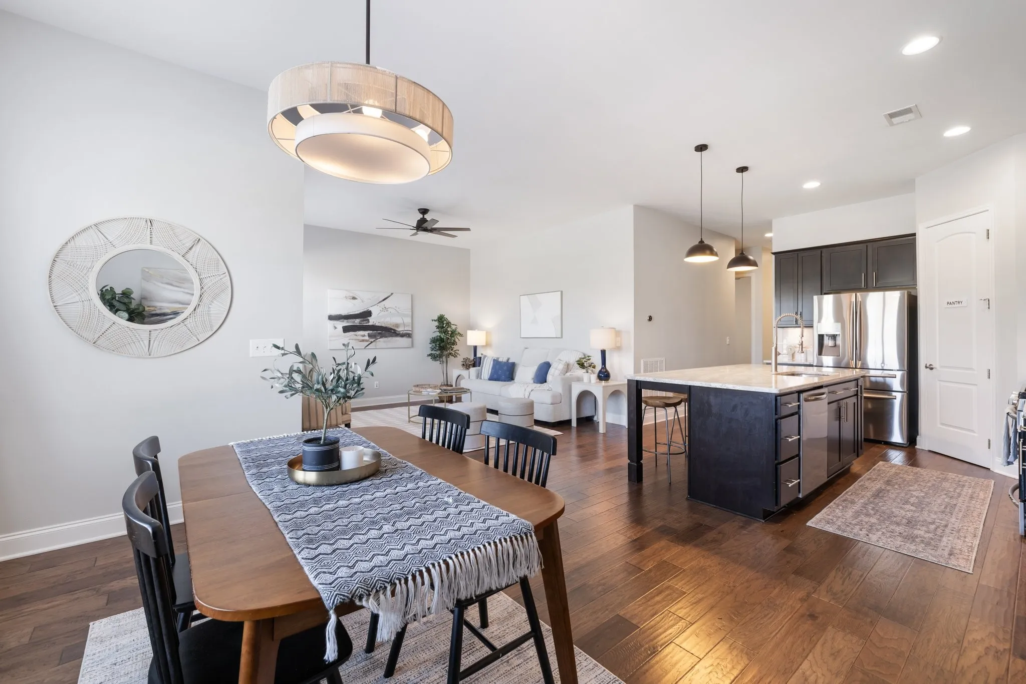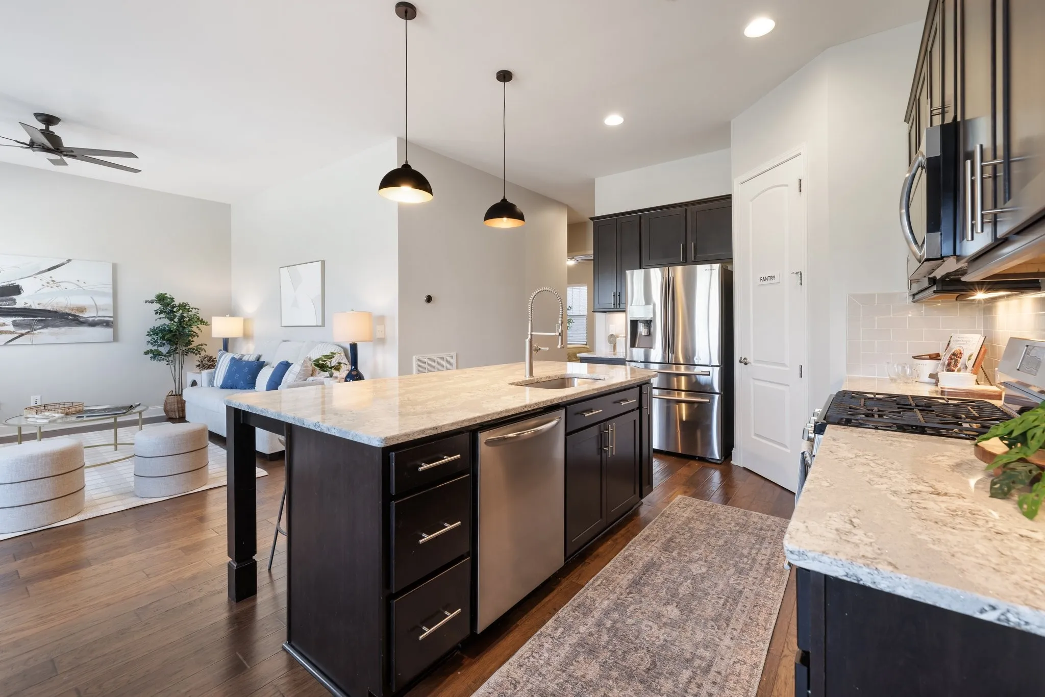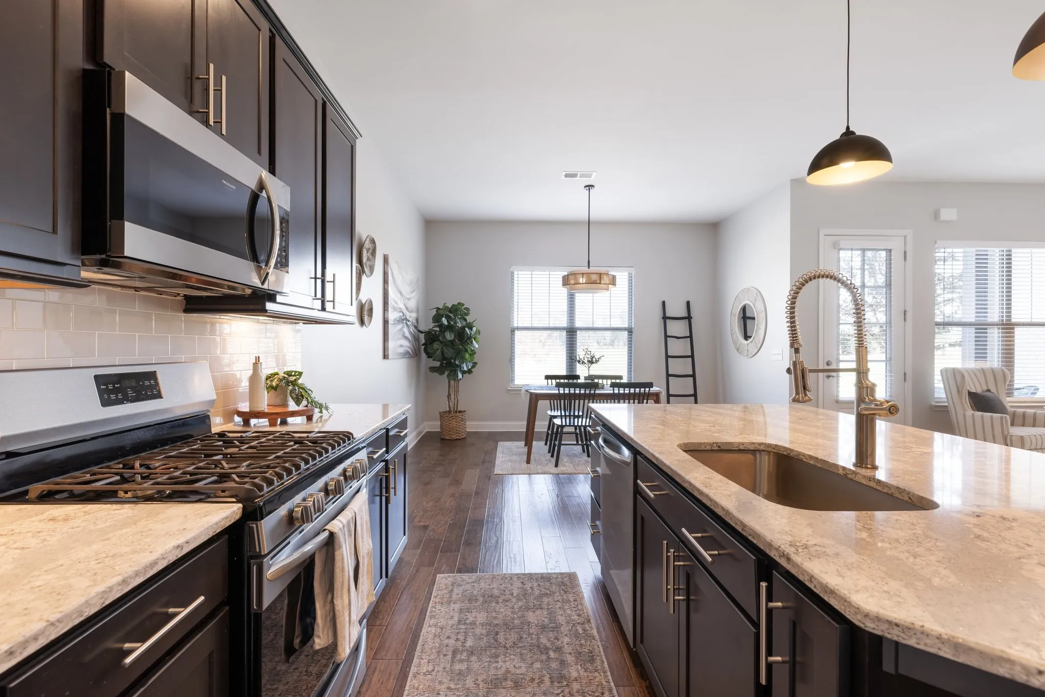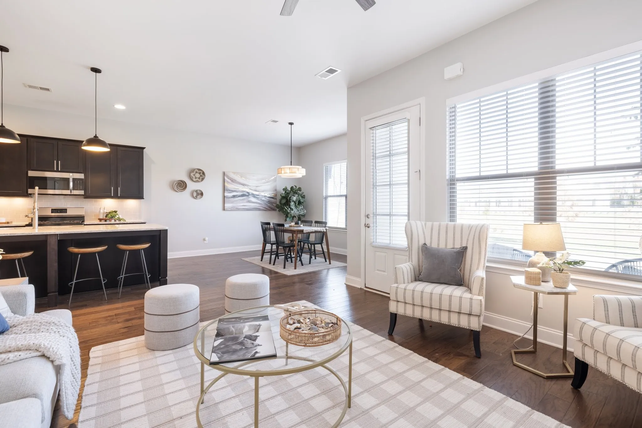 Welcome to this beautifully designed 4-bedroom, 3.5-bathroom townhome in the sought-after Waters Edge community with a Prime location -minutes to 65! Perfectly blending elegance and functionality, this spacious townhome offers everything for comfortable living and entertaining. Enjoy cooking and gathering around the expansive island with granite countertops, a perfect centerpiece for this open-concept kitchen. The cozy den is both warm and inviting, with plenty of natural light, ideal for relaxing evenings. Dining room offers so much space for a grande dining table perfect for entertaining. The large primary suite on the main floor offers natural light, a spacious en suite with double vanities and oversized walk in closet. NEW CARPET throughout! The large laundry down offers a washer &dryer included! Upstairs offers three bedrooms, including one with a private en suite and a Jack-and-Jill bath connecting the others. So much space for a large family, secondary office or guests. A bright loft area provides flexibility for a reading nook or playroom. The massive bonus room is perfect for a home theater, game room, or additional family space.The back courtyard provides a relaxing space to wind down and enjoy the outdoors. The 2 car garage provides ample parking and storage space. Front porch overlooks large permanent green space offering privacy with no front yard neighbors! Located in a top-rated school district, Waters Edge offers excellent amenities including a resort style pool and is just minutes from Franklin’s charming downtown, shopping, dining, and parks. With its modern features, natural light, and thoughtful layout, this home is perfect for those seeking style and convenience in a prime location. Schedule your tour today!