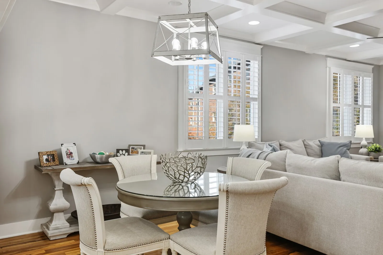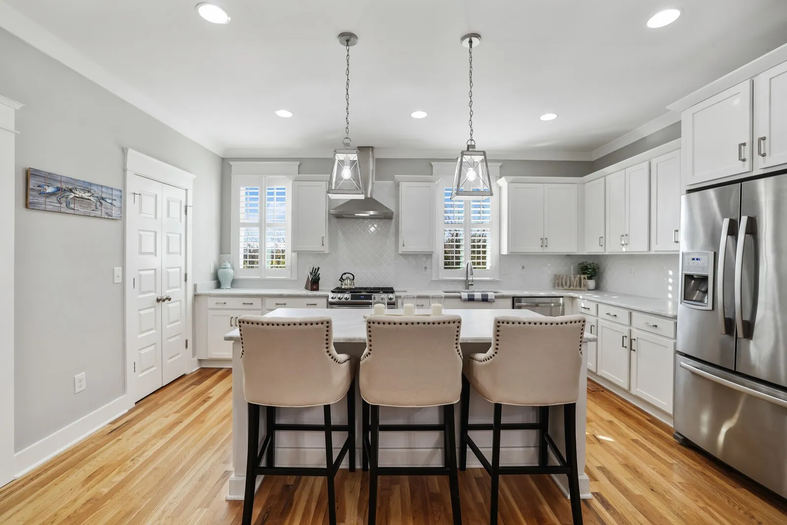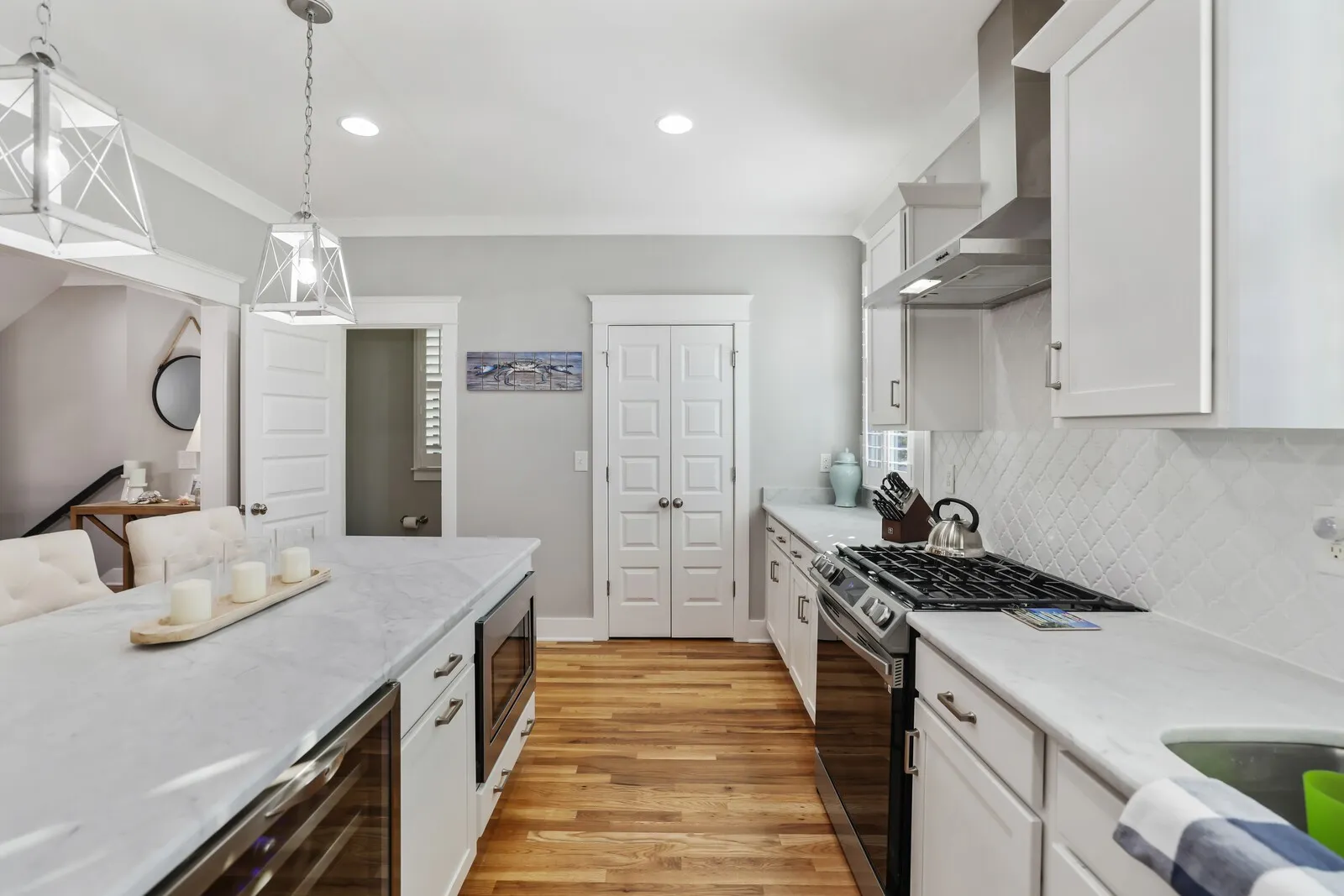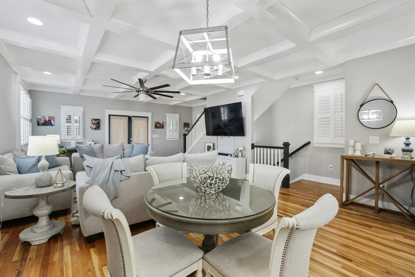 Welcome to this beautifully renovated four-bedroom, three-and-a-half-bath home located in the heart of Nashville! Combining timeless charm with modern upgrades, this property offers an exceptional living experience. Step inside to discover an open floor plan filled with natural light, gleaming hardwood floors, and sophisticated finishes throughout. The spacious living room features coffered ceilings and ample seating space, making it perfect for entertaining or relaxing with family. The gourmet kitchen is a chef’s dream, boasting pristine white cabinetry, stainless steel appliances, tile backsplash, and a large center island with seating. Pendant lighting and ample counter space complete this elegant and functional design. The primary suite is a serene retreat, offering a spacious layout, a walk-in closet, and an en-suite bathroom with a double vanity, and tiled shower. Additional bedrooms are generously sized, providing plenty of space for family or guests. Outside, enjoy the charm of a white picket fence and a covered porch perfect for rocking chairs and creating a peaceful space for quiet evenings. Located just minutes from Nashville’s vibrant downtown, this home offers proximity to restaurants, shops, and entertainment while maintaining a cozy neighborhood feel. Don’t miss the chance to make this stunning home your own!