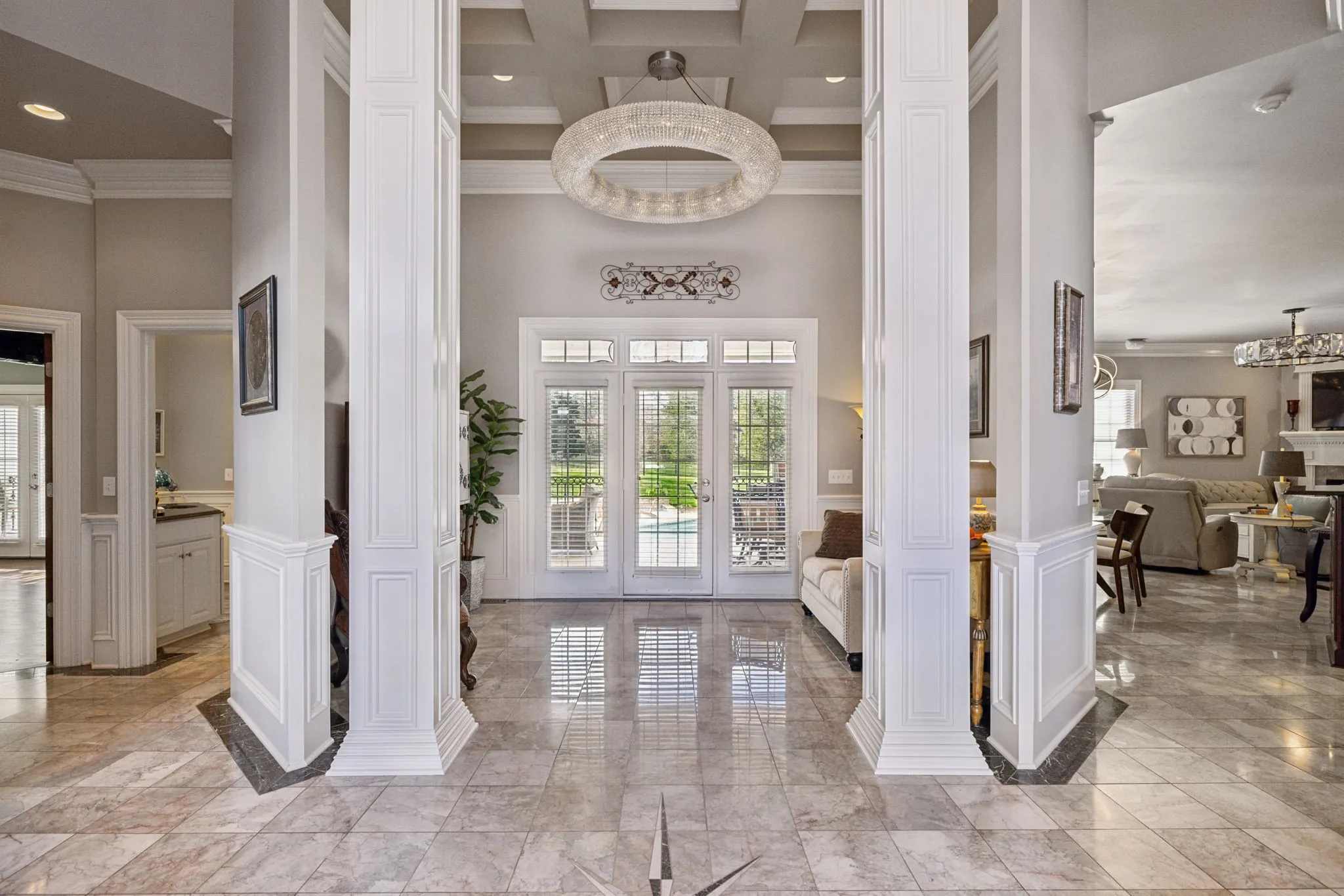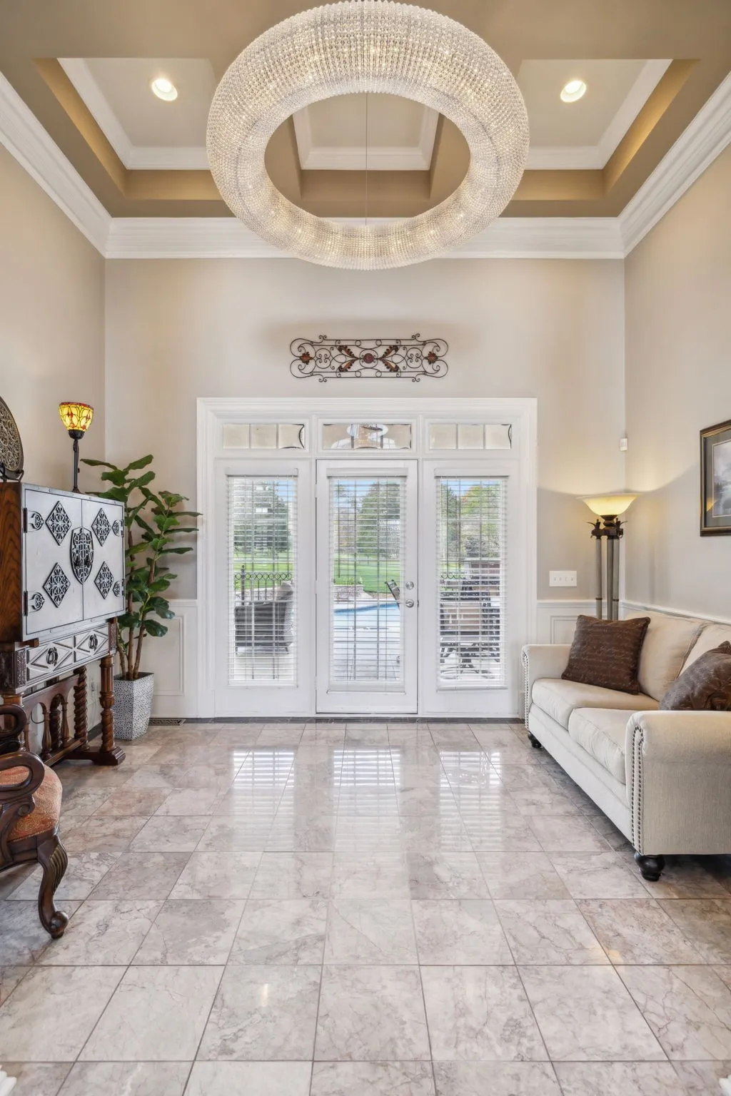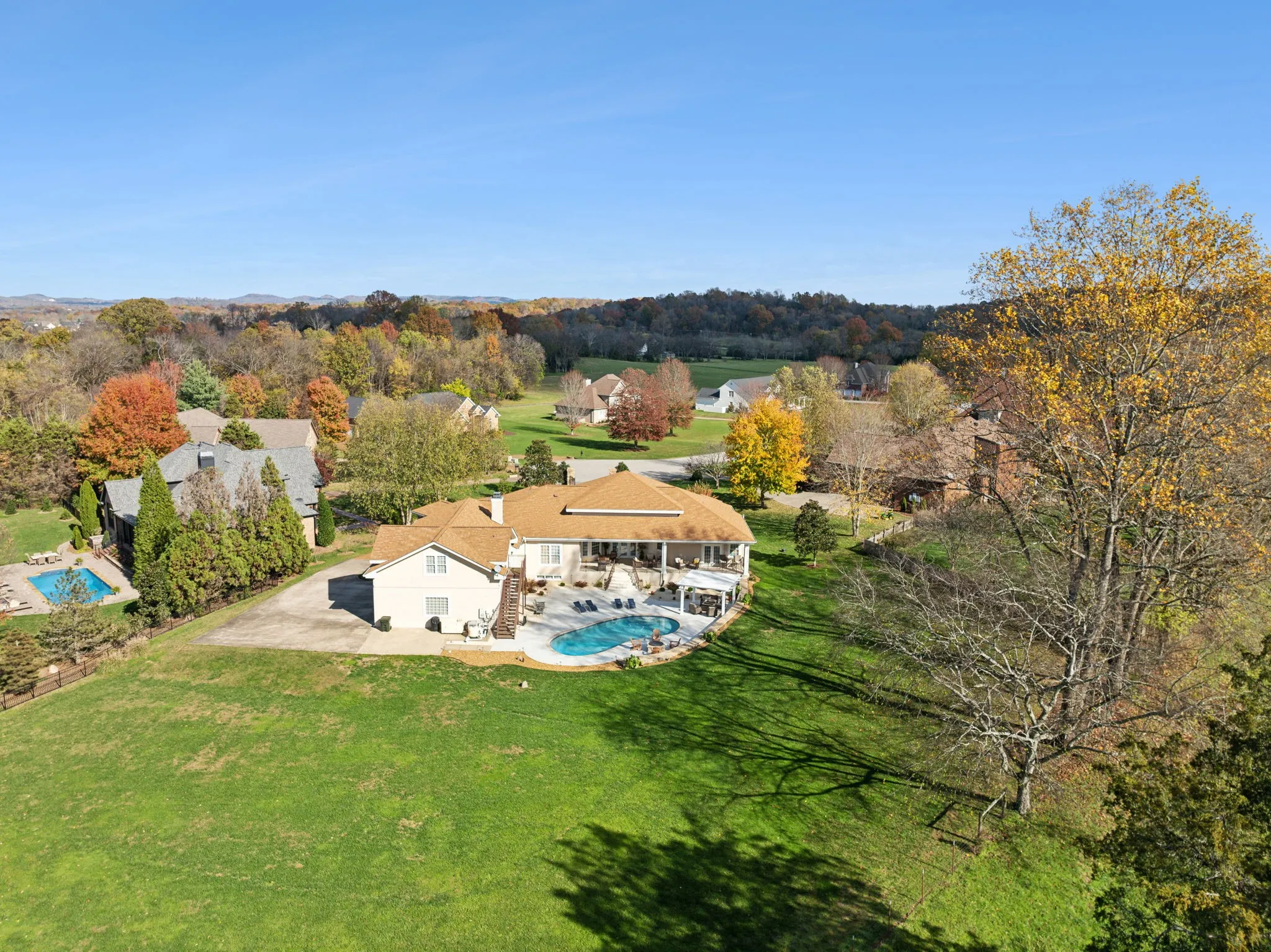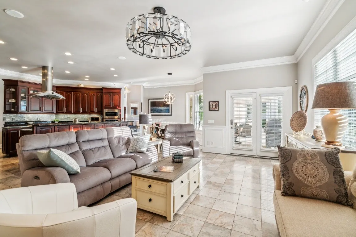 Upon arrival you are greeted by the gated entry, stamped circular driveway and the tranquil sound of the water fountain feature. This custom-built home is nestled on a quiet cul-de-sac with 1.2 acres and offers scenic views of nature as the backdrop. Imagine sitting on the covered lanai overlooking the sparkling salt water pool sipping your favorite beverage as the sun sets. This home exudes luxury with elegant marble and hardwood floors, gorgeous Restoration Hardware light fixtures, extensive custom trim with attention to detail throughout the home. A rare gem with 4 bedrooms on the main level. Your guest or in-laws will be thrilled with the 1,003 sq ft private apartment/5th bedroom that boast its own kitchen, breakfast area, den, bedroom, full bath, laundry, storage and views of the pool. The 3,518 sq ft basement offers endless possibilities whether you’re looking for additional living space, theater, billiards room, workout room, or In-law suite (this space is not included in the heated/cooled sq. ft). Outdoor entertainment abounds with the pergola sitting area and kidney shaped pool for the warm summer days or the firepit for the cool autumn nights. A dedicated pool bath is accessible from the covered lanai or main level of the home and offers your family & guest easy access to a full bath without going through the house. Additional features include a 25KW Generac Whole House Generator, water softener system, tankless hot water w/recirculating system, Central Vac, CCTV security cameras w 2 TB DVR, oversize 3 car garage with epoxy floors and separate tool/storage room, wide 6′ 10″ stairs leading to the basement are perfect for moving furniture in and out, New roof 2021, Irrigation & landscape lighting, multiple location music system, 5 zoned HVAC, newer appliances, the basement makes a great storm shelter or the perfect place to send the kids on a rainy day. Too many features to list – a must see! All of this priced below recent appraisal.