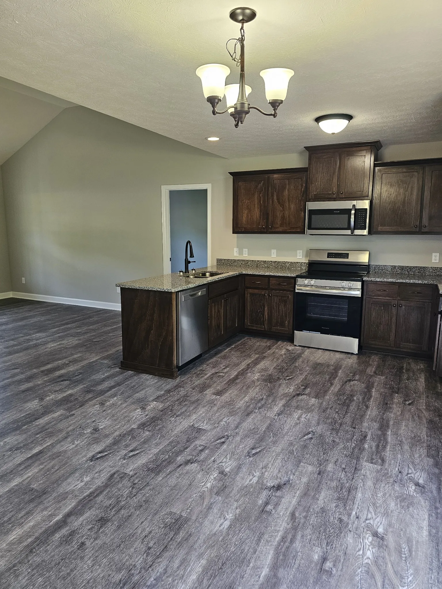 Welcome home. Enjoy the evenings on the covered porch of your all brick home. Relax and enjoy family time in the open floor plan where everyone is included in activities. Kitchen is well appointed with custom cabinetry, granite and breakfast bar. Sit around and help with meals, homework, crafts. Have a spill? No problem. Water resilient laminate makes clean up a breeze. Want to relax. Enjoy your spacious owner’s suite with tray ceiling, private bath and large walk-in closet. Split bedroom floor plan for privacy. Nice large lot for your enjoyment.