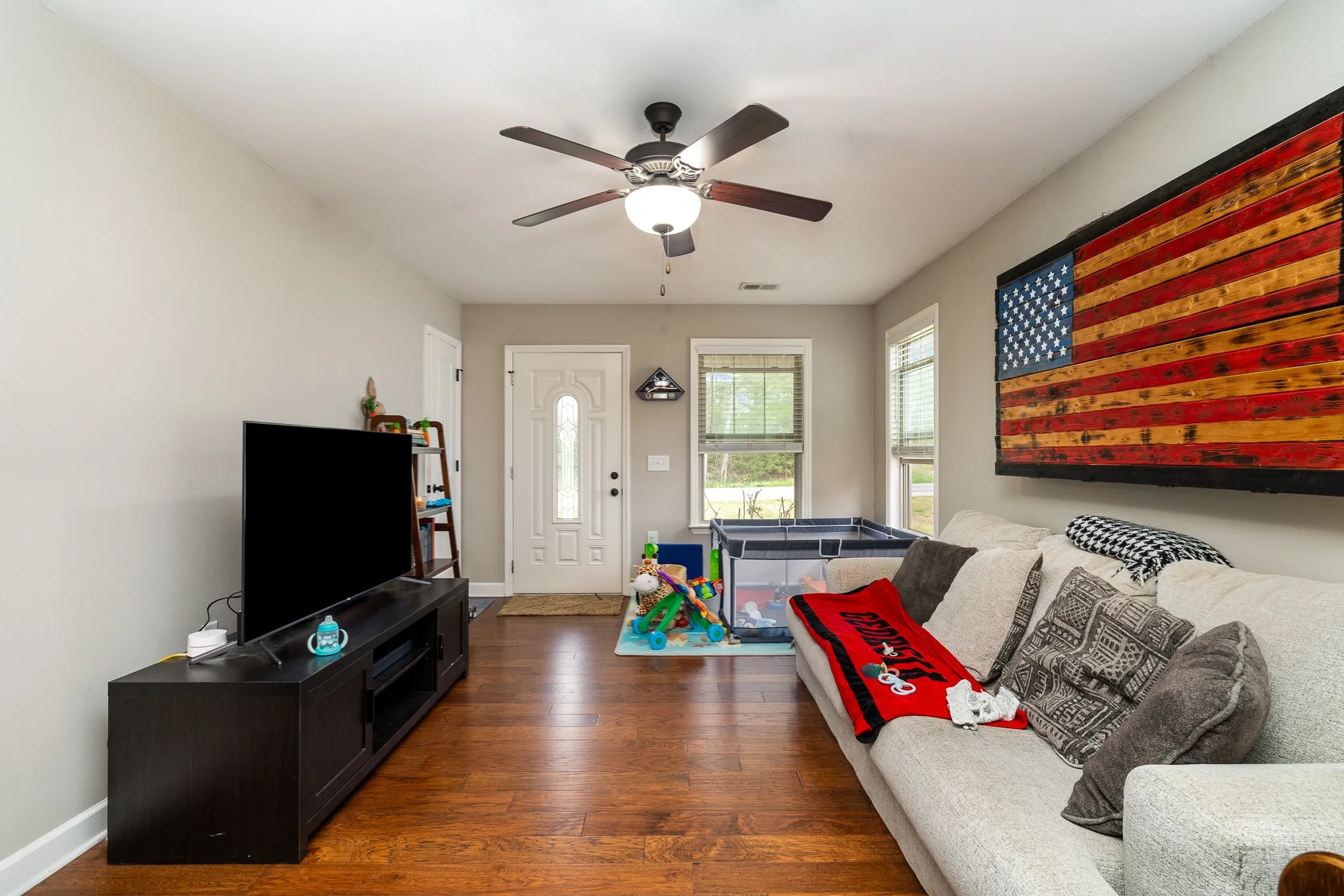 Welcome to this like brand new three bedroom and two full bath home just built in 2019! No HOA! Kitchen boasts granite countertops, pantry, soft close cabinets and is great for entertaining. Master bedroom suite includes two walk in closets, a spa like bathroom with tile shower and provides plenty of privacy. The other two bedrooms are spacious and provide storage. The backyard is fenced in making it convenient for pets or perfect for BBQ’s. Enjoy the warm weather with your morning coffee on the covered front porch. Roof and windows are less then 5 years old. Close to shopping, restaurants and entertainment. Don’t wait this home wont last long! Friendly cat will be present during showings, please don’t let outside. Seller offering a $1,000 carpet allowance. Swing set and wooden flag excluded from sale.