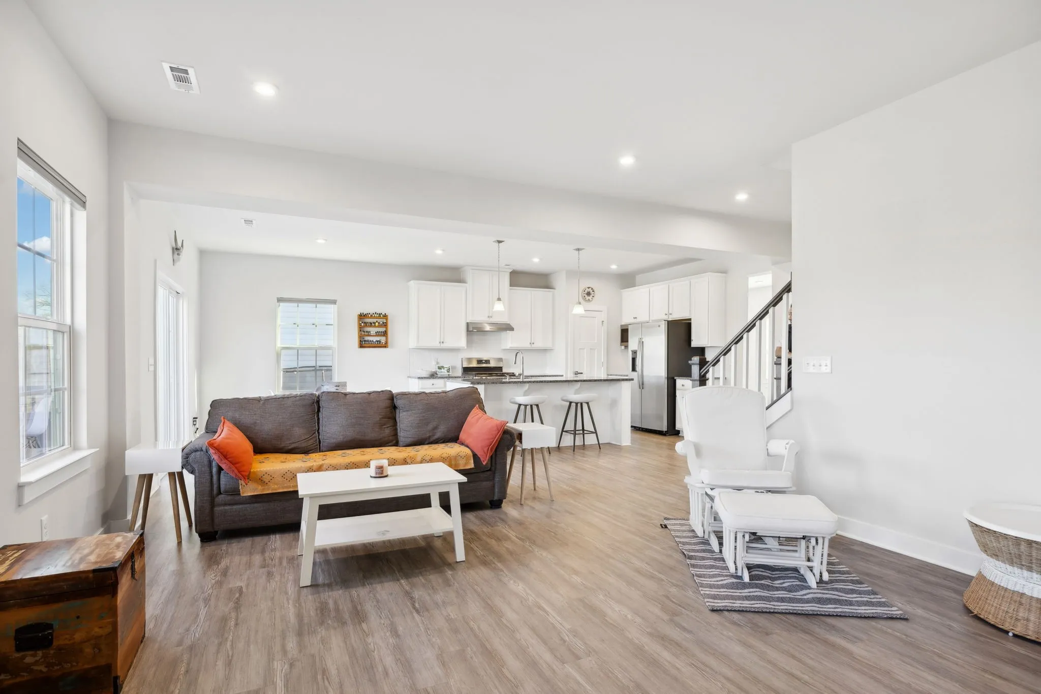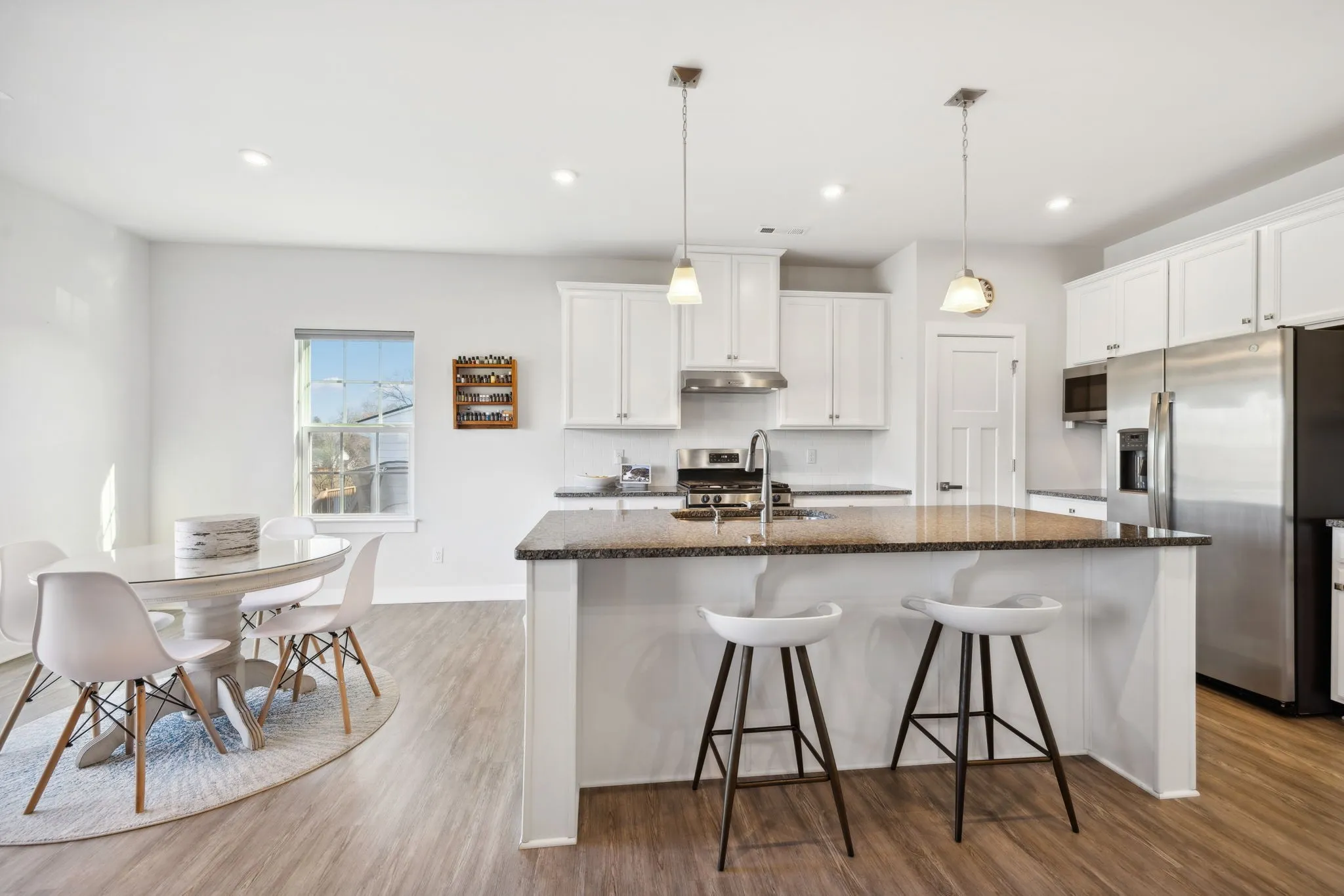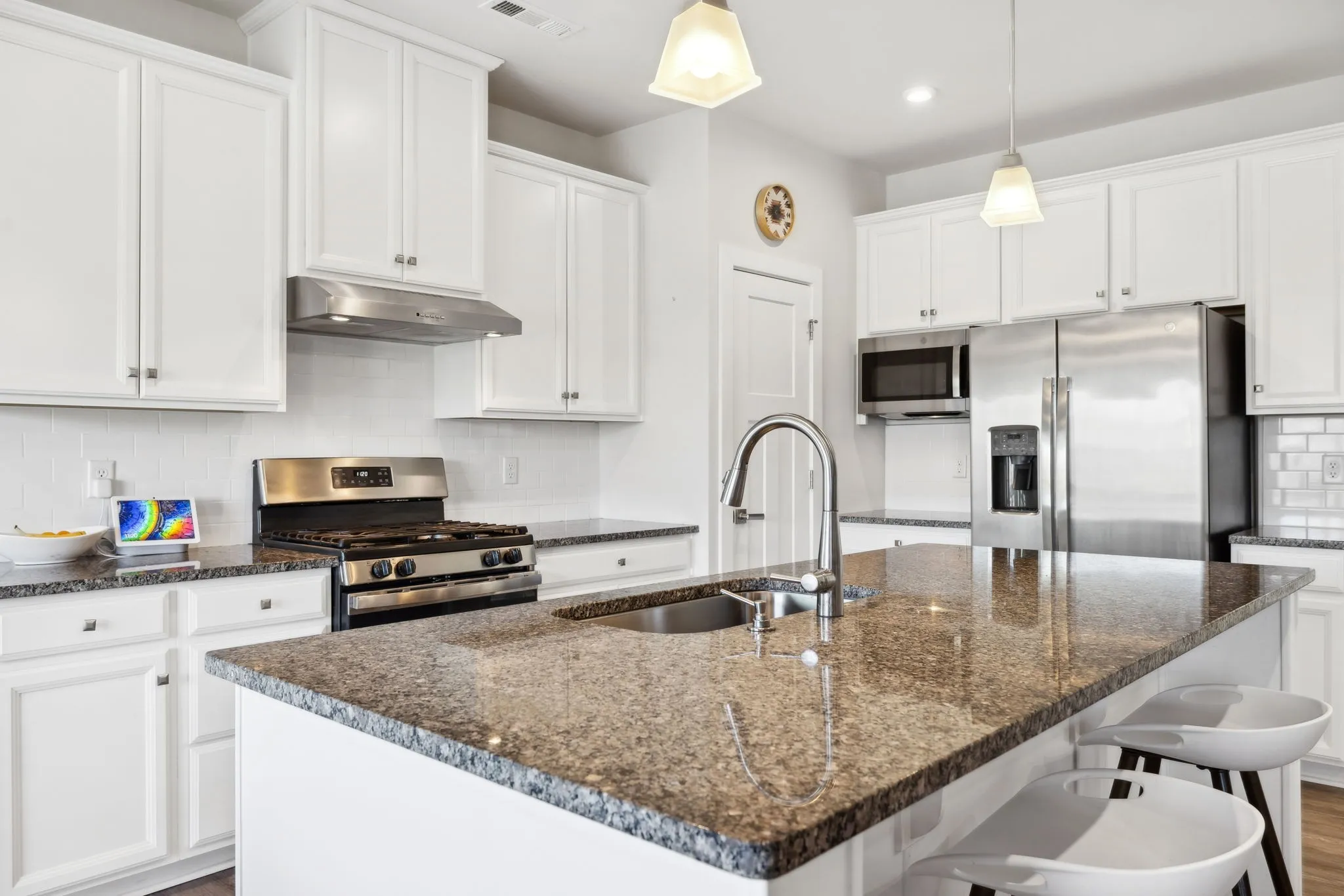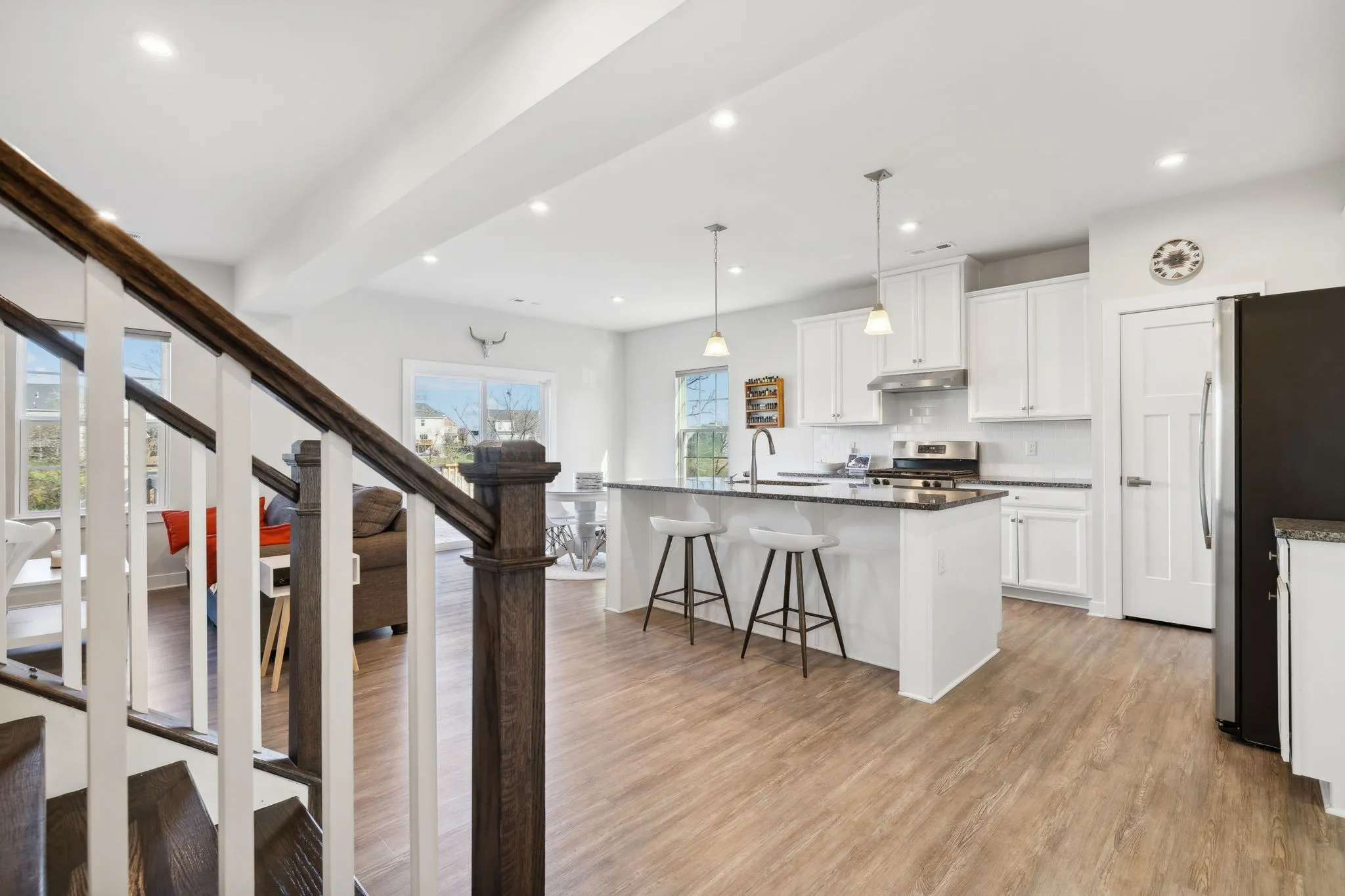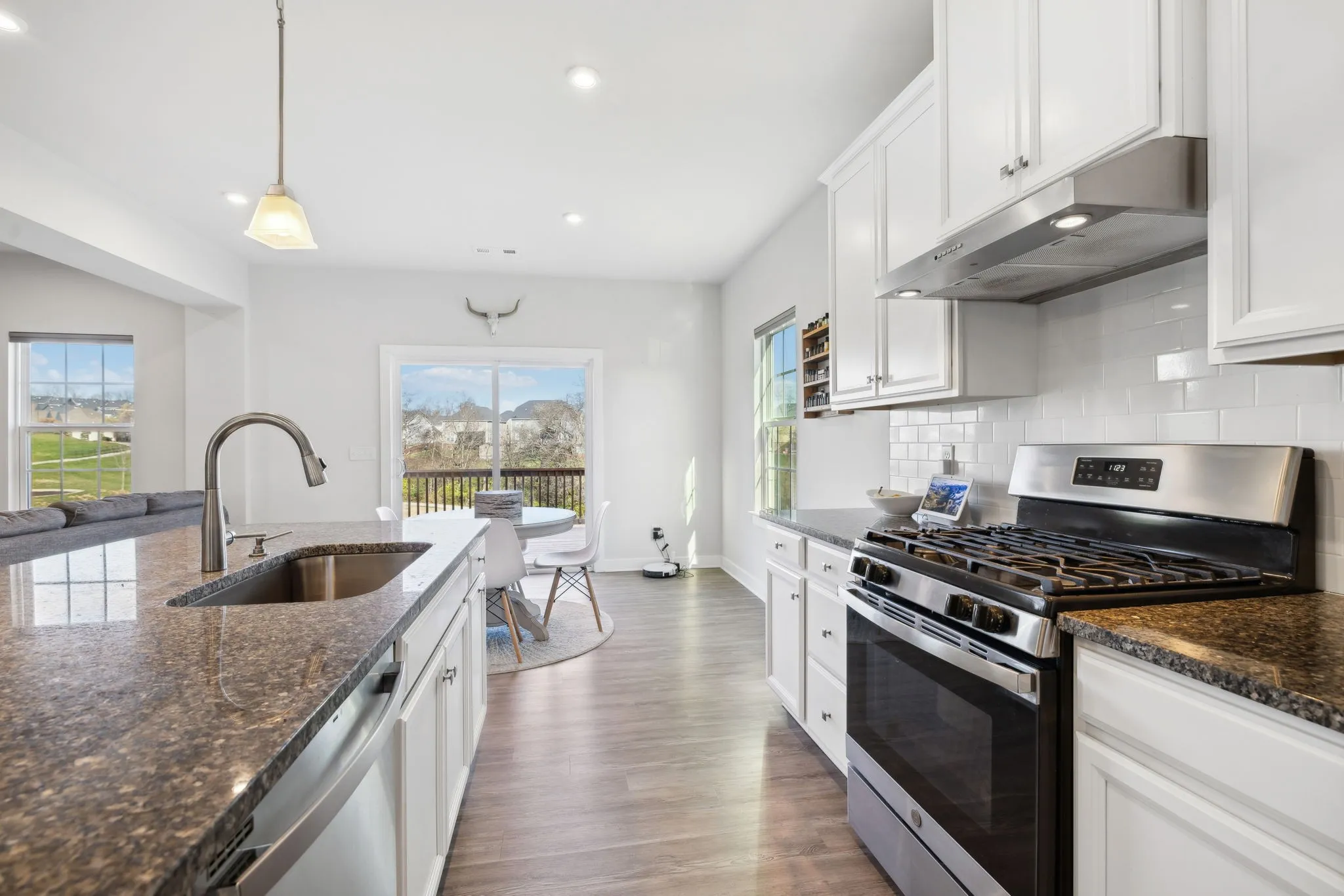 +"PublicRemarks": "Just listed! This like new 3-bedroom, 2.5-bath, 2114 ft.² craftsman-style home in the heart of Mount Juliet, TN, offers modern elegance, thoughtful updates, and ultimate privacy! The main level features engineered hardwood flooring, a versatile flex room perfect for a home office or formal dining, and a chef-inspired kitchen with granite countertops, 42" white cabinets with pull-out shelving, stainless appliances, and a hood vented to the exterior for cooking enthusiasts. Upstairs, a spacious loft provides the perfect space for a playroom, movie room, or additional living area. The primary suite boasts dual walk-in closets, a large walk-in shower, and smart home upgrades like a Nest thermostat and WiFi-enabled garage doors. Outdoor living is a dream with a 16x13 deck, stained and complemented by an 18x12 paver patio, plus a gas line for effortless grilling. Additional features include engineered hardwood stairs, power-operated blinds, and a Google security system with cameras. Nestled on a private lot backing to serene common space, this energy-efficient home ensures no neighbors behind you. The home is located in a highly sought-after neighborhood with easy access to a community pool, scenic walking trails, and beautifully maintained common areas. Just minutes from top-rated Wilson County schools, shopping, dining, and major highways, this location offers a perfect blend of convenience and charm. Mount Juliet’s vibrant community is known for its friendly atmosphere, excellent amenities, and proximity to all modern conveniences while maintaining a relaxed suburban feel. Minimum 1-hour notice for showings. Don’t miss out on this incredible home."