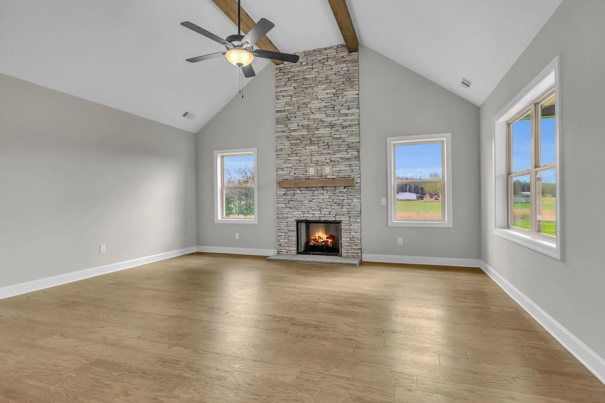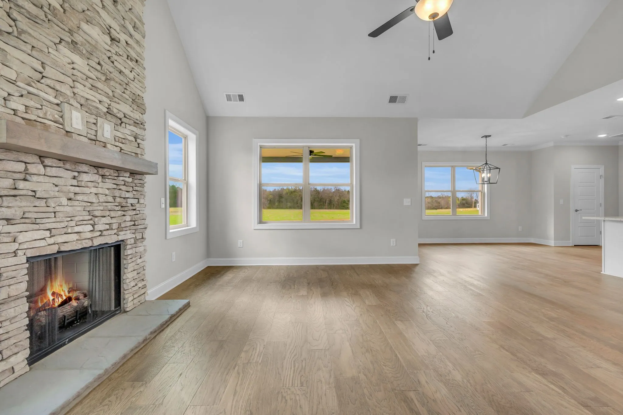 ROOM TO ROAM with NO HOA!!! GET LOST in over 3,400+ sq ft Plus a 3 Car Garage, Built by Horizon Homes. You’ll love the Finishes of this Gorgeous, Best Selling Floor Plan, The Denniston. The Plan Includes a Generous Sized Primary Bed Suite, with a 10×10 Sitting Area AND an Elegant En-Suite Bath, plus there’s a 2nd Bed Suite on the Main Lvl. Upstairs there are 2 more Generous Size Bedrooms, & a HUGE Bonus Rm over the 3 Car Gar. Enjoy Gatherings in the Expansive Great Rm w/ a Soaring Ceiling and Floor to Ceiling Stone FP, w/ Gas Logs. There’s a Lg Dining Area AND an 8′ Eat-on Bar in the Kitchen, PLUS a Formal Dining Room. Eating Spaces Galore! Need more Entertainment Space? There’s a Covered Back Deck for Outdoor Entertaining & Quiet Enjoyment. RELAX on the Cov’d Front Porch & Enjoy Views of Farm Life. Room for all your tools & a Workbench in the 3 Car Gar! Seller to pay $1,000 towards Buyer’s Title if using Legends Title Services to close. Seller’s Pref Lender will pay $2,000 Towards CC.