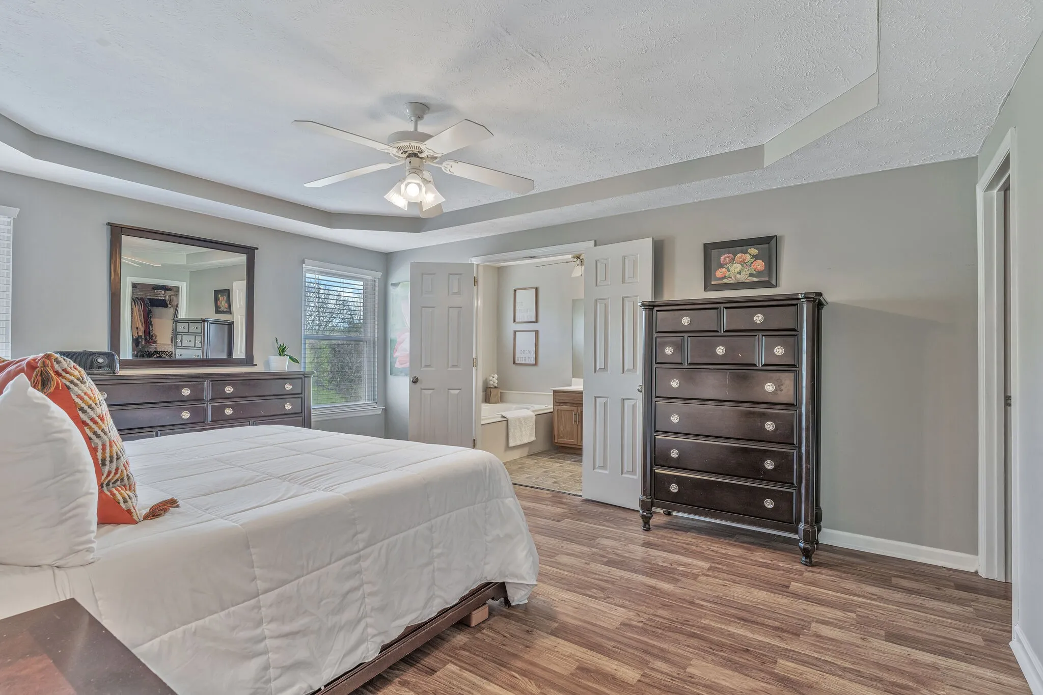 Interior Features Walk-In Closet(s), Primary Bedroom Main Floor, High Ceilings, Storage, Ceiling Fan(s), Redecorated