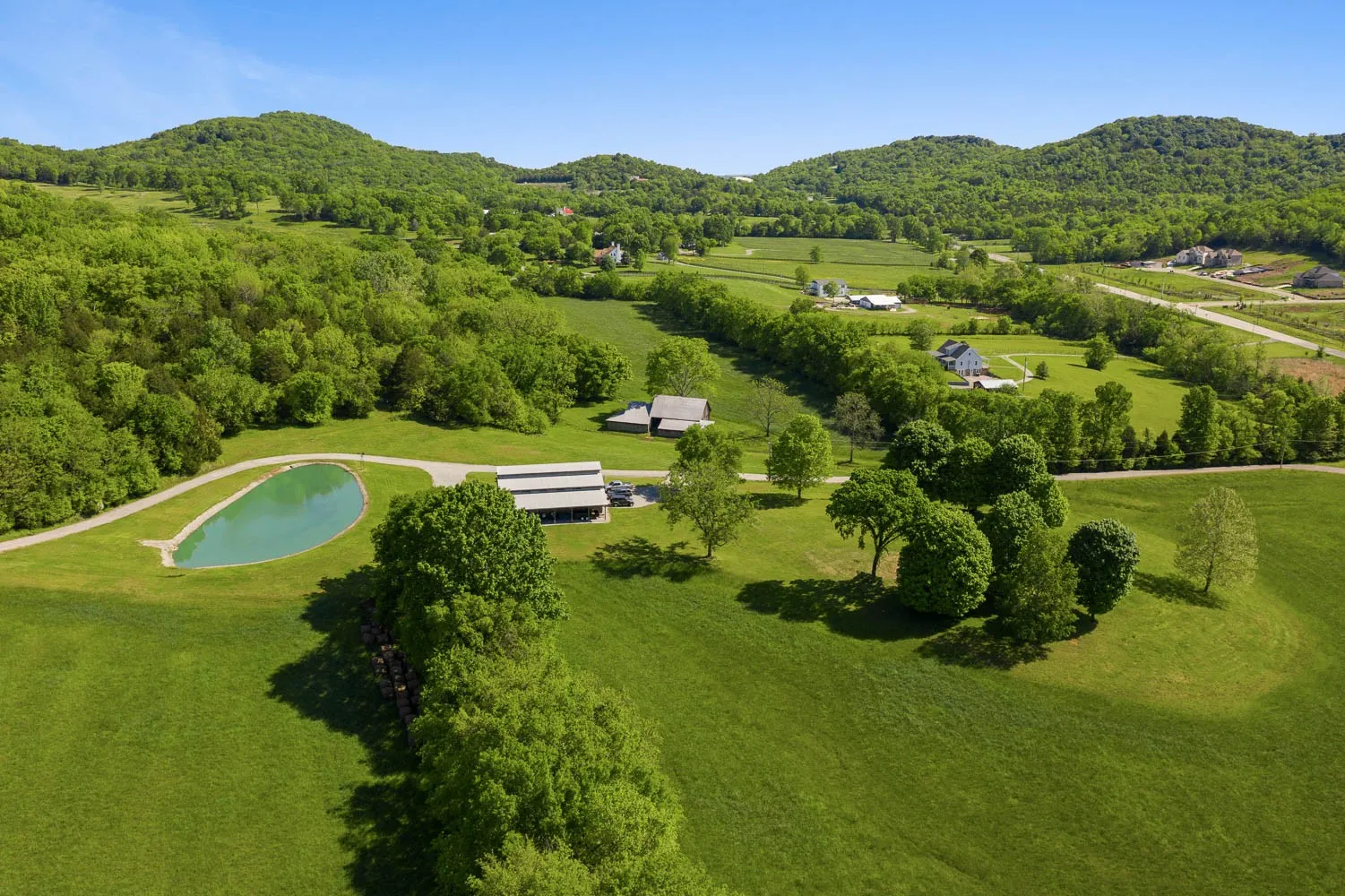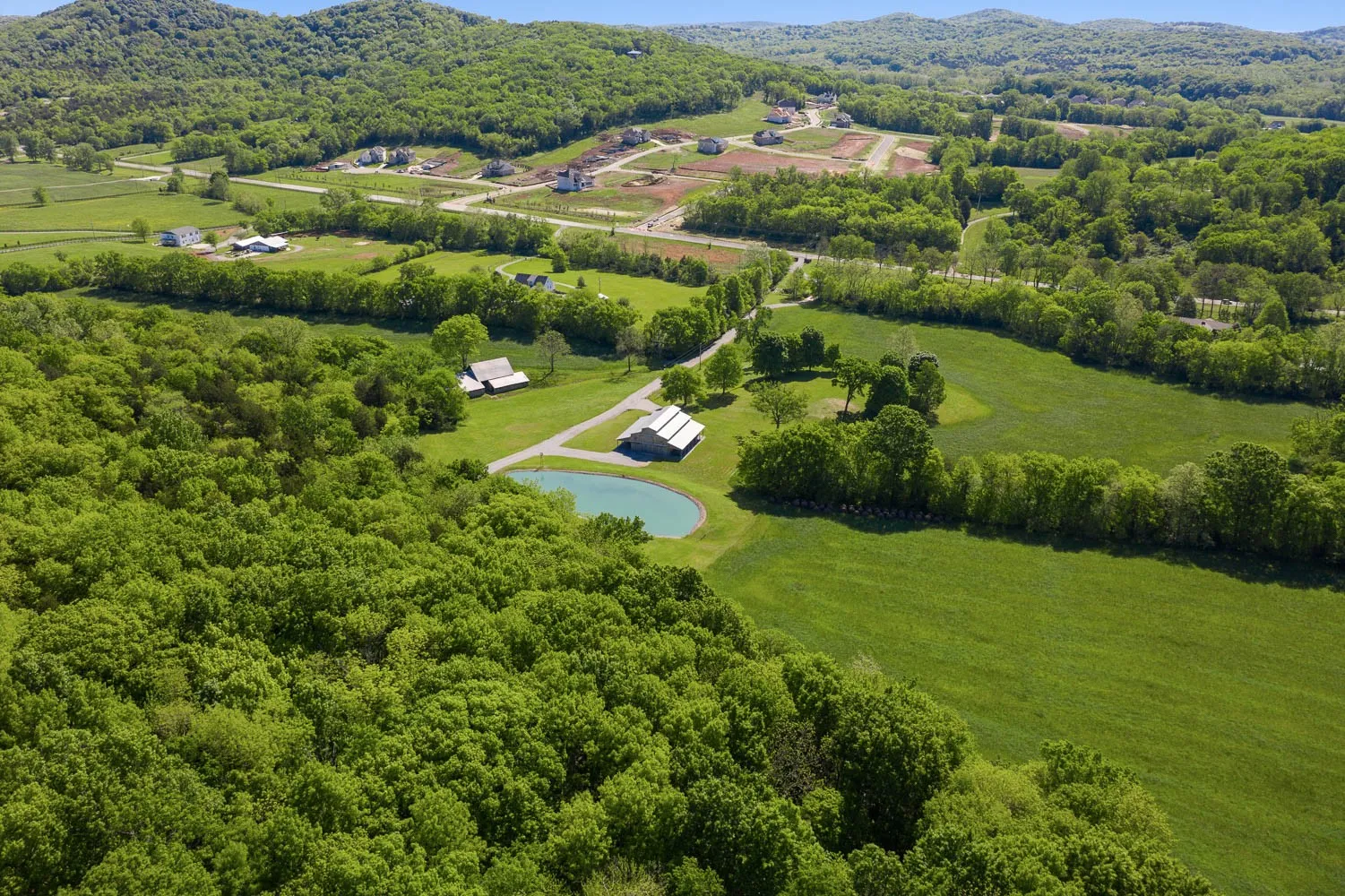 Sherwood Acres Farm, sits just 2 miles south of the Town of Nolensville in eastern Williamson County, TN. The property encompasses just over 290 acres with some 841 feet (non-contiguous) of frontage along Nolensville Road (U.S. Hwy 31A-41A). Approximately 30 to 35 percent of the land area is open pasture with the balance of the site comprised of moderate to densely populated woods. The front (east) and west portions are bisected by two tributaries providing additional buffering and natural water sources for wildlife which frequent the site. A small farm pond is located in the northeast quadrant just above a 40′ x 60′ “party barn” which could be incorporated into part of an amenity center. A private gravel drive extends from Nolensville Road to near the back stretches of the property allowing views of a majority of the property. A trail system meanders through the central wooded areas creating walking trails for a planned community. Listing Agent must be present for all showings-24 hour notice required.