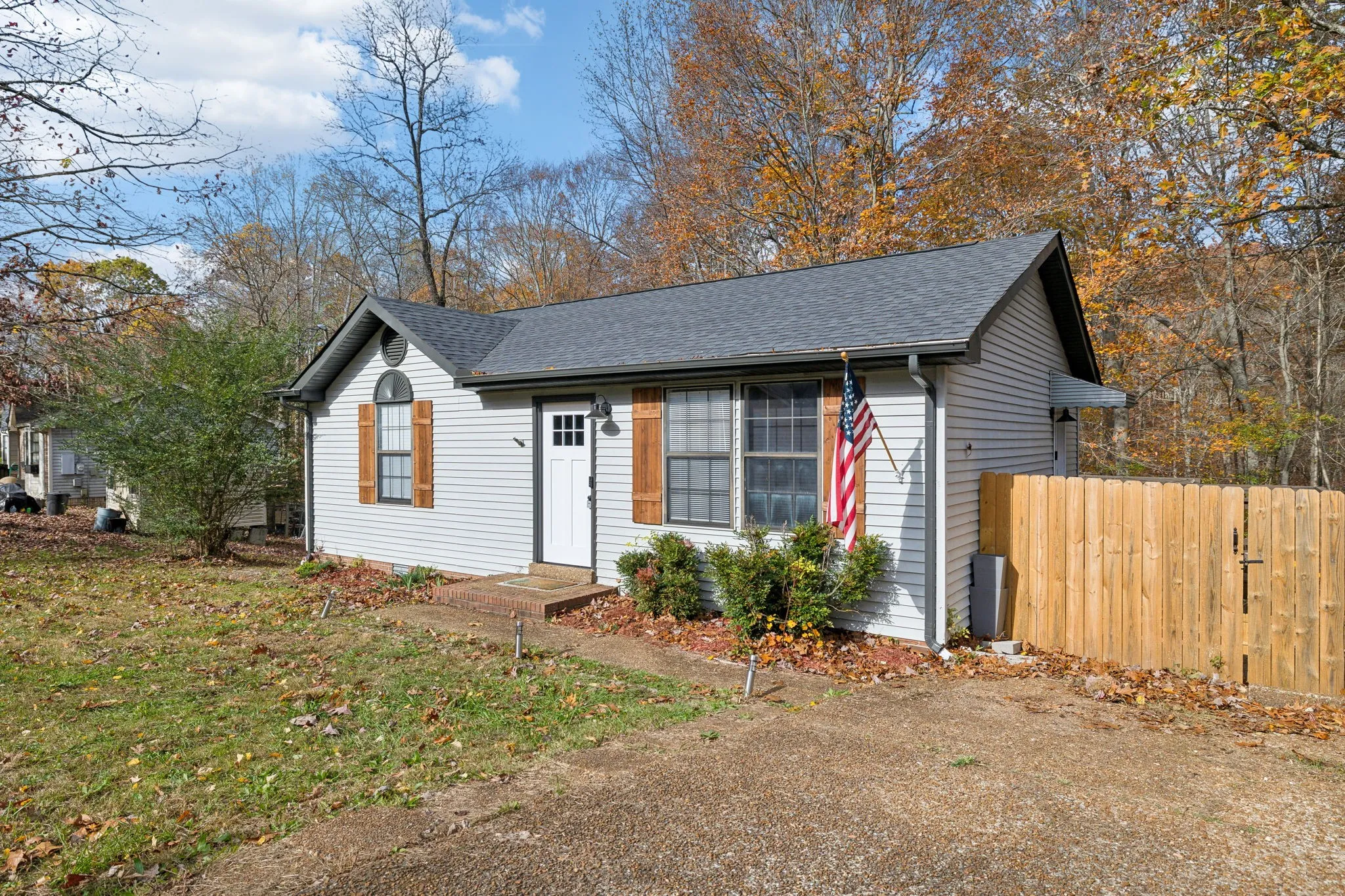 Beautifully renovated home nestled in a charming, private setting! Brand new HVAC, roof, and privacy fence set the stage for worry-free living. The completely remodeled bathroom features a new tub, stylish tile, updated fixtures, and a granite-topped vanity. The kitchen is a standout with butcher block countertops, a marble tile backsplash, and new stainless steel range and dishwasher. Fresh paint and flooring throughout make this home move-in ready. The crawl space has been newly sealed and features all-new ductwork and a dehumidifier for added peace of mind. Enjoy the spacious walk-in crawl space—perfect for easy storage or ready to be finished for additional square footage. Step outside onto the oversized deck overlooking a serene, wooded backyard, complete with a cozy fire pit, perfect for relaxing or entertaining. Located on a quiet street, this home is just a short drive to Nashville and conveniently near White House and Hendersonville. Ideal for first-time buyers or anyone looking to downsize, renovated homes in this price range are a rare find!