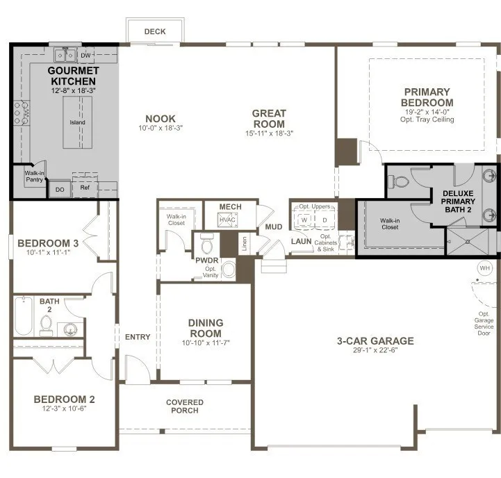 Special Financing on this home: As low as 4.99% 30 Year Fixed Rate (Call for details) The “Helena II” Ranch Style home includes a 3 car garage and a corner cul-de-sac lot! One of the largest lots in the neighborhood! At the heart of this home, you’ll find a relaxing great room and a spacious gourmet kitchen with a center island, a walk-in pantry. A secluded primary suite showcases a roomy walk-in closet and a deluxe private bath. Other highlights include two secondary bedrooms with a shared bath, a convenient powder room and a 3-car garage.