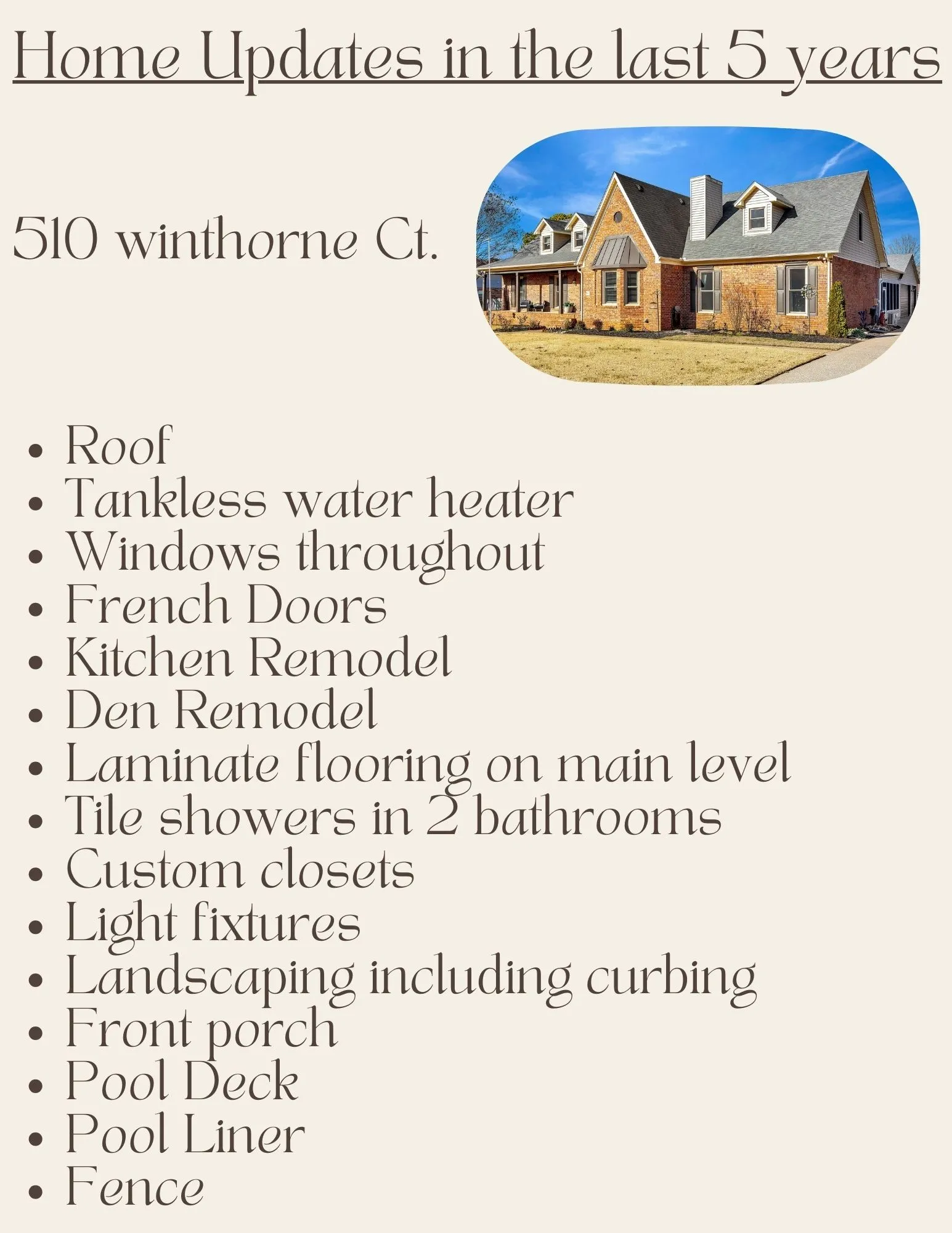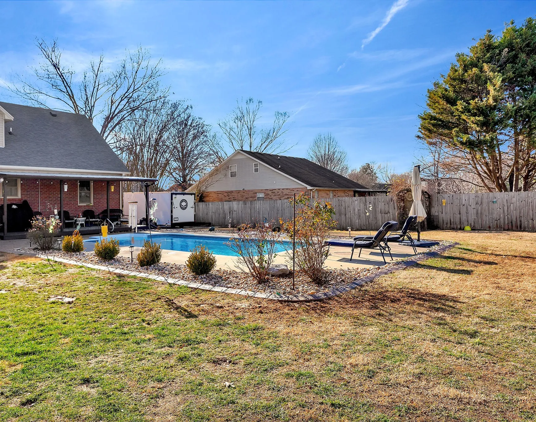 +"PublicRemarks": "Welcome to this beautiful 3,752 Sq Ft, 4 bedroom, 3.5 bath home nestled on just under a 1/2 acre in the heart of Murfreesboro! If sipping cool drinks next to your expansive saltwater pool is your idea of relaxation, this home is for you. Nicely updated with stainless steel appliances, granite countertops, coffered ceilings in the den, custom tiled showers, new roof in 2023, tankless water heater, screened porch overlooking the sprawling paver patio, with a privacy fenced back yard, and much more. The fireplace and crown molding in Great Rm. set the tone for warm conversations and tranquil ambiance. Whether you are celebrating with friends or hosting family for the holidays, this home checks the boxes! This home has so much to offer along with an abundance of storage throughout. Claim this piece of paradise as your own private oasis before it’s gone! See media for full list of Updates. Kitchen appliances and washer and dryer to remain."