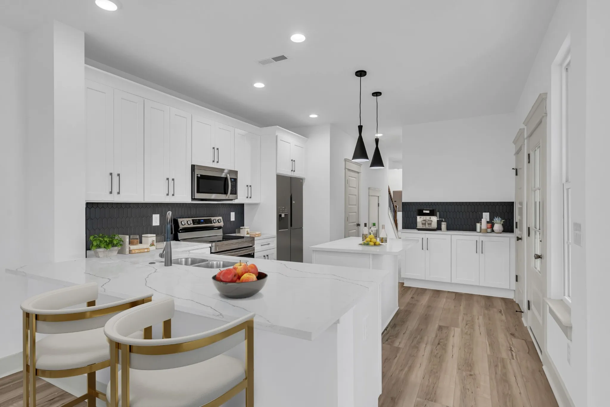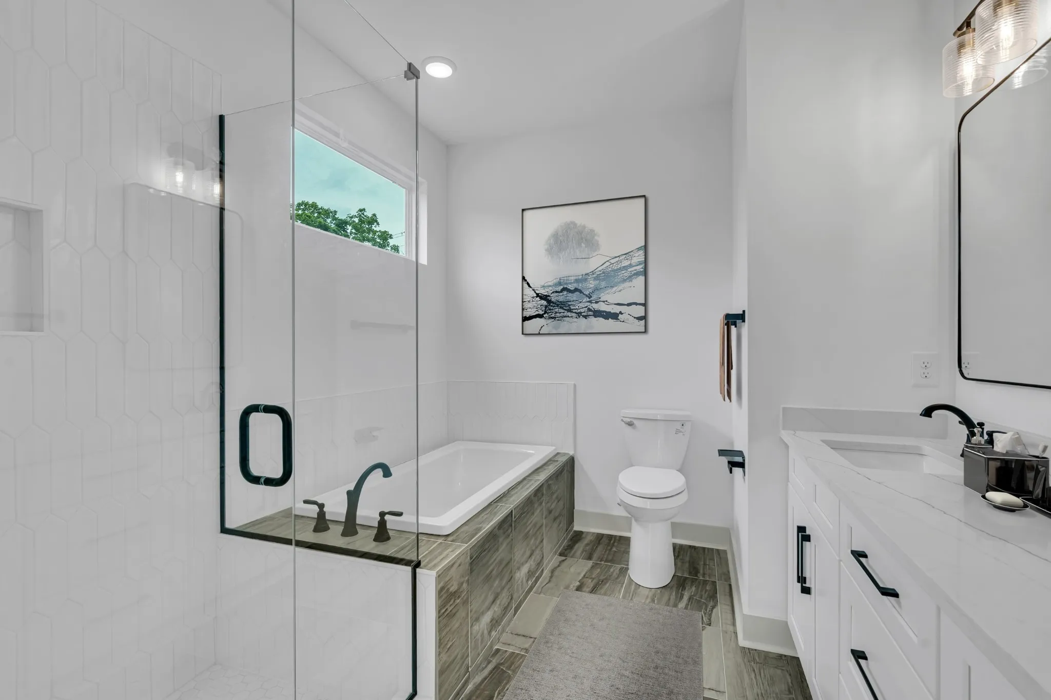 Primary bedroom on main level with double vanity, free standing tub and walk in shower combo. Flex rom could be 4th bedroom, office or bonus area. Each luxury home includes vinyl plank throughout, soft close cabinets, quartz countertops, mosaic backsplash’s and custom wood closets, along with covered porches. Located less than 2 miles from Nashville West shopping center! Pics are of actual unit and ongoing construction progress. Estimated completion on track of on or before 5/31/24.