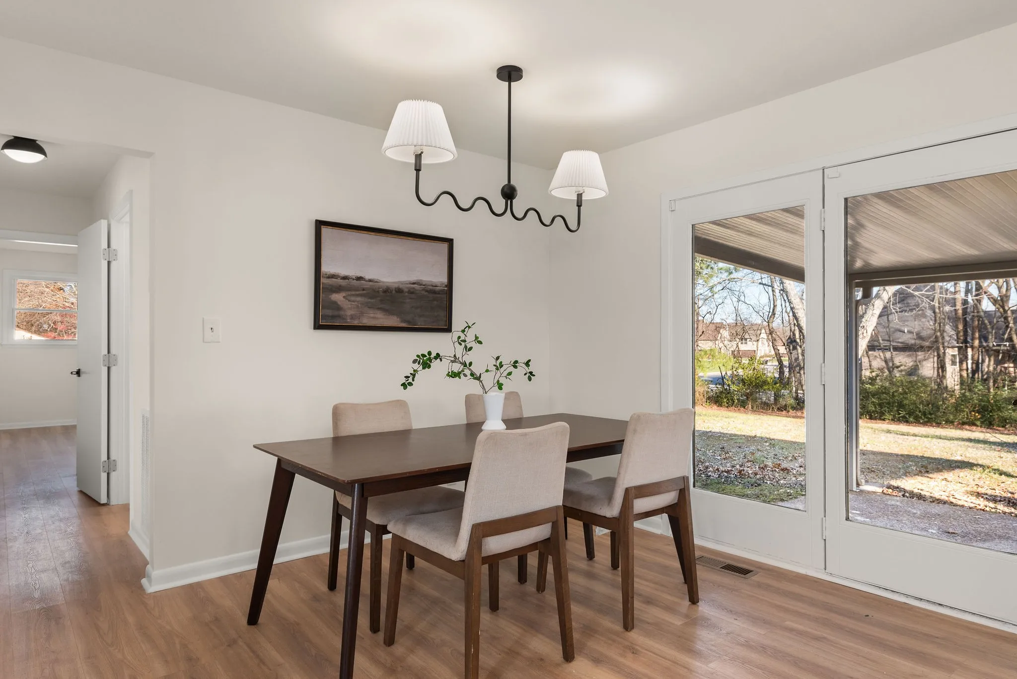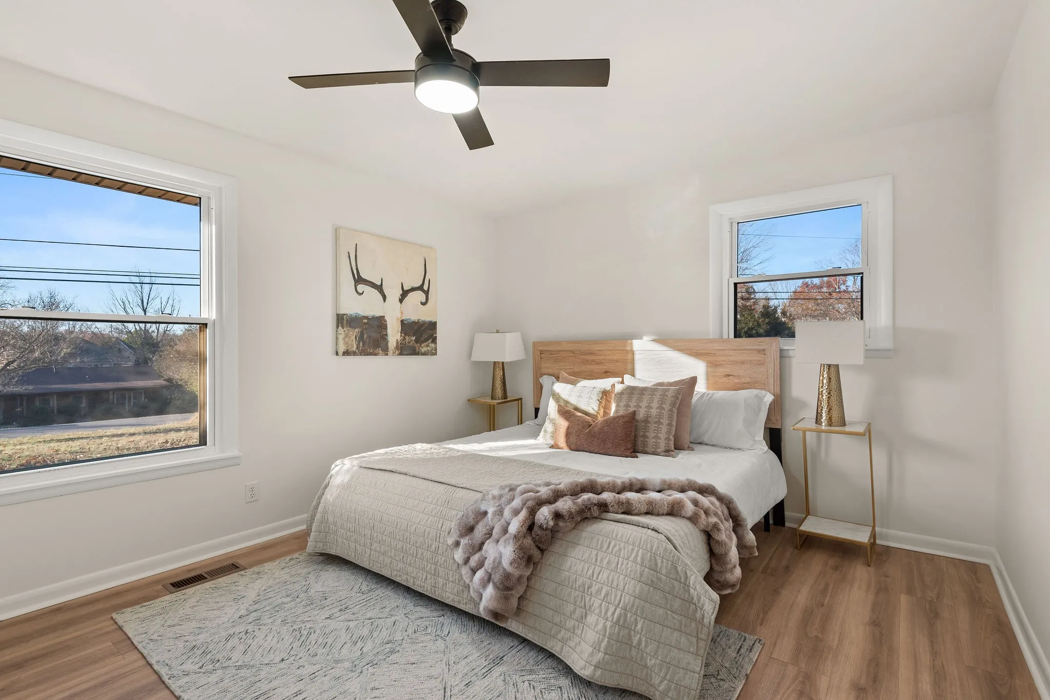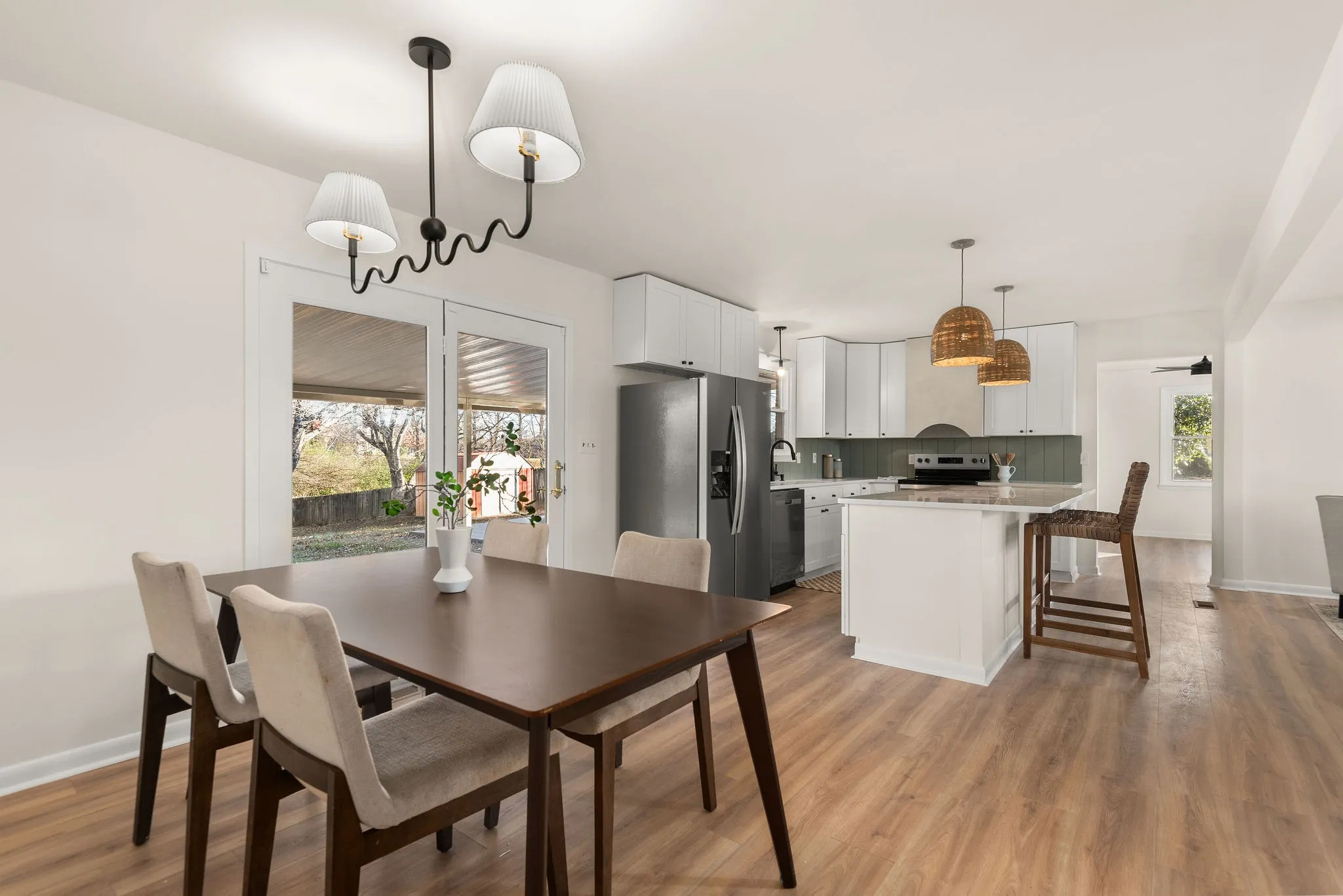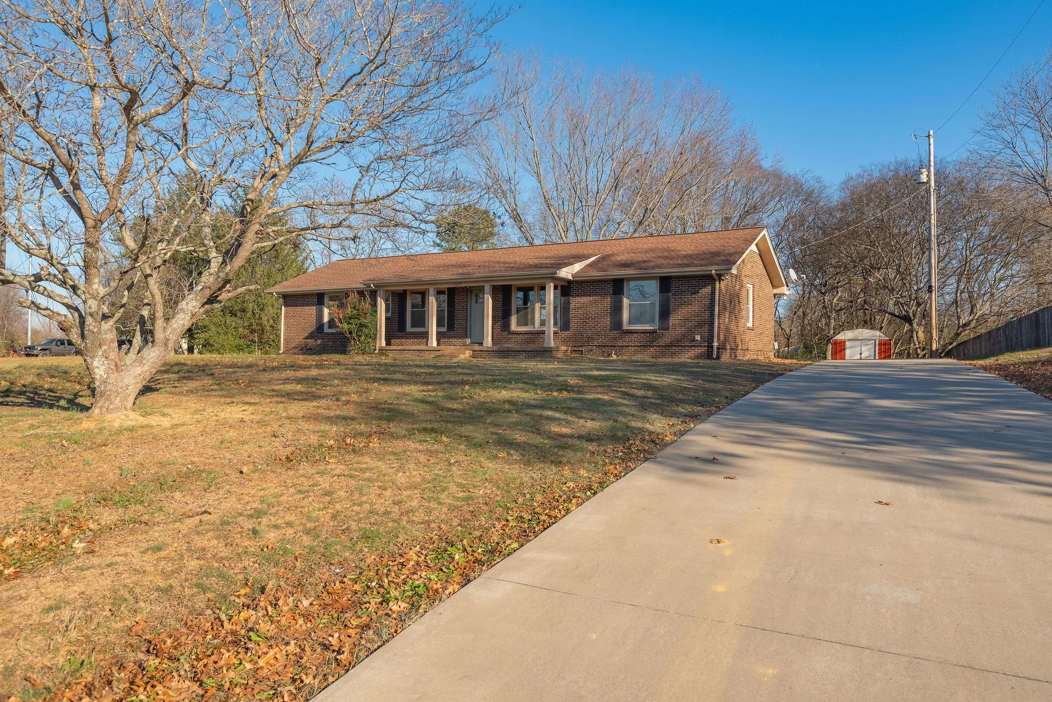 Located on a level 2/3 acre lot, this charming ranch has been meticulously renovated by an interior designer and features an open concept, new en-suite master bathroom and beautiful finishes. Enter through the columned front porch and you’re greeted by a spacious living room that enjoys large windows, tons of natural light and a perfect set up for hosting. Steps away are the elegant kitchen and dining spaces. The kitchen features wicker pendants, a lime wash hood, vintage bronze hardware, shiplap accents, quartz counters and high end appliances. A bonus room with an original wood burning stove fireplace provides ample space for entertaining, work from home, hobbies and kids to play. The covered back patio provides easy outdoor dining and grilling. The large storage shed remains and is perfect for your tools and toys. Land, privacy, quality and a great price just 30 min from downtown Nashville and 15 min from Springfield.