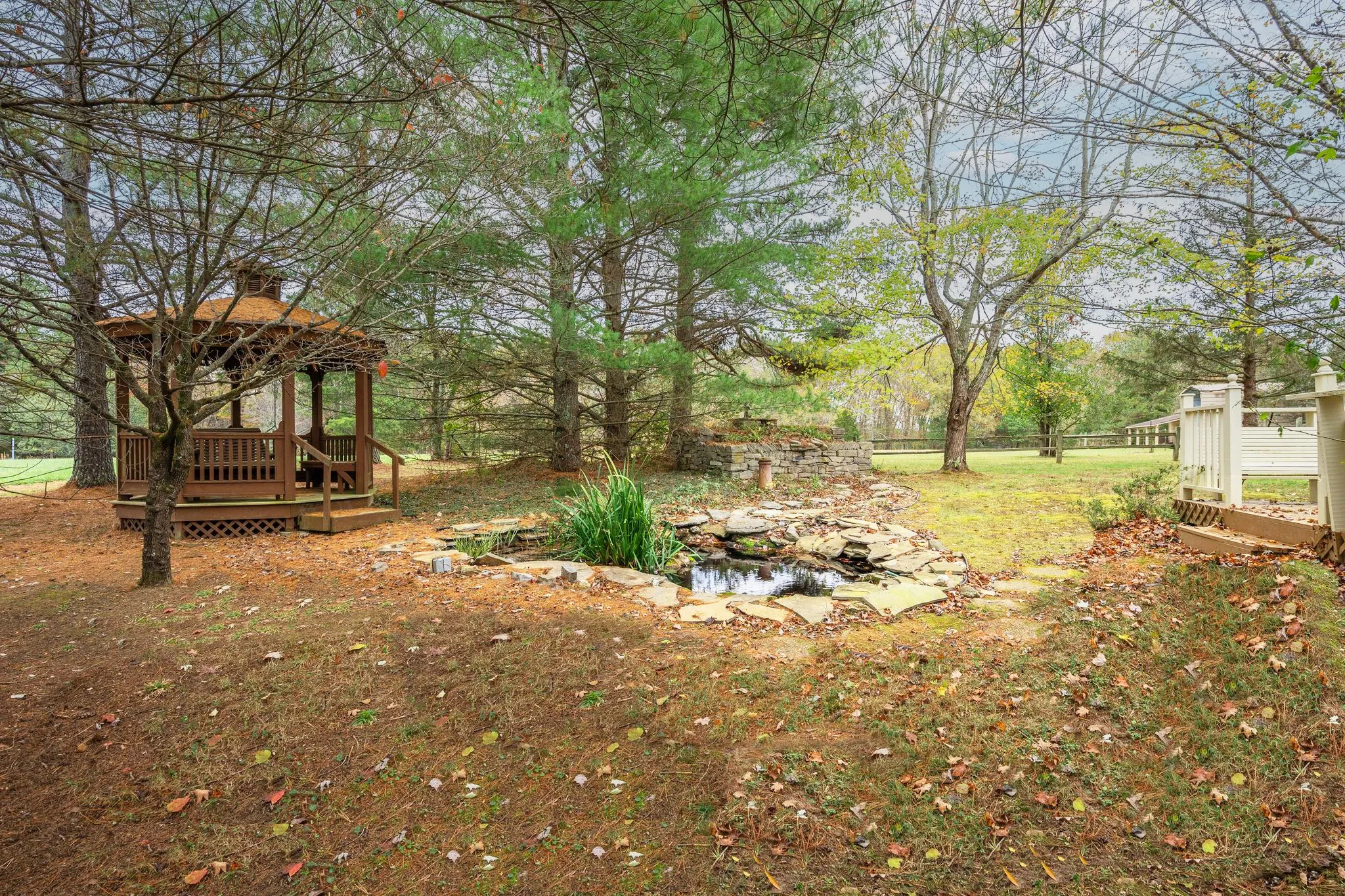 "LongDescription" => "Enjoy exploring the back yard with stacked stone water features, koi pond and gazebo."