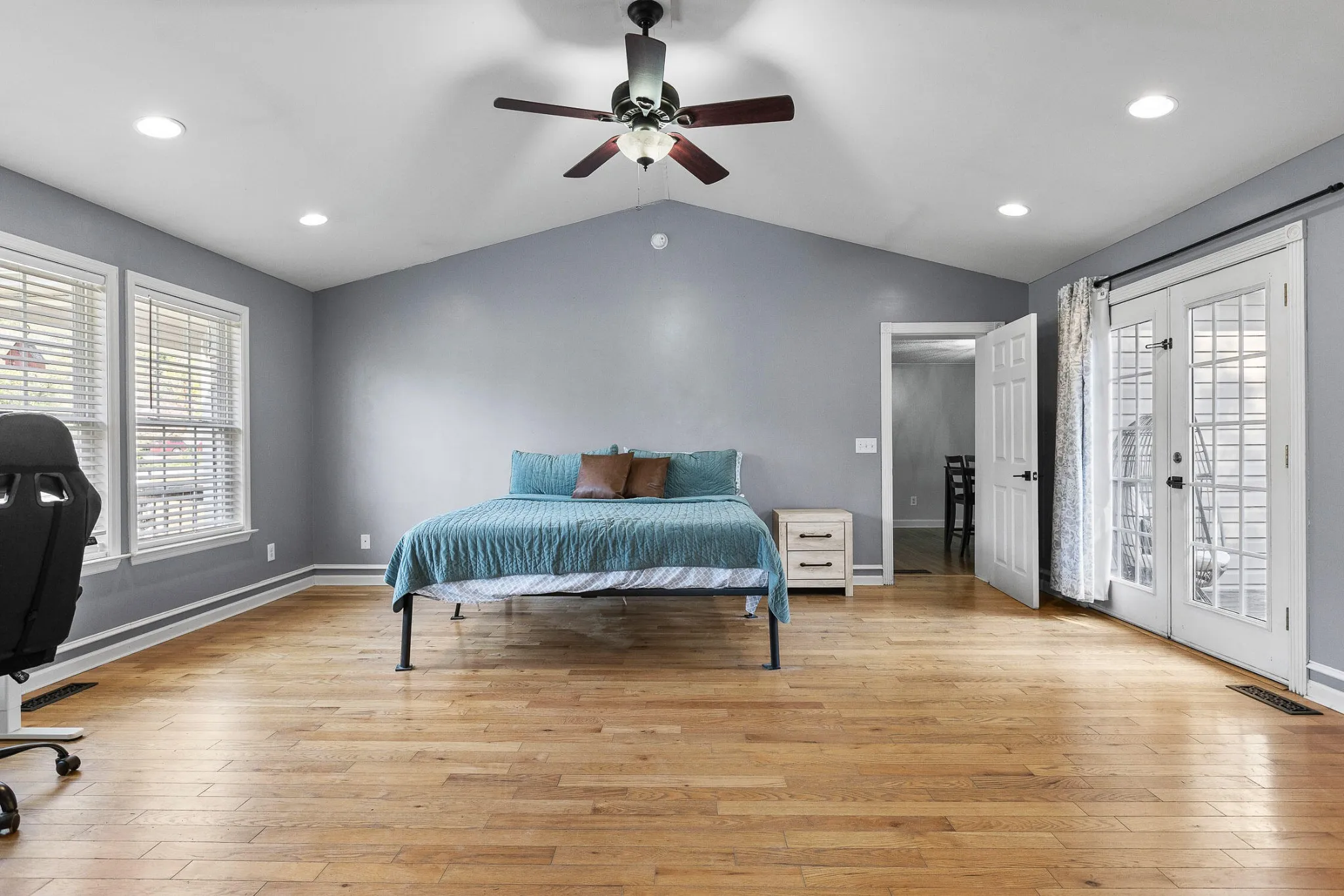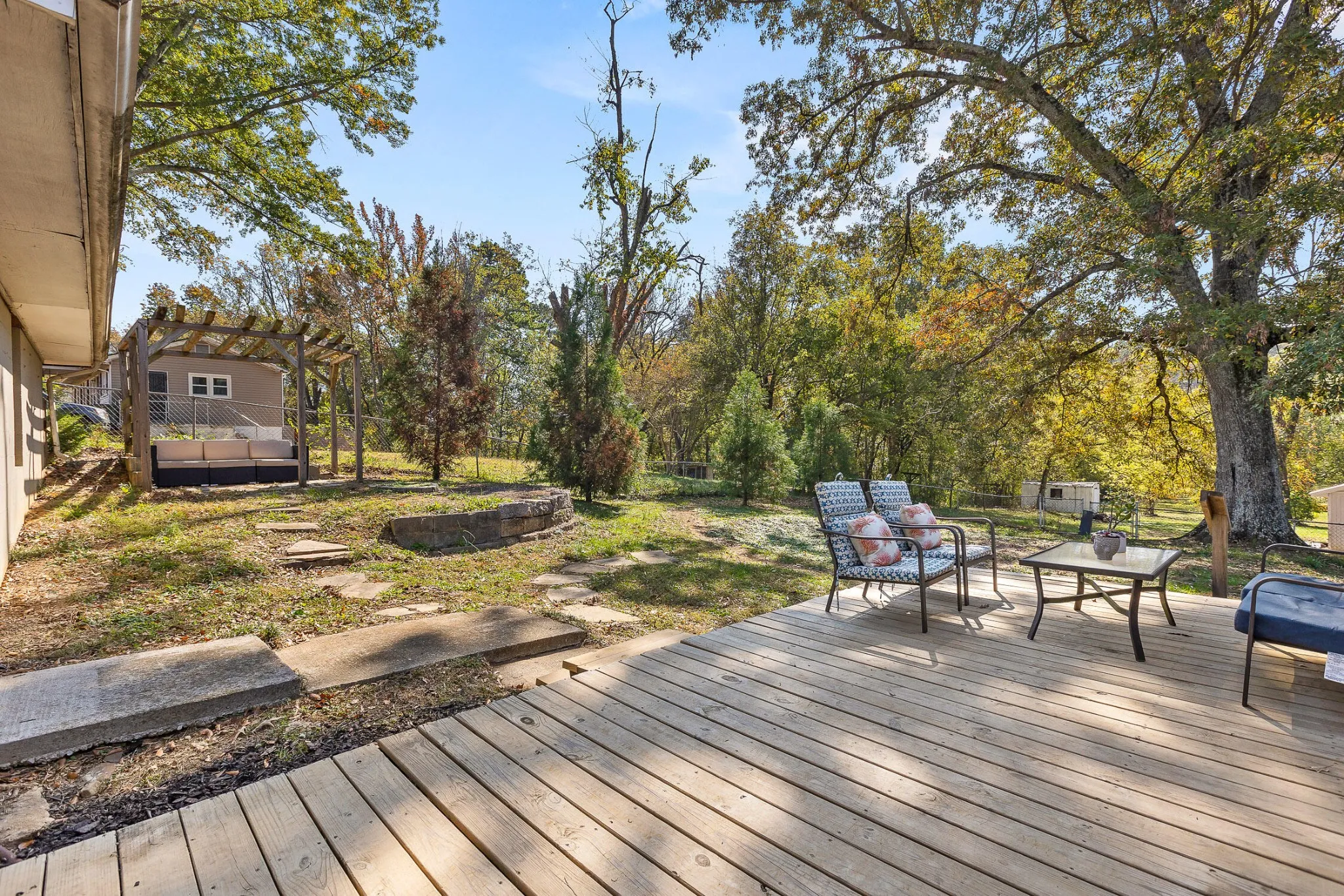 Nestled just 9 minutes from downtown, this charming 3-bedroom, 2-bath home combines space, privacy, and modern comfort. The expansive master suite impresses with its elegant hardwood floors, soaring cathedral ceiling, and a semi-private porch for serene mornings. Step through stunning French doors into a luxurious master bath with a separate shower and jetted tub, a double vanity, and a spacious walk-in closet. The kitchen, offers abundant cabinet space and stainless steel appliances, is perfect for cooking and entertaining. Outside, a fully fenced backyard provides a private oasis complete with a large deck, ideal for gatherings and relaxation. Recently painted throughout. This beautifully maintained home offers the perfect blend of convenience and retreat. Don’t let it slip away!