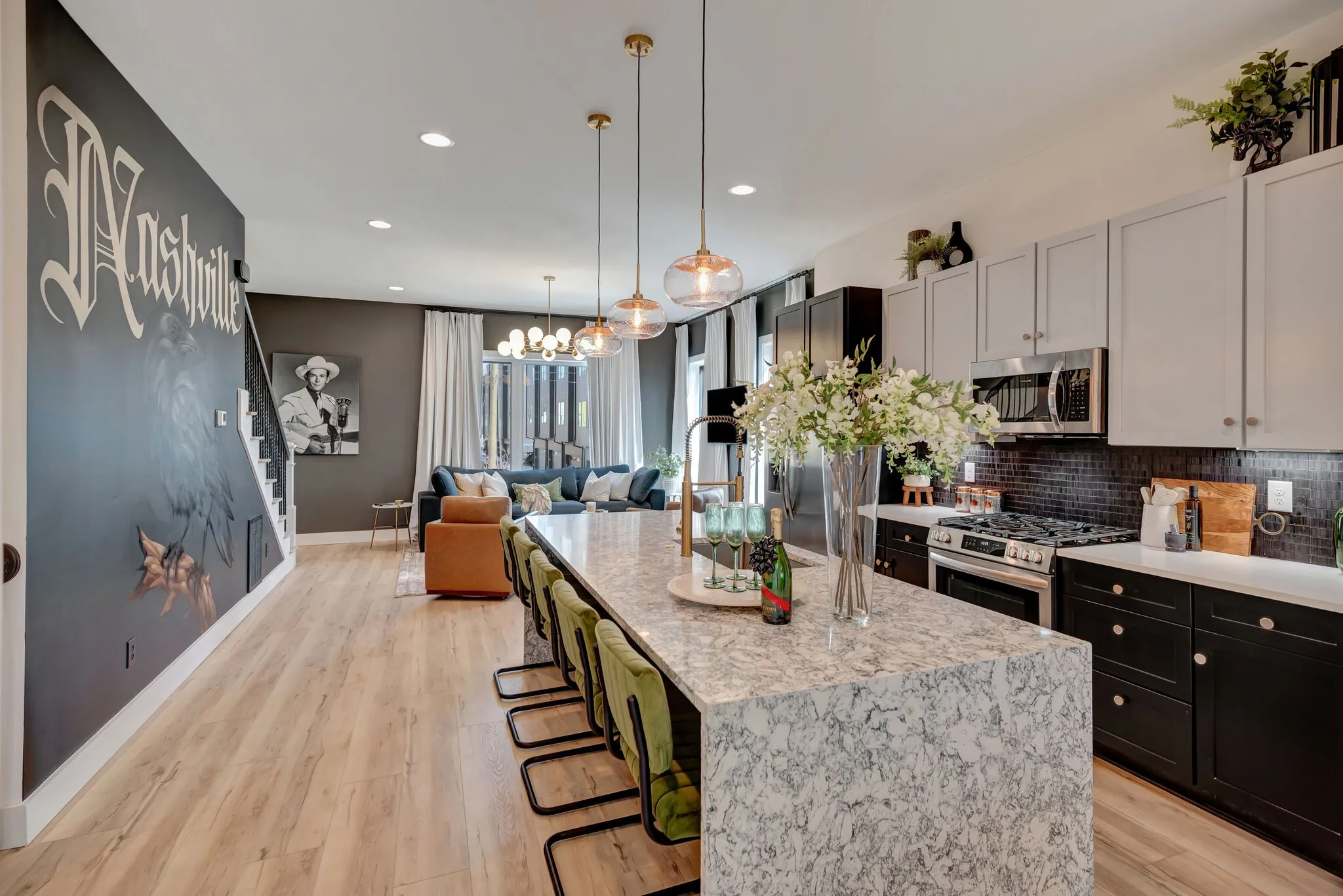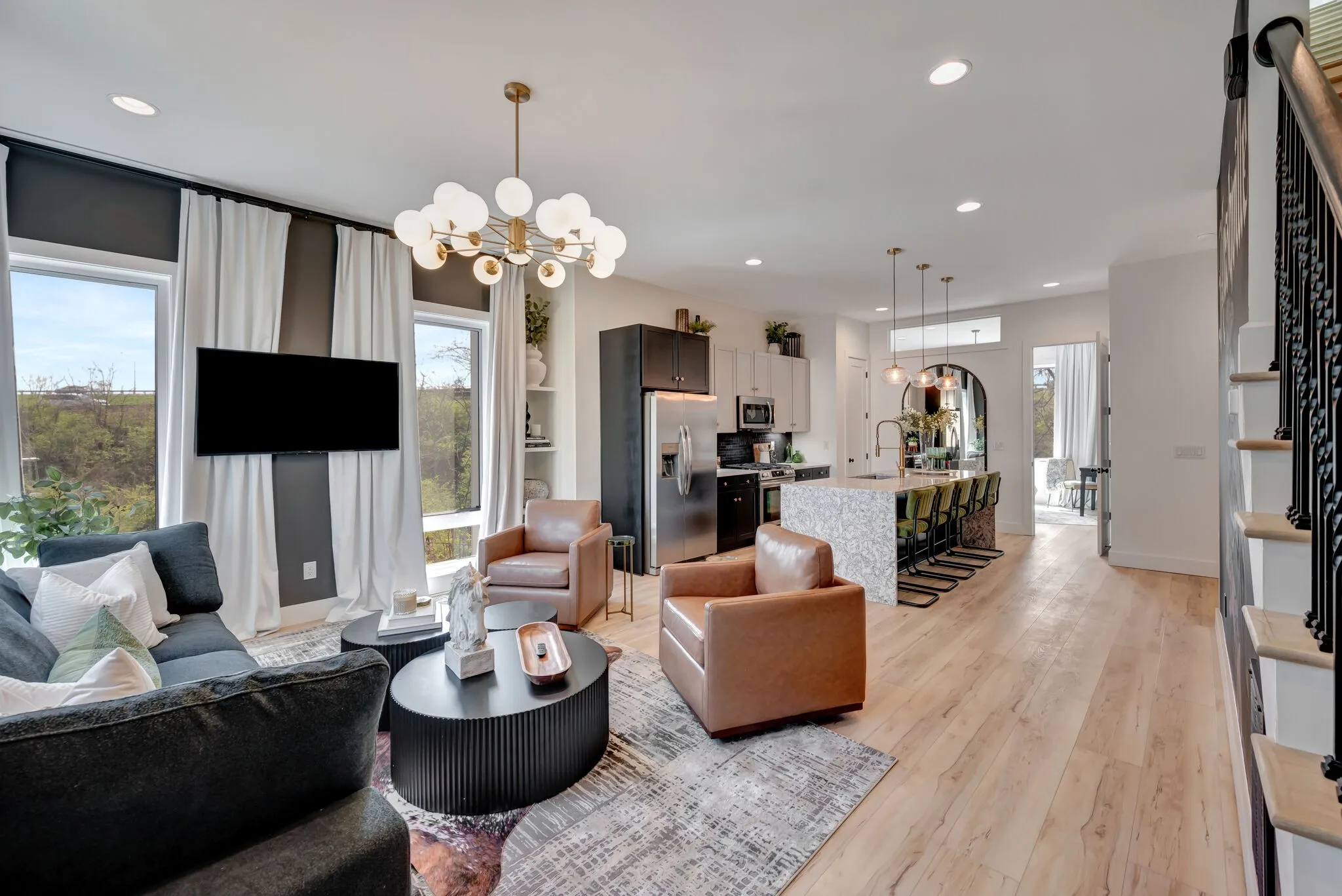 FURNISHED MODERN NON OWNER OCCUPIED AIRBNB – SHORT TERM RENTAL DEVELOPMENT WITH CITY VIEWS & ROOF TOP HOT TUBS! Our 6 units are designed from the ground up to maximize short-term rental income! Sunbathed California contemporary open floor plans with durable high-end details, these homes dazzle at every turn. Chef’s kitchen with duel fuel range, fabulous master suite with double head shower, quartz, LVT flooring, skylights in the stairwells, high efficiency appliances & HVAC, tankless water heater, LED lighting, 2 car garage and huge roof top decks with those skyline views & hot tubs. Optional outdoor kitchen available. Located directly adjacent to the River North development which is comprised of over $12 billion of new construction between the new Titans Stadium, Top Golf, East Bank redevelopment, Station East and Oracle HQ projects. Skyview is a fantastic VRBO and NOO STR investment opportunity that is zoned MUL!