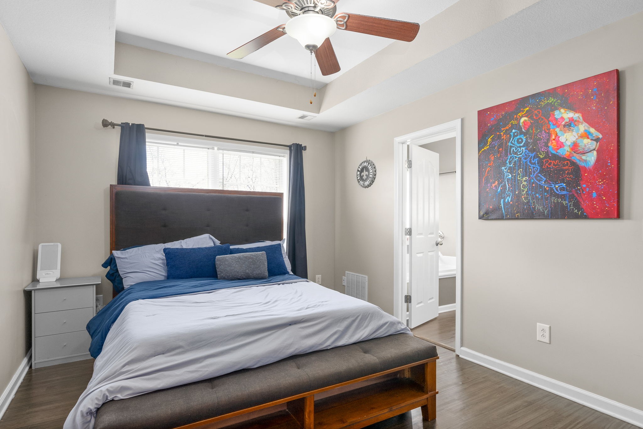 A lovely ranch style home with easy access to I-24, shopping, dining, entertainment, etc! This home offers a split bedroom floorpan with dark laminate floors throughout, an open layout, tall ceilings, and a fireplace in the main space. Kitchen offers an eat in area and a pantry with ample cabinet space. The primary bedroom is large with a nice sized walk in closet, an en suite with a double vanity, an over-sized soaking tub, and a separate shower! This home is complete with a laundry room and an awesome sized fenced in backyard with a deck, and NO rear neighbors. Welcome home!!! Seller is offering a HOME WARRANTY with a full priced offer.