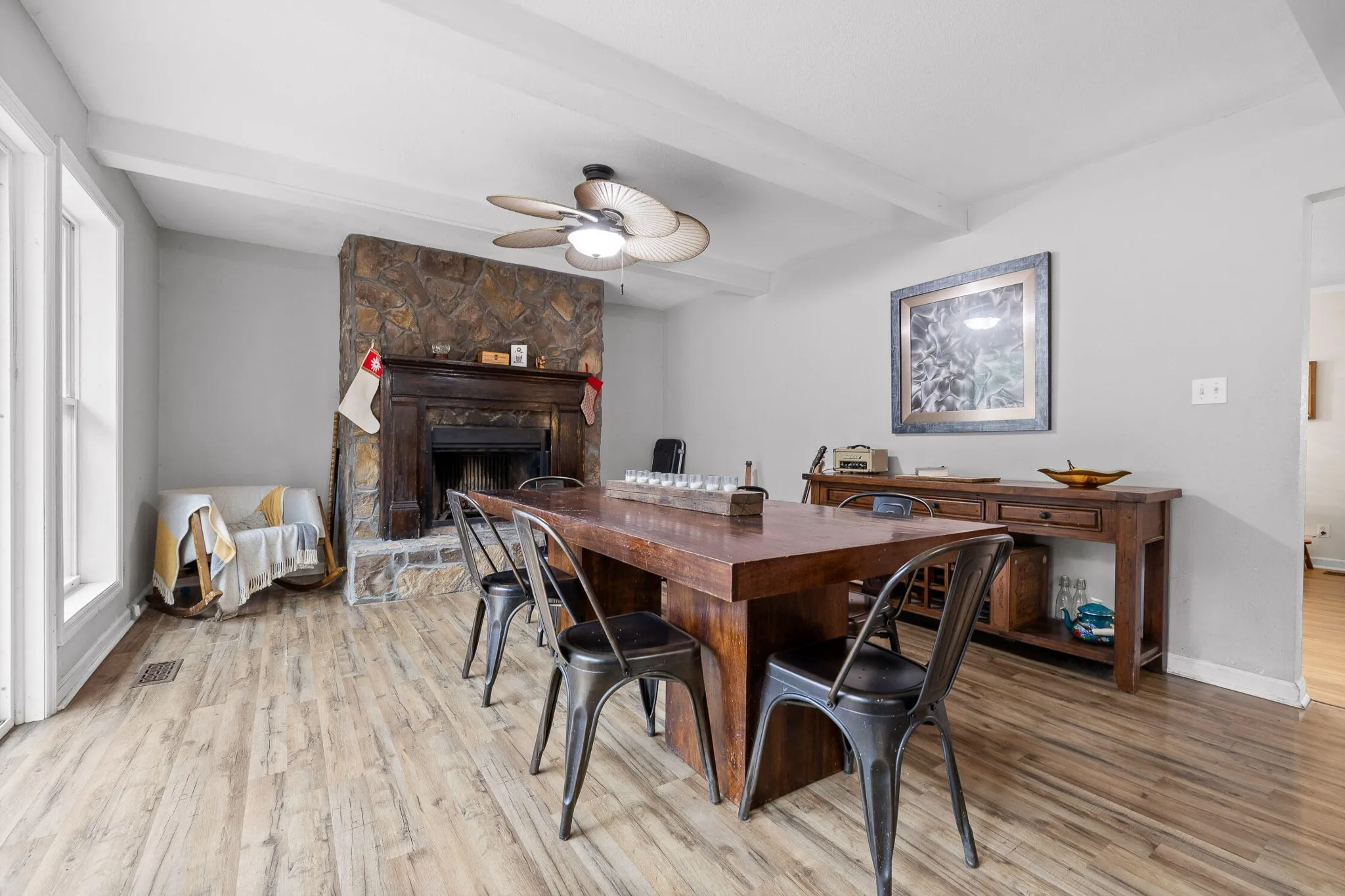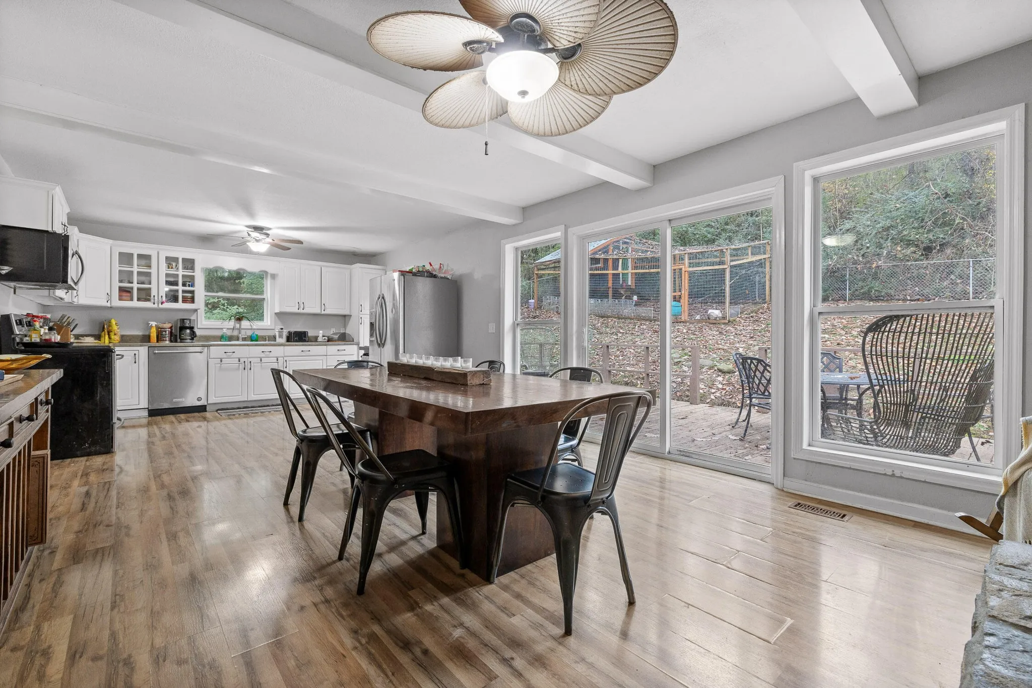 Situated on just over an acre, 4951 Montcrest Drive provides both privacy and potential—a great opportunity for those seeking a prime location and ready to make this home their own. The kitchen features white cabinetry, and essential appliances, ready for your personal touch. A stone fireplace and beamed ceilings in the dining area add character, with sliding doors leading to the back deck and fenced backyard. A custom-built chicken coop and spacious yard provide room for outdoor projects, while the side-entry garage offers convenient access to the home. Set in a private and quiet setting, yet just minutes from Harrison Bay Lake, Booker T. Washington State Park, and local amenities, this home offers both seclusion and accessibility. Bring your vision to 4951 Montcrest Drive and create a space that fits your lifestyle. Schedule your private showing today!