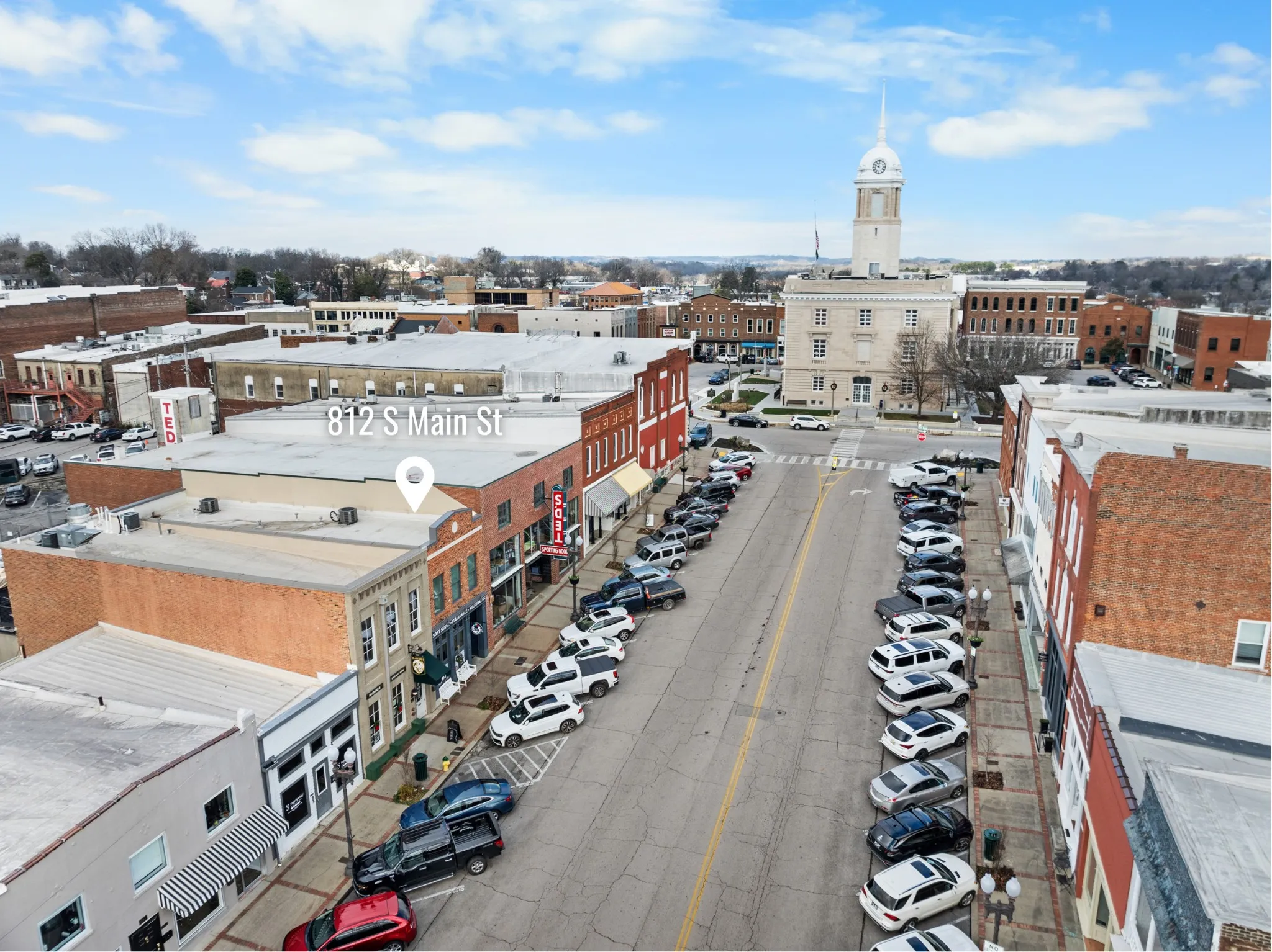A remarkable building in the heart of downtown Columbia, TN, blending modern design with historic charm. Built in 2018 by Paul Varney Construction, this property is thoughtfully crafted to complement the surrounding historic structures, creating a seamless integration of old-world character and contemporary convenience. Exposed brick walls throughout the building feature the original Royal Blue Shoes mural advertisements, a nod to the area’s rich past.The upstairs of the building boasts a spacious 1,330 square-foot apartment, perfect for modern living with a unique flair. This two-bedroom, one-and-a-half-bathroom residence offers all the comforts of home, including a washer/dryer for added convenience. The apartment provides stunning views of Main Street to the east, allowing residents to soak in the vibrant energy of downtown. Additionally, it includes a 485-square-foot outdoor patio, perfect for enjoying sunsets in the west. Whether you’re unwinding after a busy day or hosting friends, this outdoor space is an exceptional feature.The ground floor of the building offers 1,653 square feet of prime retail space. Currently leased to a family-owned Italian ice and dessert shop, the businesses along the Columbia square benefit from high visibility and foot traffic on a daily basis and at numerous town events like monthly First Fridays, the annual Mule Day festivities, and more local events. This building offers a fantastic opportunity for investors seeking to expand their portfolio with a prime commercial/residential building in a historic southern town less than an hour from Nashville. Showing must be scheduled with your Buyers Agent.
