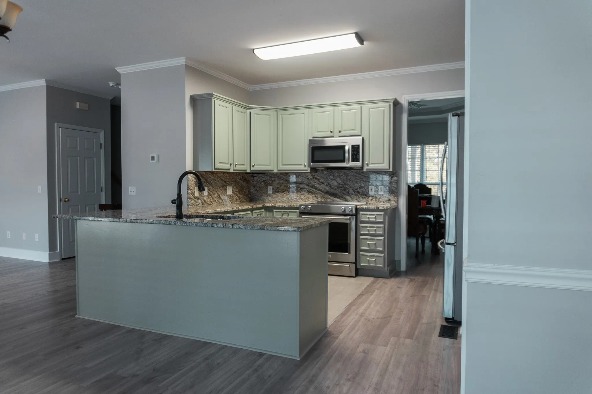 101 Brookstone Drive in Burns, TN, is a spacious, modern home set on a generous 1-acre lot. This 4-bedroom, 3-bathroom property features approximately 2,871 square feet of living space, including an open-concept kitchen and living room with a cozy gas fireplace. The home offers numerous upscale amenities, such as a formal dining room, an office with French doors, and a theater room equipped with a 110-inch screen. Hardwood floors, trey ceilings, and elegant crown molding enhance the home’s aesthetic appeal.