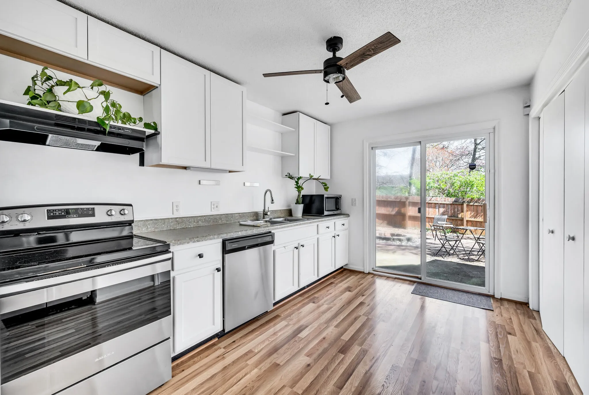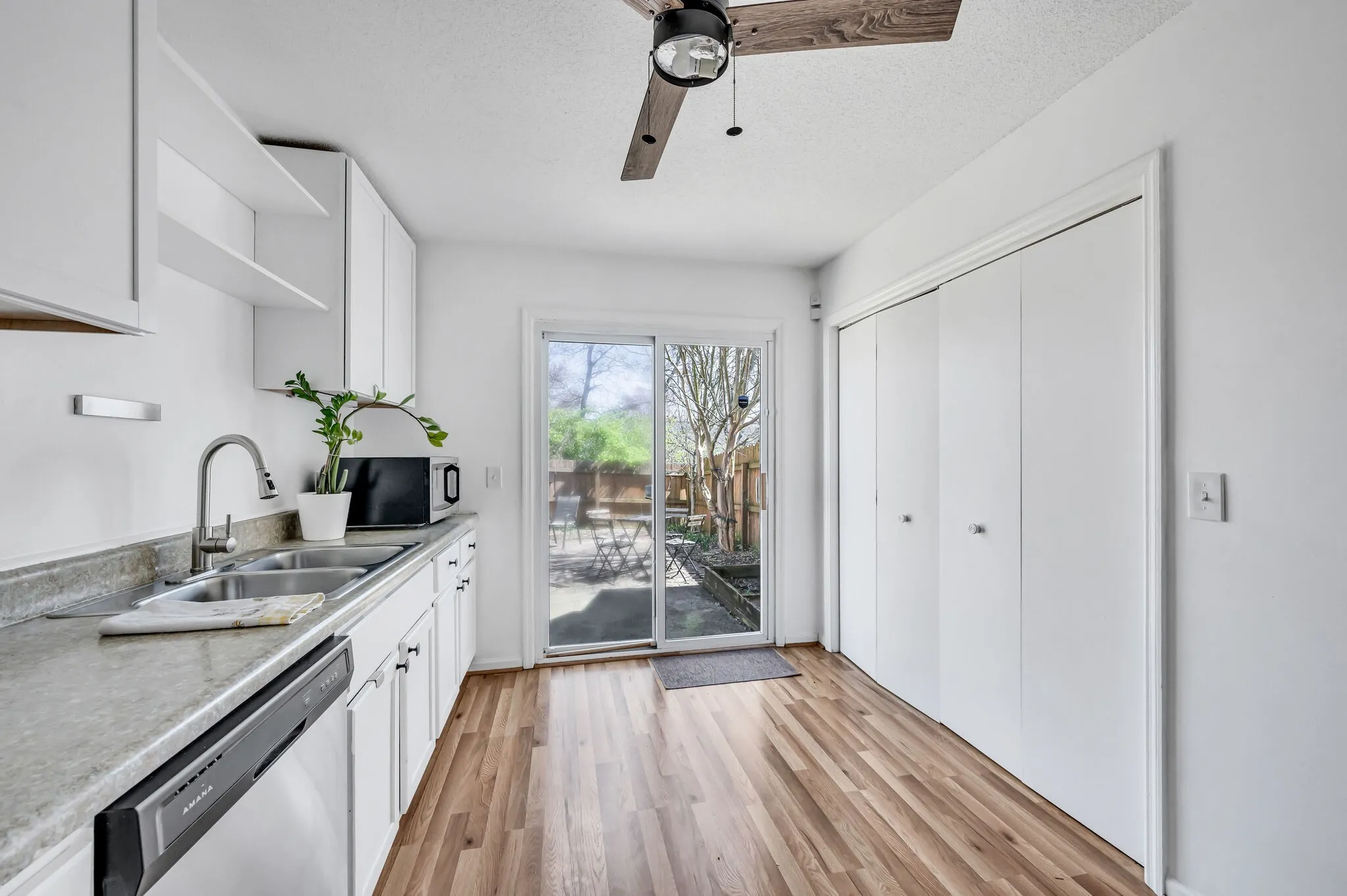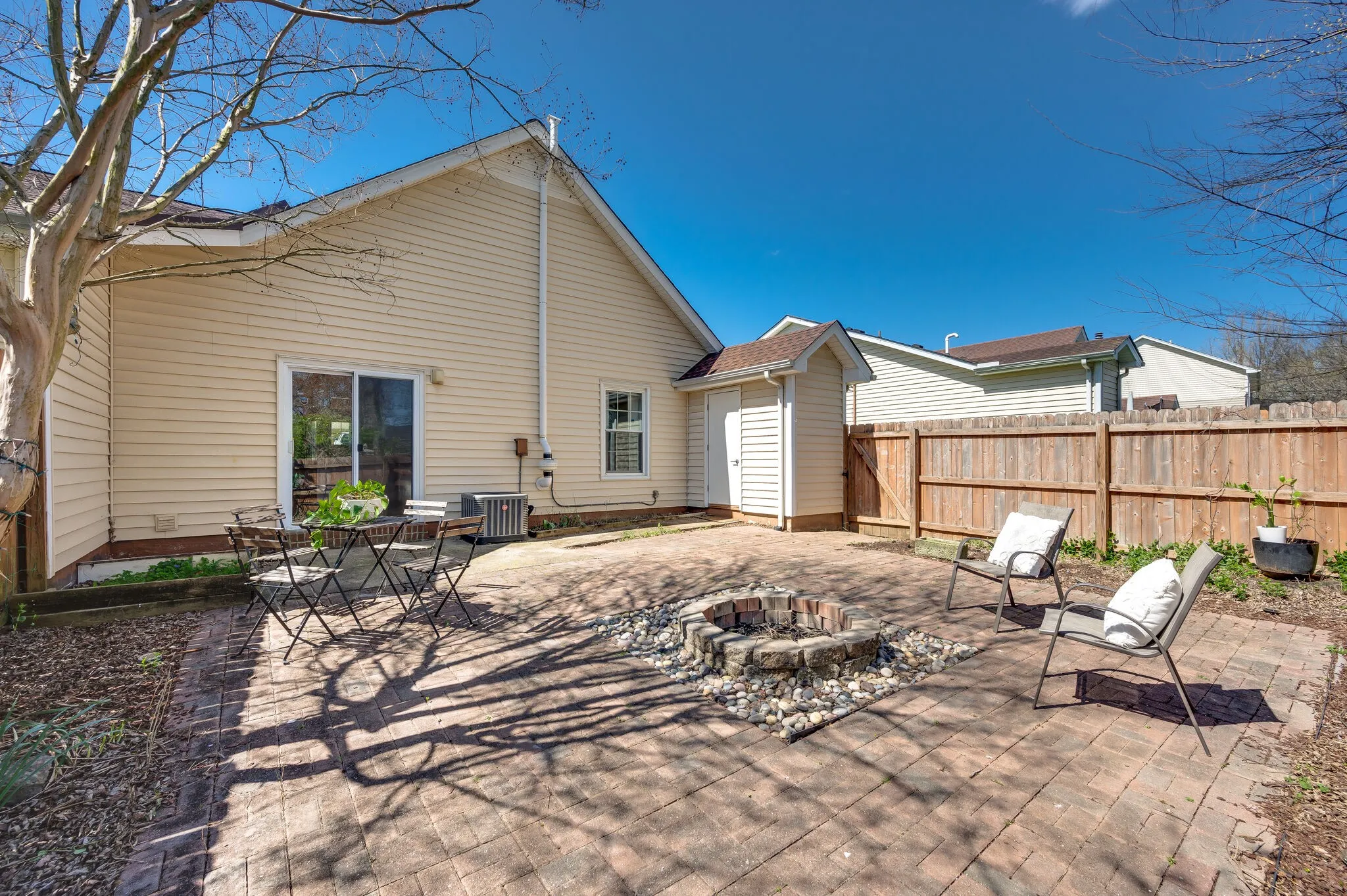 Beautiful, bright, and private home in the heart of Bellevue. Two spacious bedrooms with each bedroom having access to it’s own toilet/sink/vanity and a shared shower/tub combo. Beautiful floors throughout, plush carpeting in bedrooms. Each bedroom has two spacious closets with custom builtins in the back bedroom. Bright and sunny kitchen opens up to private fulled fenced-in courtyard patio with a builtins firepit. Washer and dryer in unit full size. Large living, and dining room combination with exposed shelves and fireplace. Lawncare and garbage covered in rent. Non-refundable pet deposit. Please contact Toni Ehredt directly at 815-690-3336 for all showings.