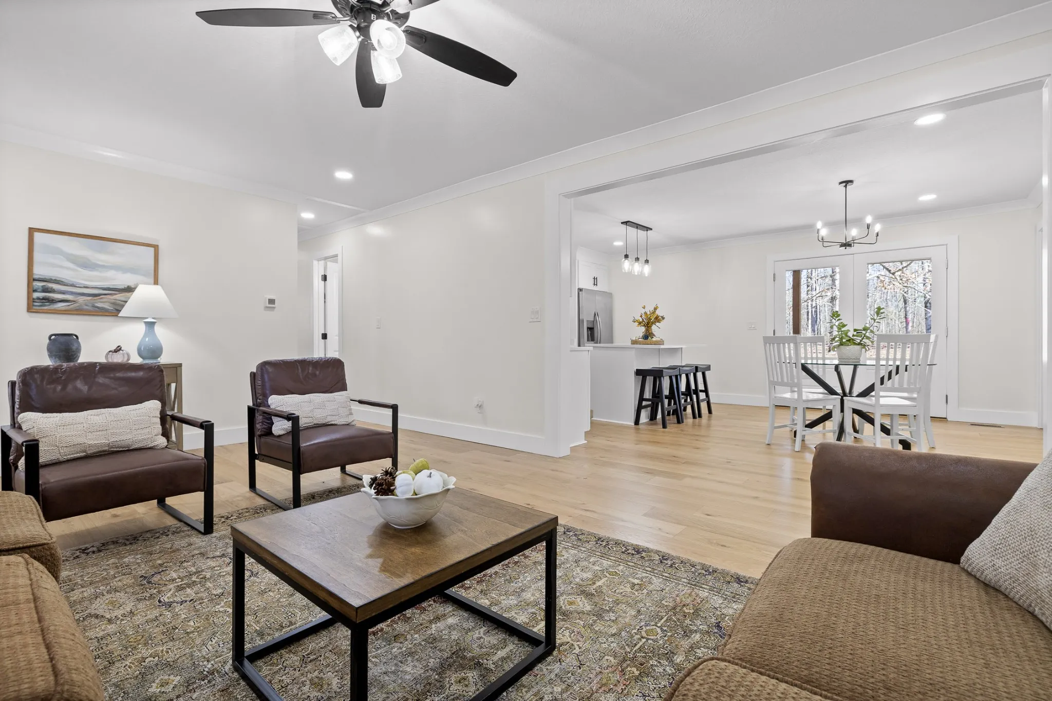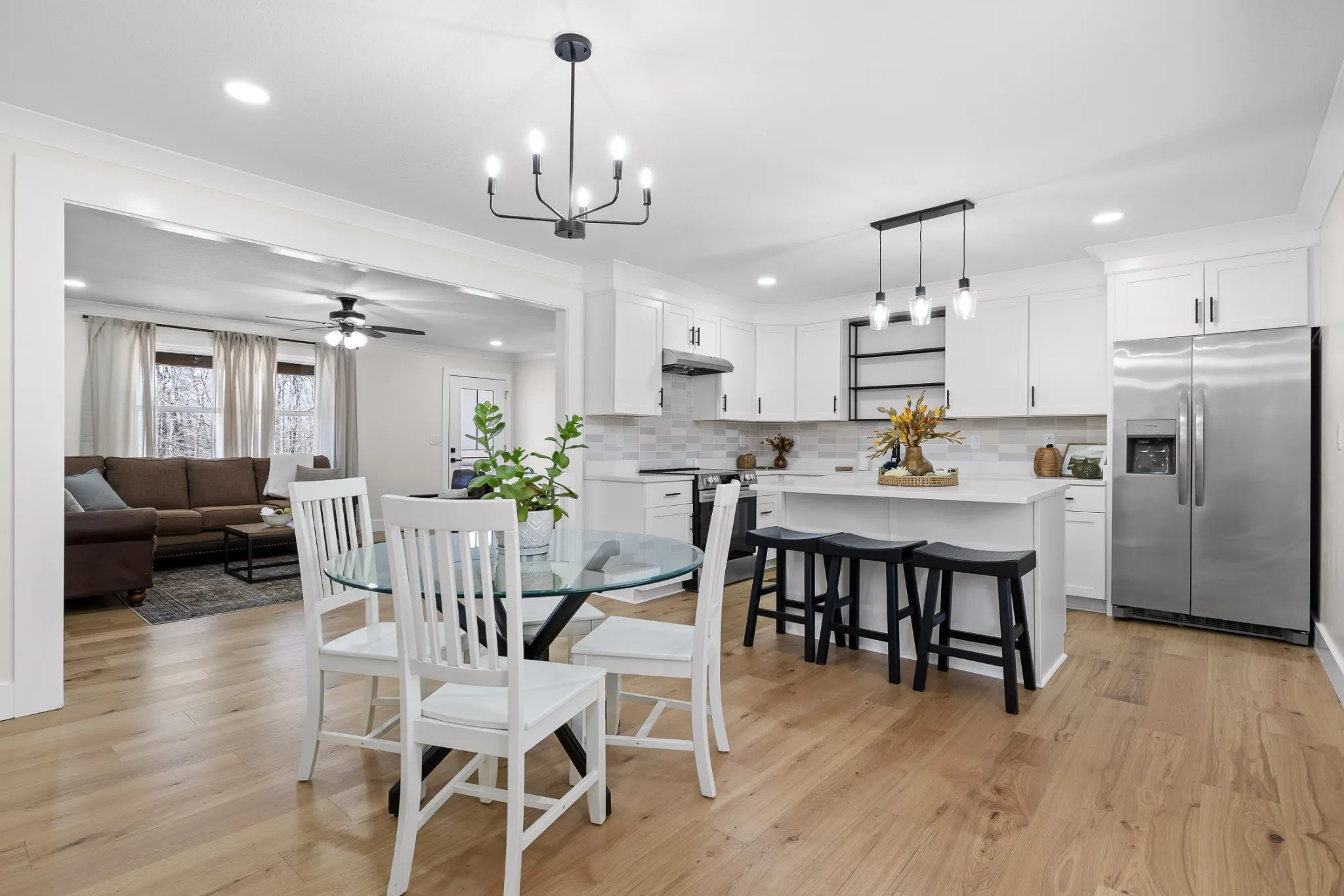 Every inch of this home has been refreshed, from the brand-new roof and windows to the modern light fixtures, plumbing, cabinetry, stone countertops, and sleek new flooring. With 1,508 sq ft of living space, there’s room for everyone. Two of the four bedrooms include ensuite bathrooms for added convenience and comfort. Enjoy your morning coffee or host a barbecue on the brand-new covered deck, surrounded by the beauty of nature. Features a large storage building and a circle driveway for easy access. The HVAC system is just 5 years old, ensuring efficiency and reliability. Appliances are included—just unpack and settle in!