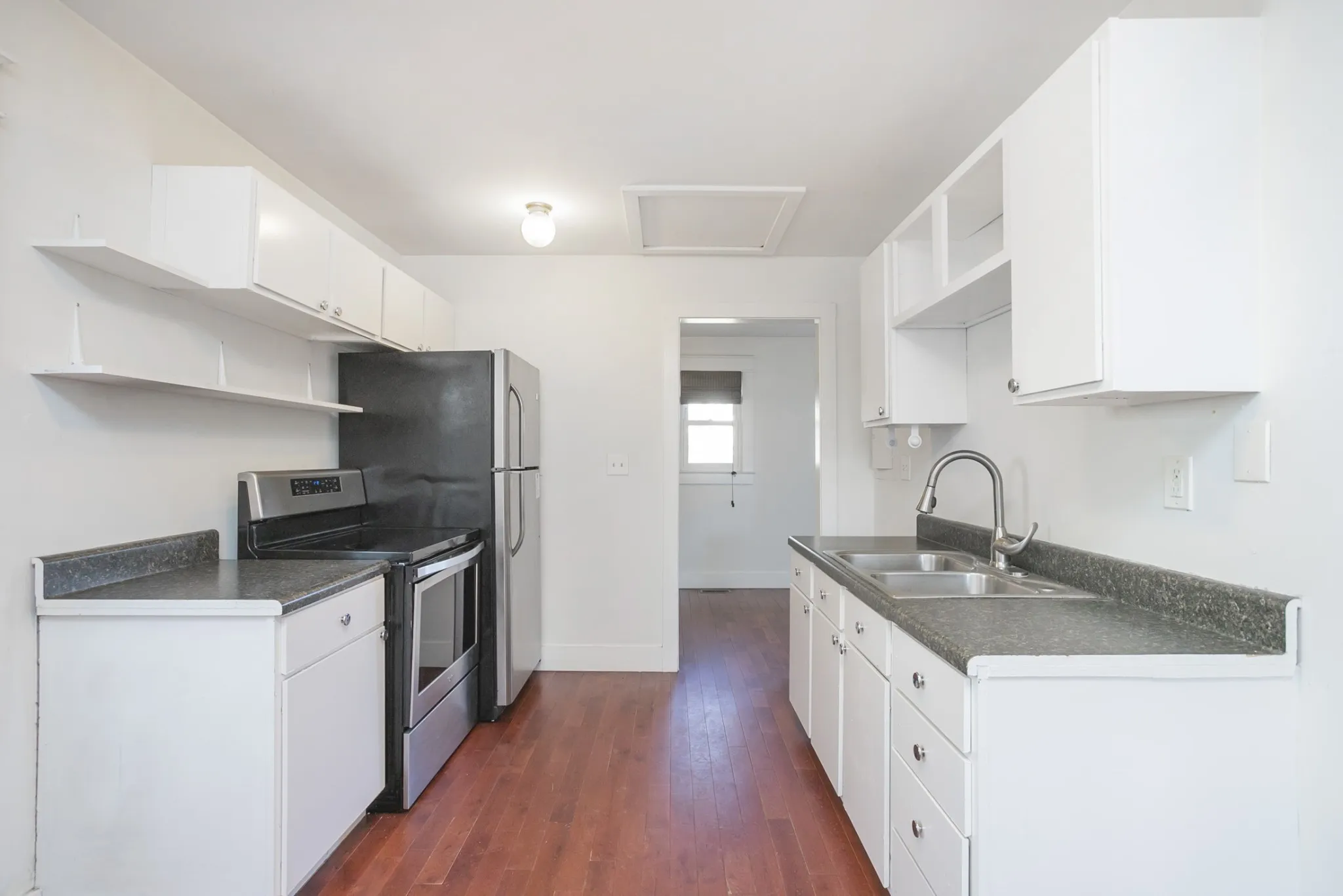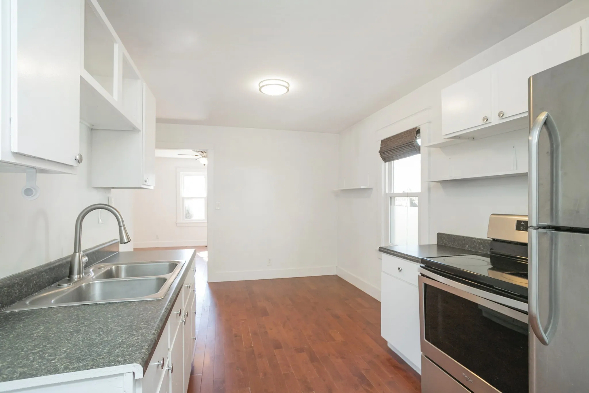 True East has 2 bedroom, 2 bath updated cottage FOR RENT in Shelby Hills. Hardwood floors, bright interior, and stainless appliances. Large fenced yard, and great front porch — easy access to 5 Points, downtown, all your east side favorites, and Shelby Park! Pets considered, 2 max.