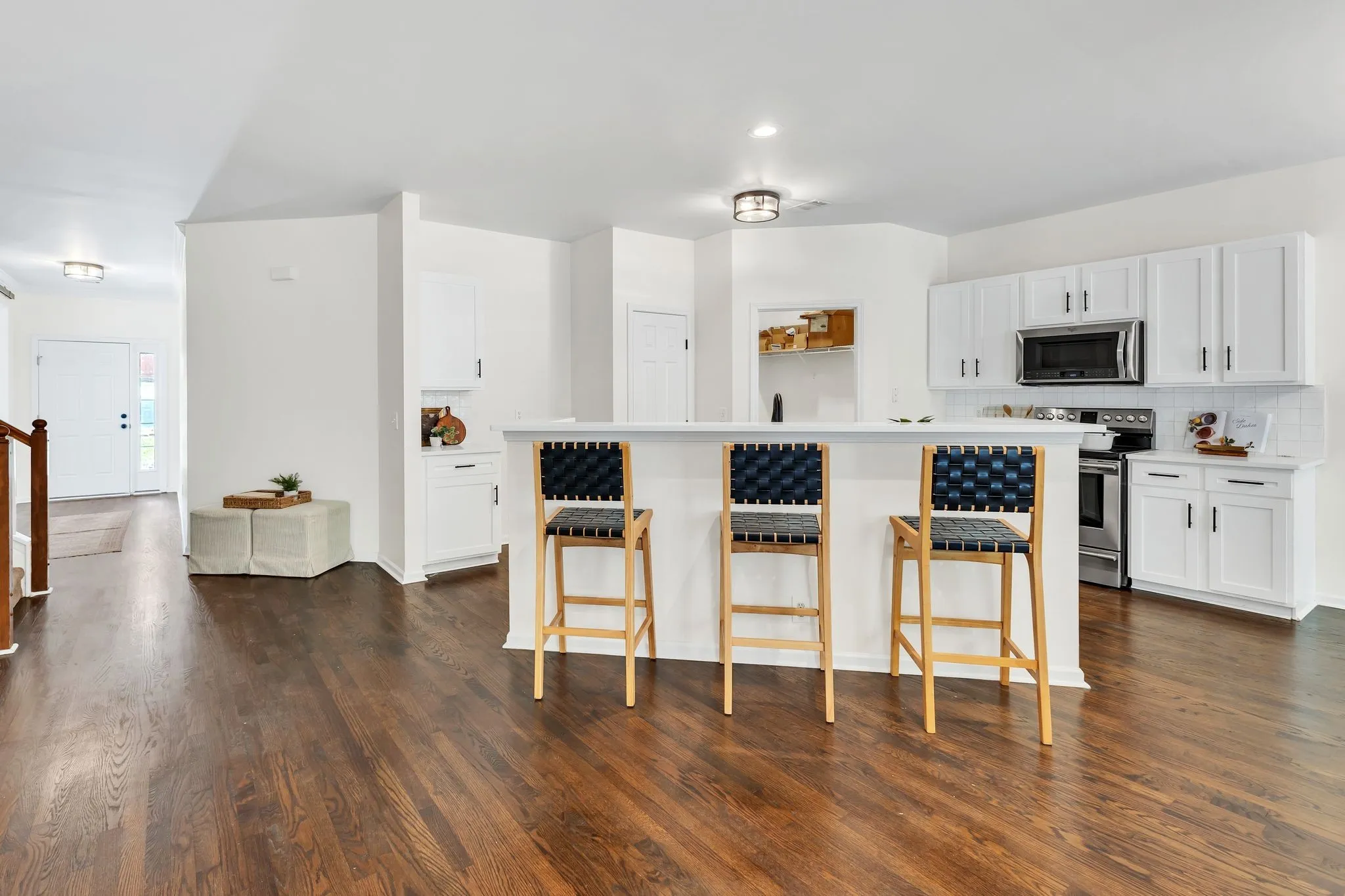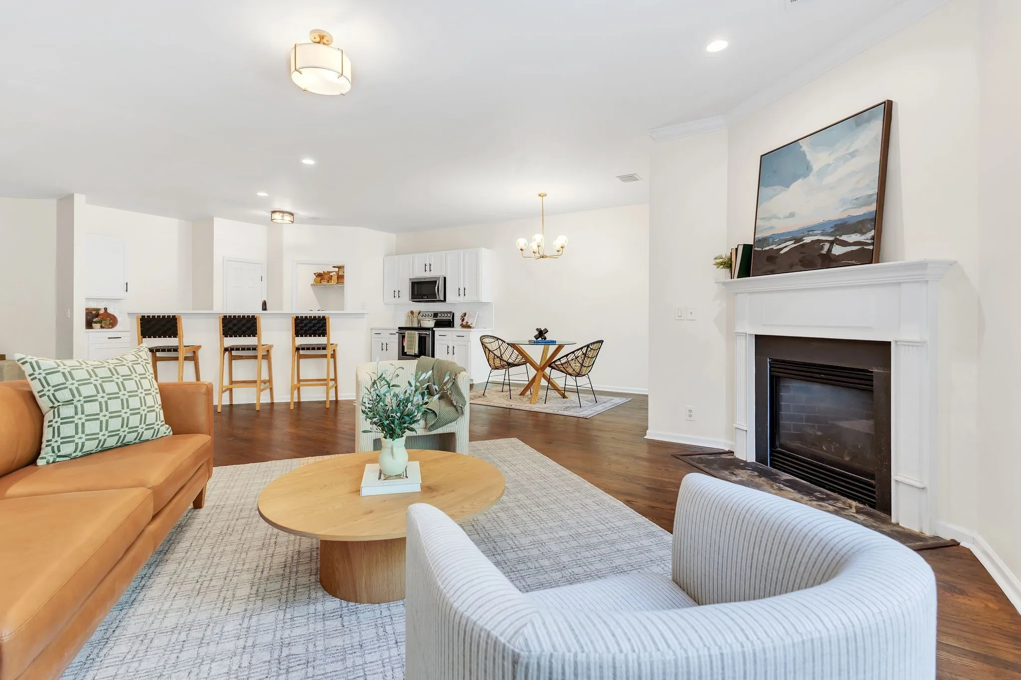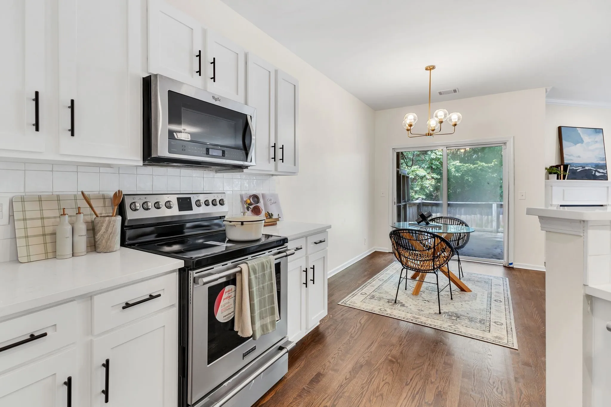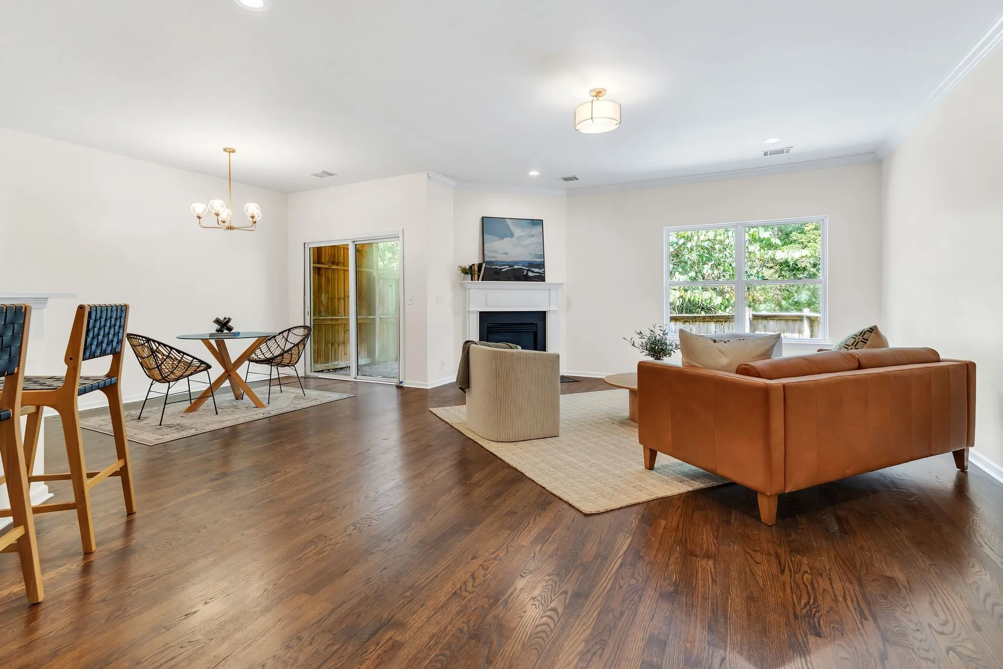 Beautifully refreshed, this home features an open-concept layout with modern finishes throughout. The spacious flow from living room to kitchen is perfect for entertaining and hosting, complete with hardwood floors, a cozy fireplace, and abundant natural light. The kitchen also boasts sleek white cabinetry, stainless steel appliances, and a breakfast nook area, a bonus given the separate formal dining room. The primary suite offers a serene retreat with more natural light and an en-suite bath with a brand new deep soaking tub and tiled shower. With the lake just beyond the tree line, you can spend your days basking in the sun out on the water, and end your days in your dream home! Don’t miss out, schedule a showing today!