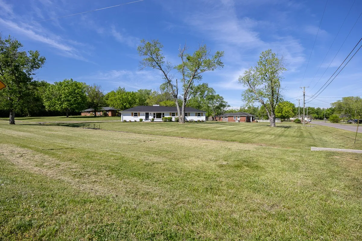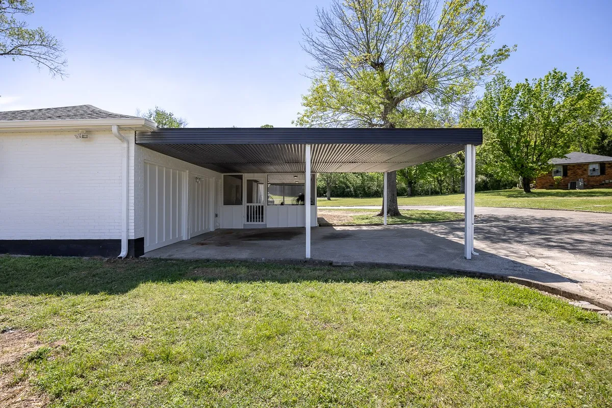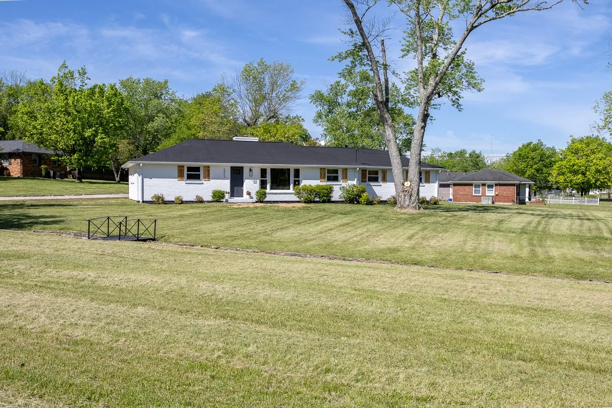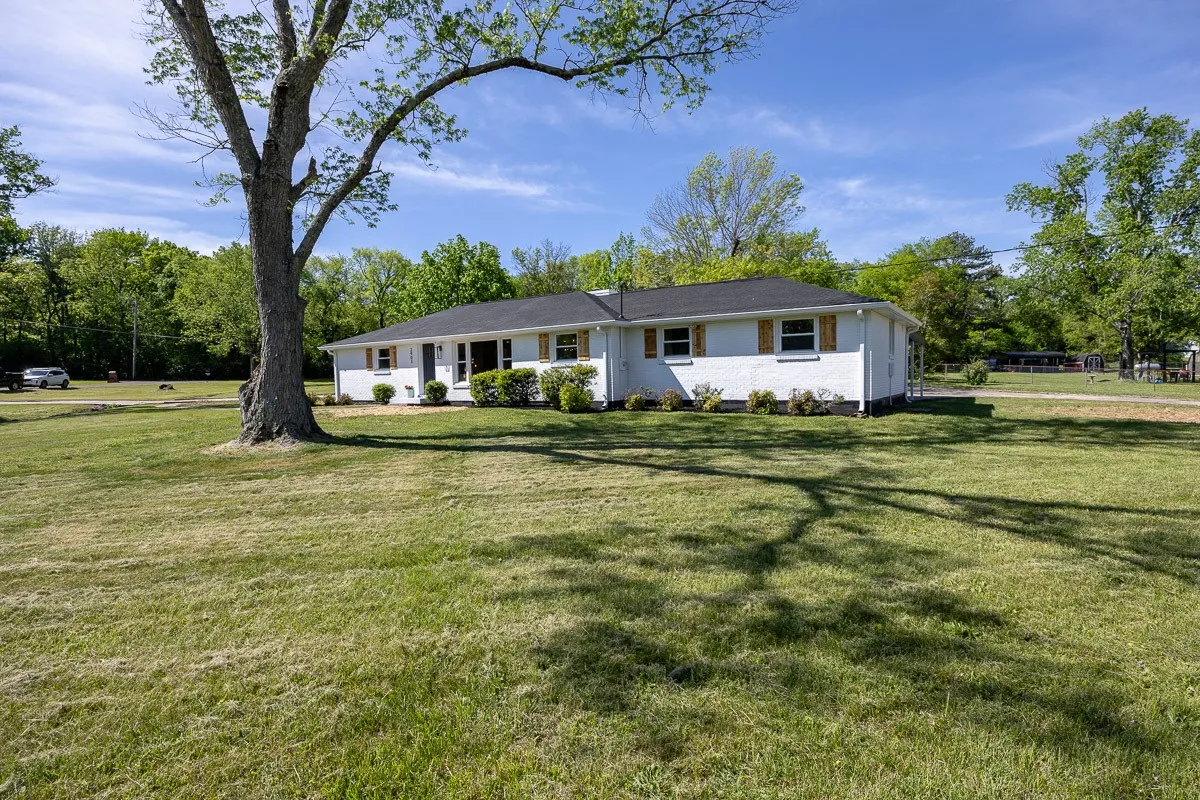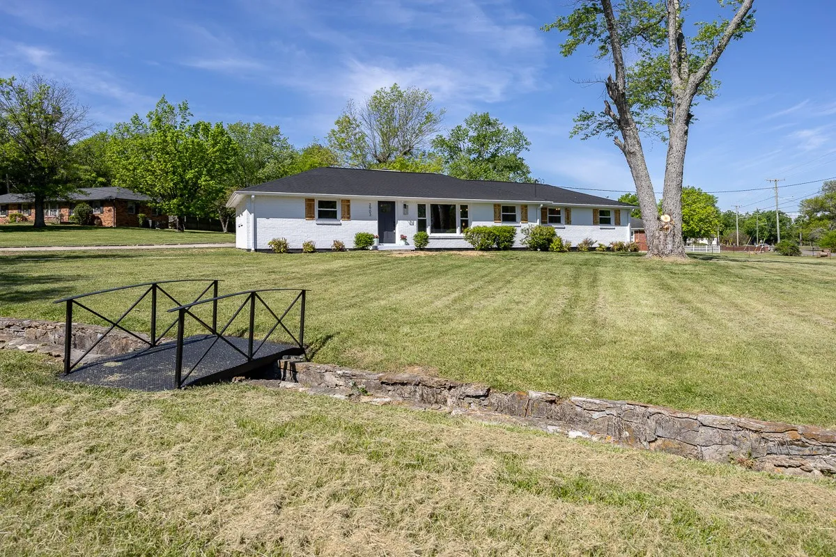 Multiple offers received. Please submit offers by Sunday May 12 at 3pm, response by Monday at 2pm. Another stunning renovation by BrassTacks Construction, this renovated mid-century ranch is in the quiet neighborhood of Hillhurst acres, one of the best-kept secrets of East Nashville. Almost an acre of level yard on a corner lot– approach along the half-circle driveway behind, pulling under the two car carport. The lot offers ample space for outdoor enjoyment and relaxation out front as well, or unwind on your huge screened back porch away from it all! Come in to a bright, inviting open design providing flexibility for living room and dining room layouts, a beautiful kitchen with island and backsplash. The split floor plan provides separation of the primary suite from the other two bedrooms, and charming touches like the brick fireplace and cozy built-in drop-zone help make this place the perfect place to call home! New roof/ HVAC/ductwork/ electrical/ plumbing. All you need is movers!