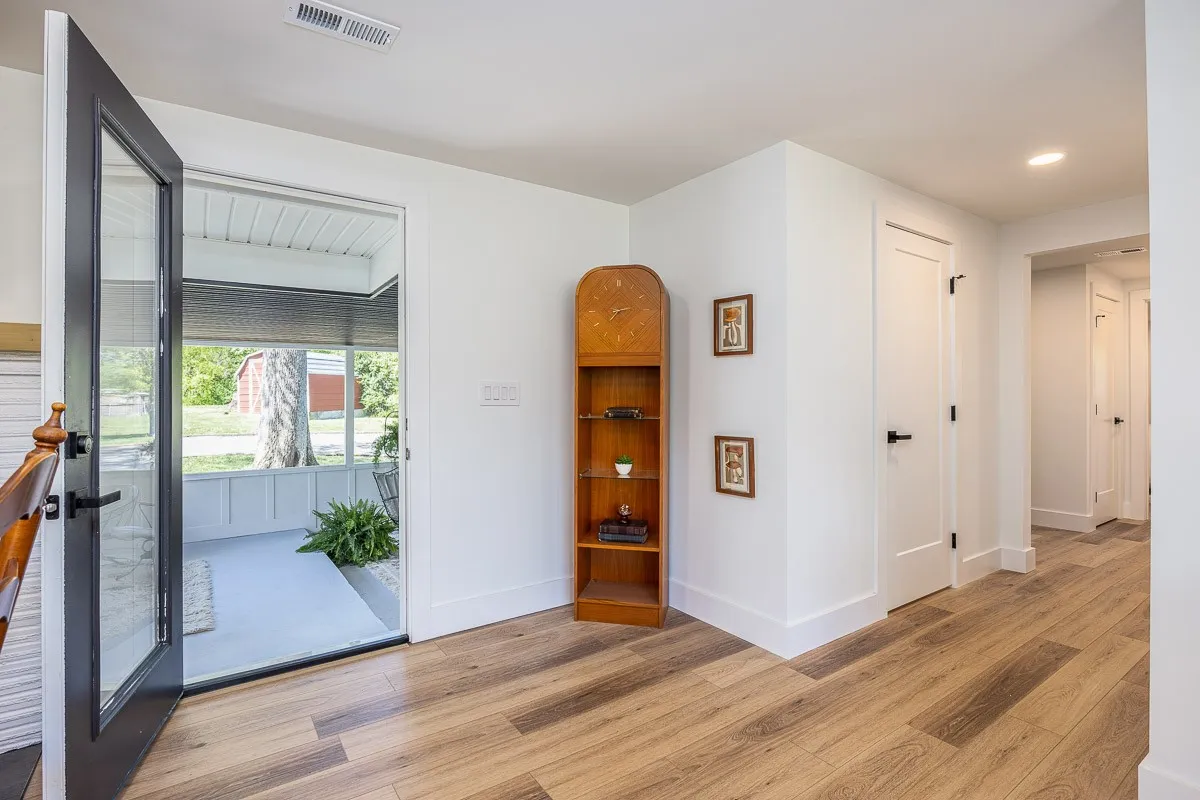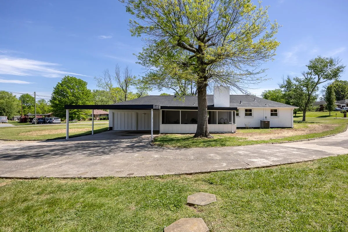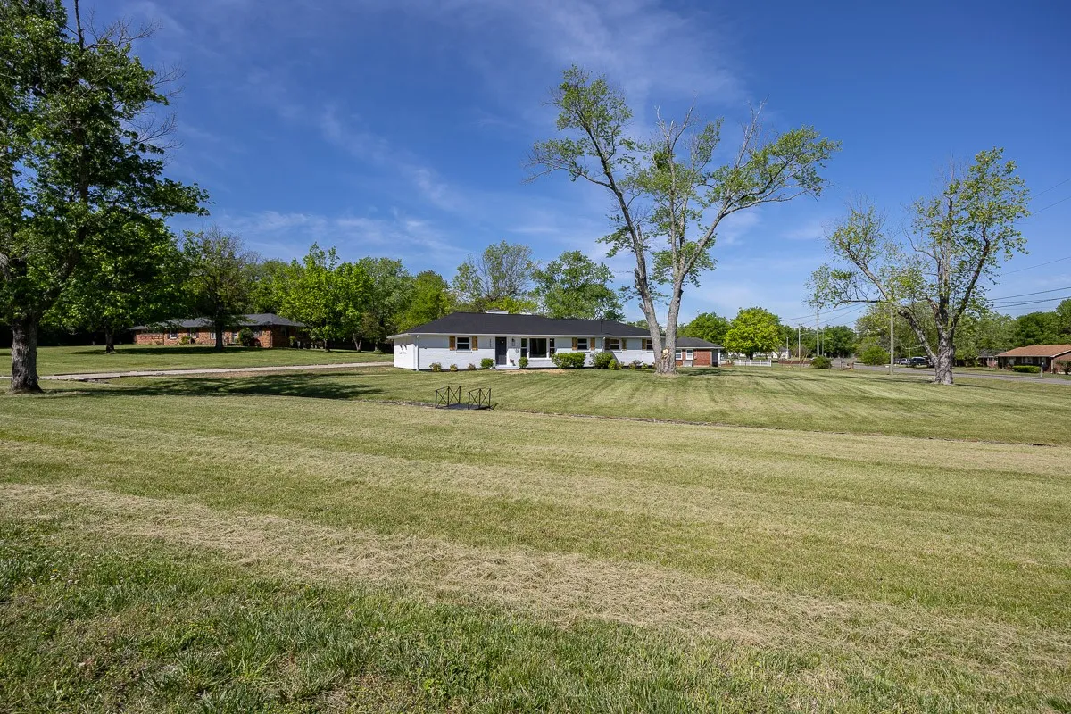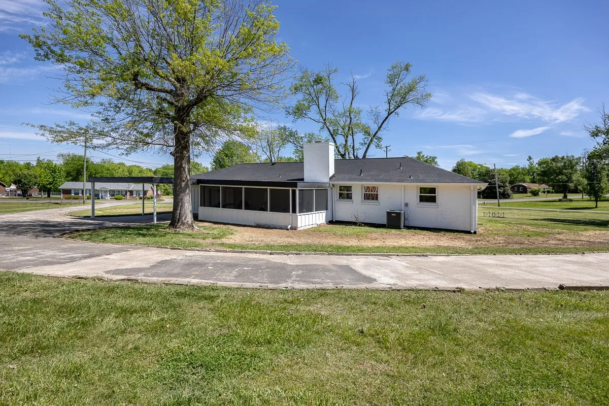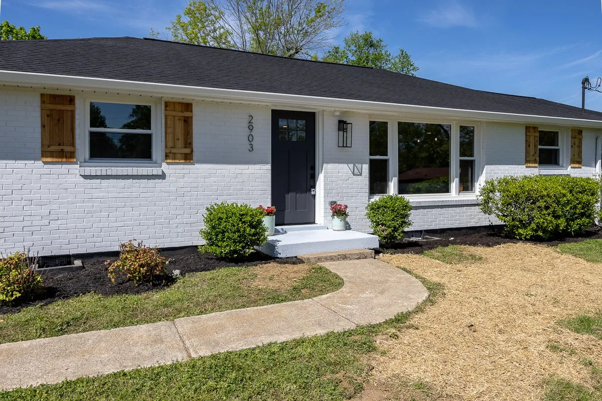 Multiple offers received. Please submit offers by Sunday May 12 at 3pm, response by Monday at 2pm. Another stunning renovation by BrassTacks Construction, this renovated mid-century ranch is in the quiet neighborhood of Hillhurst acres, one of the best-kept secrets of East Nashville. Almost an acre of level yard on a corner lot– approach along the half-circle driveway behind, pulling under the two car carport. The lot offers ample space for outdoor enjoyment and relaxation out front as well, or unwind on your huge screened back porch away from it all! Come in to a bright, inviting open design providing flexibility for living room and dining room layouts, a beautiful kitchen with island and backsplash. The split floor plan provides separation of the primary suite from the other two bedrooms, and charming touches like the brick fireplace and cozy built-in drop-zone help make this place the perfect place to call home! New roof/ HVAC/ductwork/ electrical/ plumbing. All you need is movers!