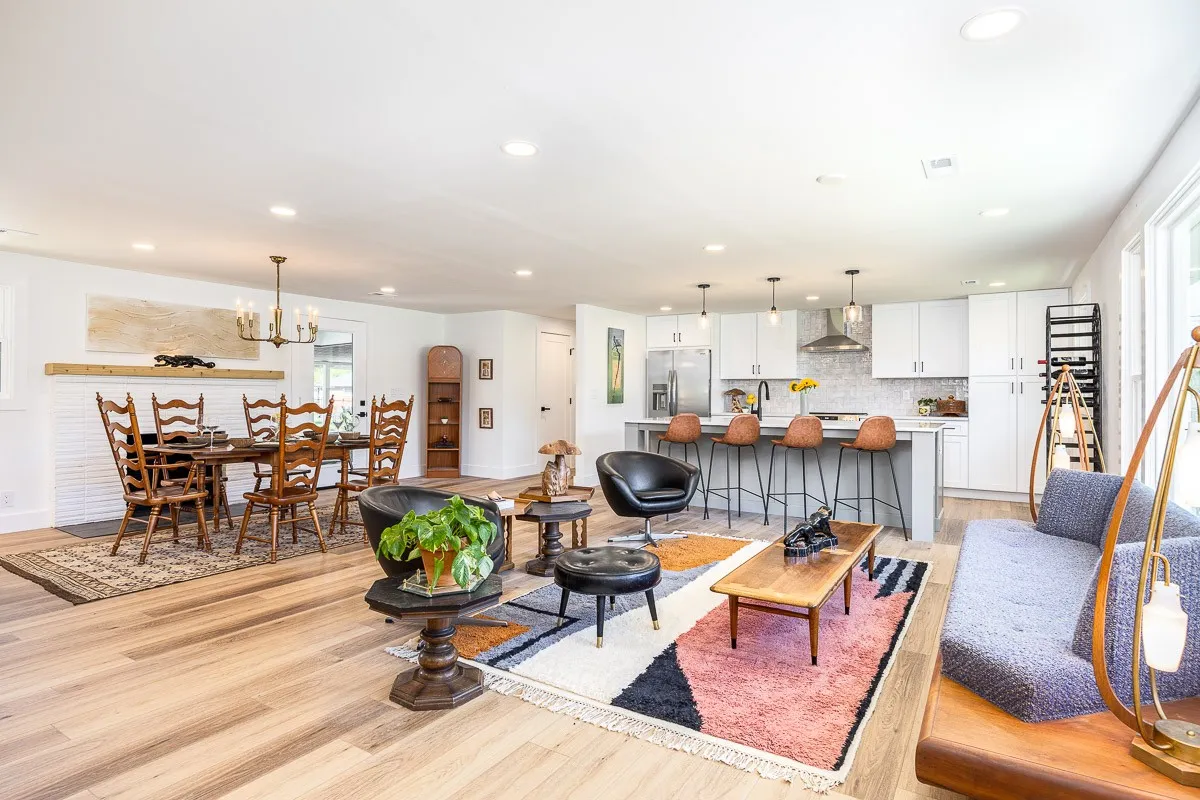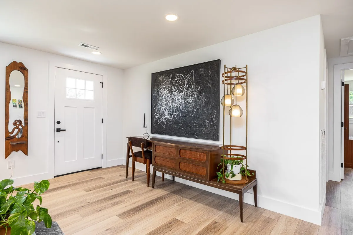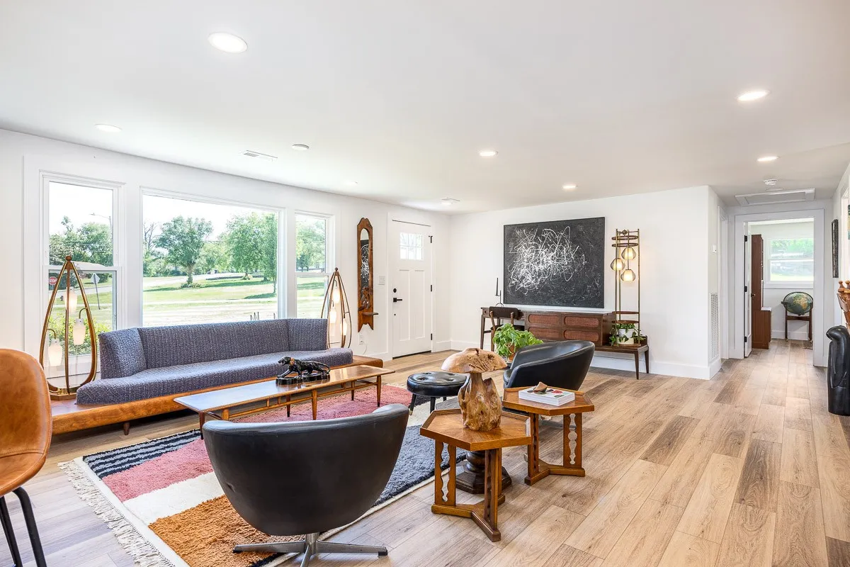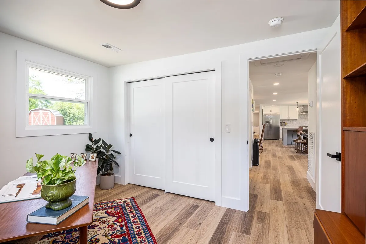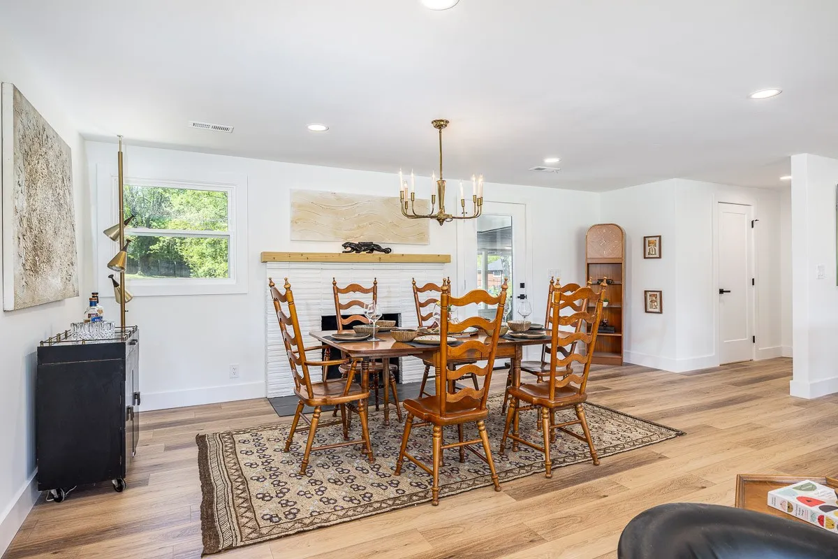 Multiple offers received. Please submit offers by Sunday May 12 at 3pm, response by Monday at 2pm. Another stunning renovation by BrassTacks Construction, this renovated mid-century ranch is in the quiet neighborhood of Hillhurst acres, one of the best-kept secrets of East Nashville. Almost an acre of level yard on a corner lot– approach along the half-circle driveway behind, pulling under the two car carport. The lot offers ample space for outdoor enjoyment and relaxation out front as well, or unwind on your huge screened back porch away from it all! Come in to a bright, inviting open design providing flexibility for living room and dining room layouts, a beautiful kitchen with island and backsplash. The split floor plan provides separation of the primary suite from the other two bedrooms, and charming touches like the brick fireplace and cozy built-in drop-zone help make this place the perfect place to call home! New roof/ HVAC/ductwork/ electrical/ plumbing. All you need is movers!
