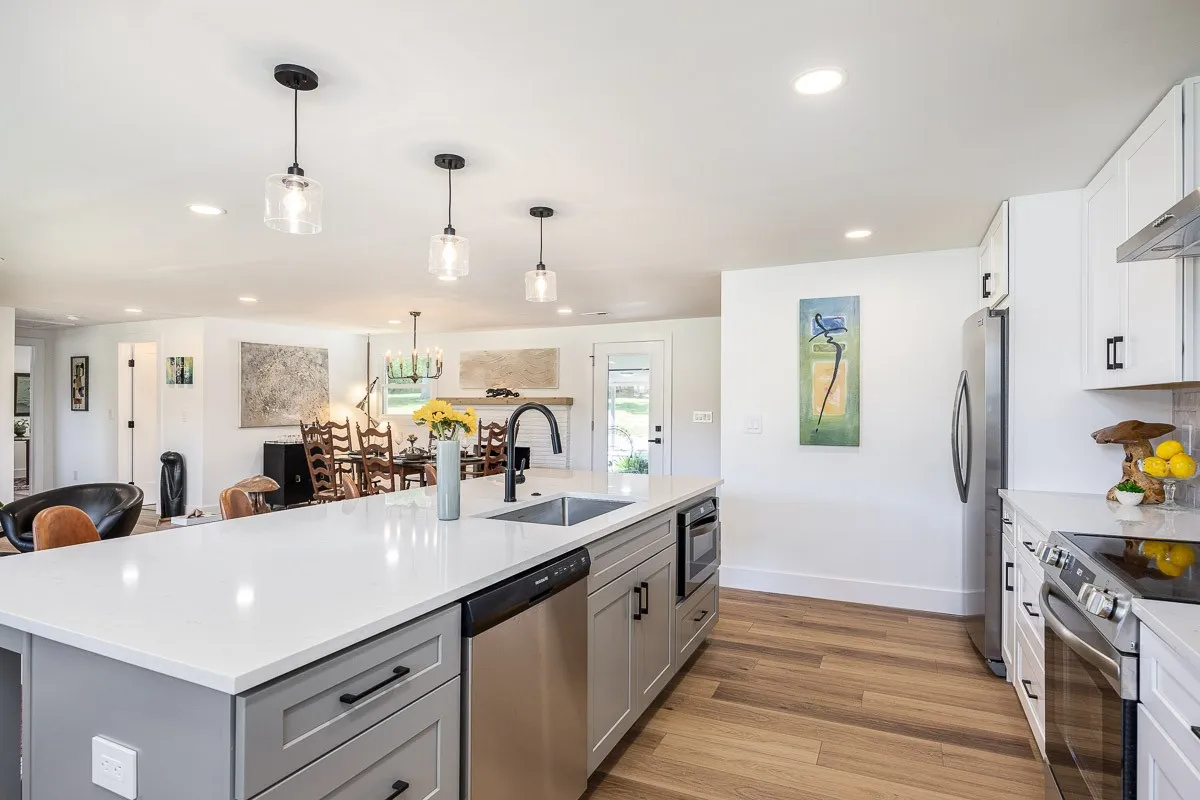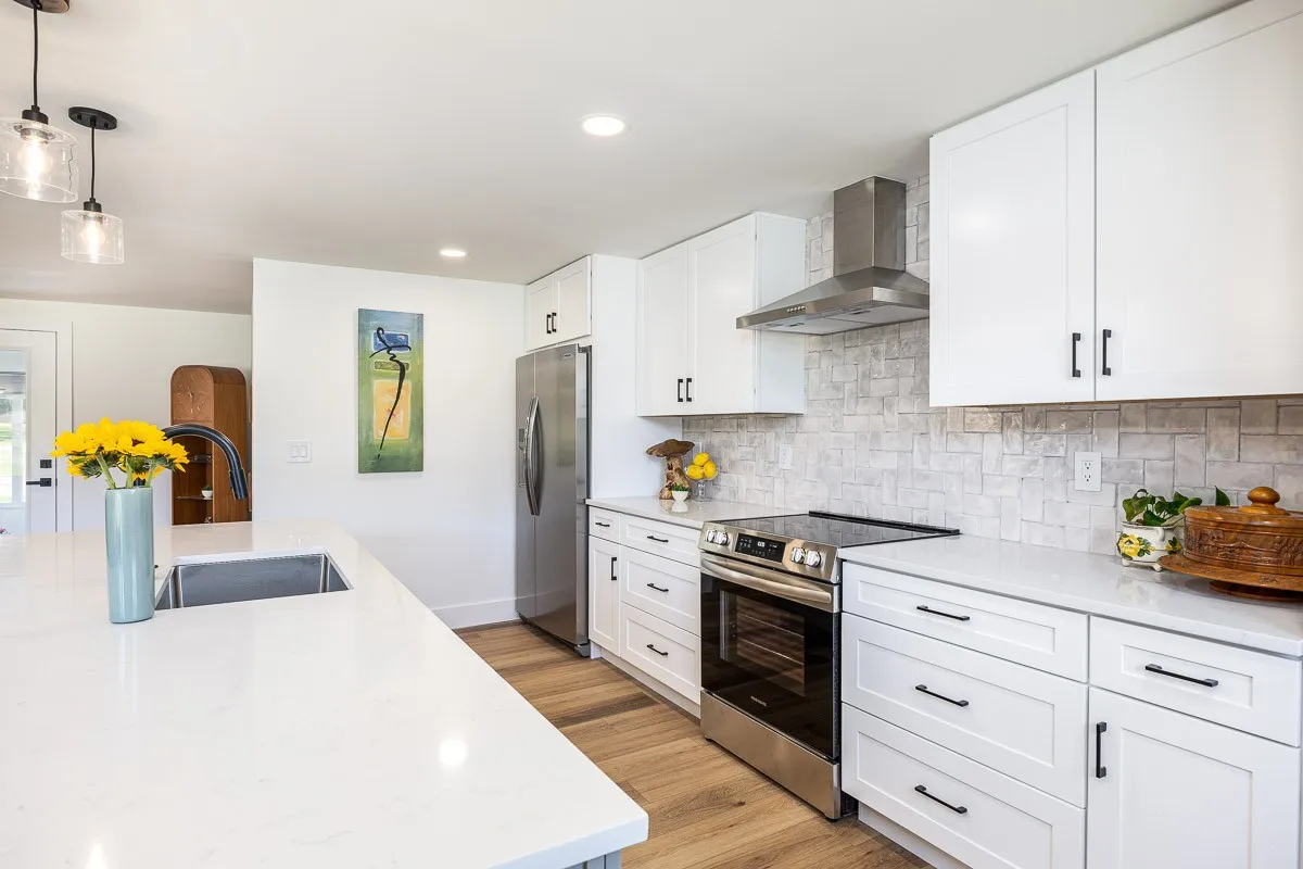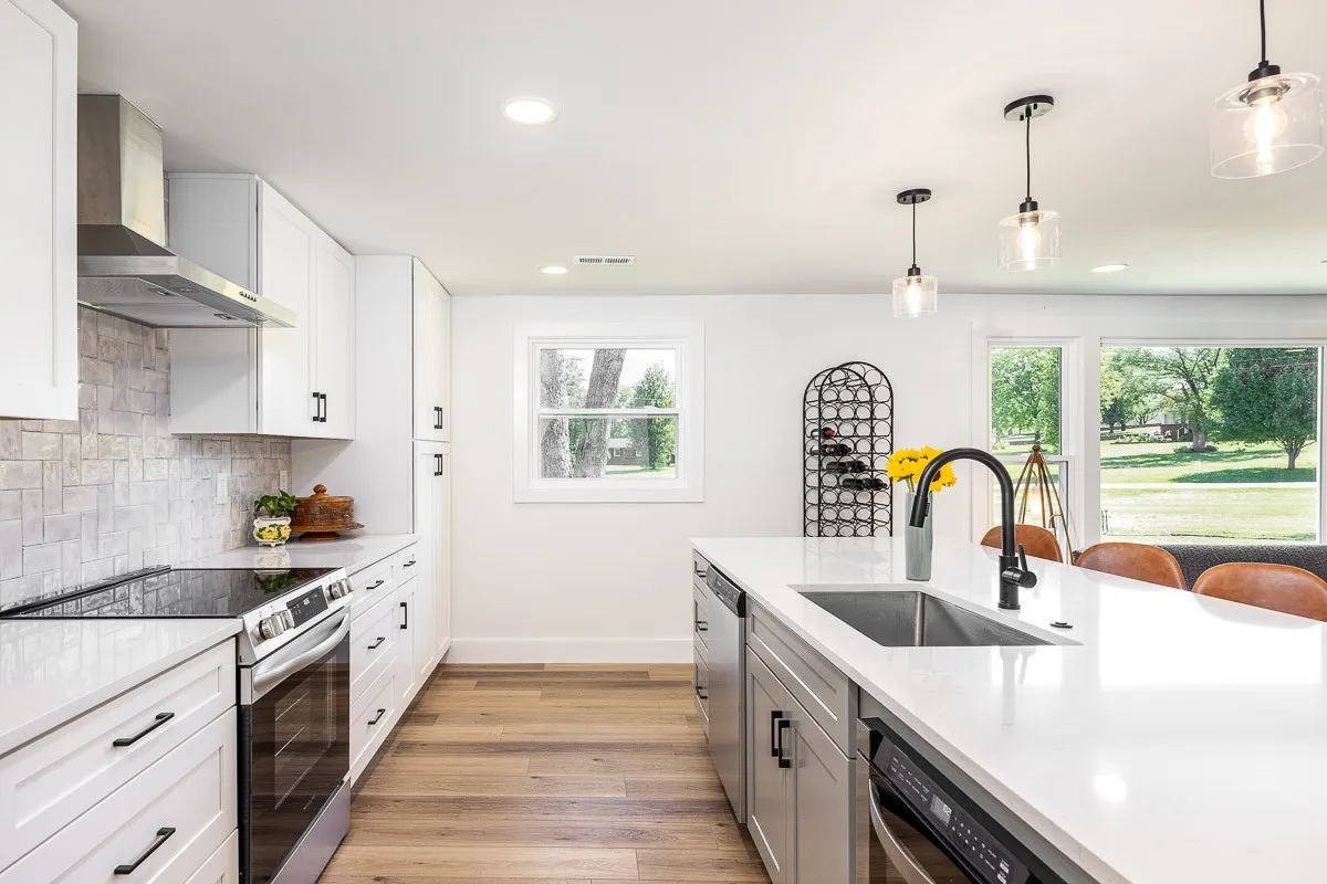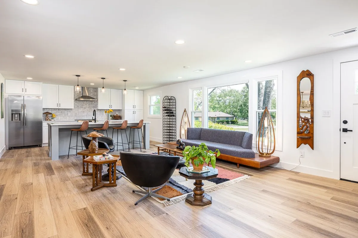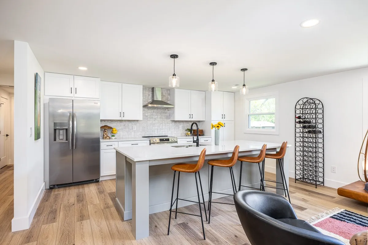 Multiple offers received. Please submit offers by Sunday May 12 at 3pm, response by Monday at 2pm. Another stunning renovation by BrassTacks Construction, this renovated mid-century ranch is in the quiet neighborhood of Hillhurst acres, one of the best-kept secrets of East Nashville. Almost an acre of level yard on a corner lot– approach along the half-circle driveway behind, pulling under the two car carport. The lot offers ample space for outdoor enjoyment and relaxation out front as well, or unwind on your huge screened back porch away from it all! Come in to a bright, inviting open design providing flexibility for living room and dining room layouts, a beautiful kitchen with island and backsplash. The split floor plan provides separation of the primary suite from the other two bedrooms, and charming touches like the brick fireplace and cozy built-in drop-zone help make this place the perfect place to call home! New roof/ HVAC/ductwork/ electrical/ plumbing. All you need is movers!
