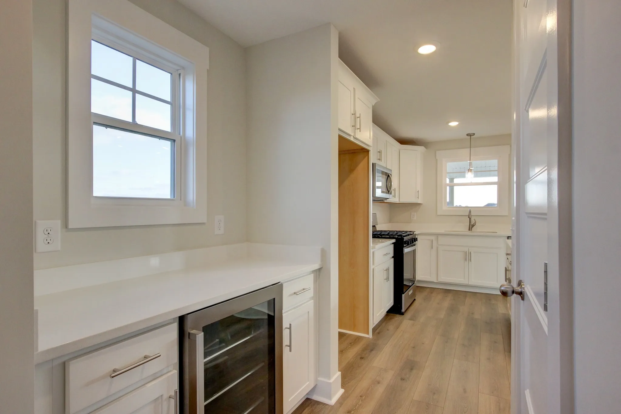 Fantastic 4BR/2.5BA on an open floor plan. Great room with shiplap fireplace opens to the kitchen. Kitchen with tons of cabinets featuring soft close drawers/doors, quartz tops, pantry, butler’s pantry, beverage fridge and an island. Custom trim work in entry hall and dining room. Mud room with built-in lockers/storage bench. All bedrooms and laundry room upstairs. Primary suite has full bathroom with double vanity, separate tiled shower, tub and two large walk-in closets. All three additional BRs have walk-in closets. Covered front porch and large covered rear patio.