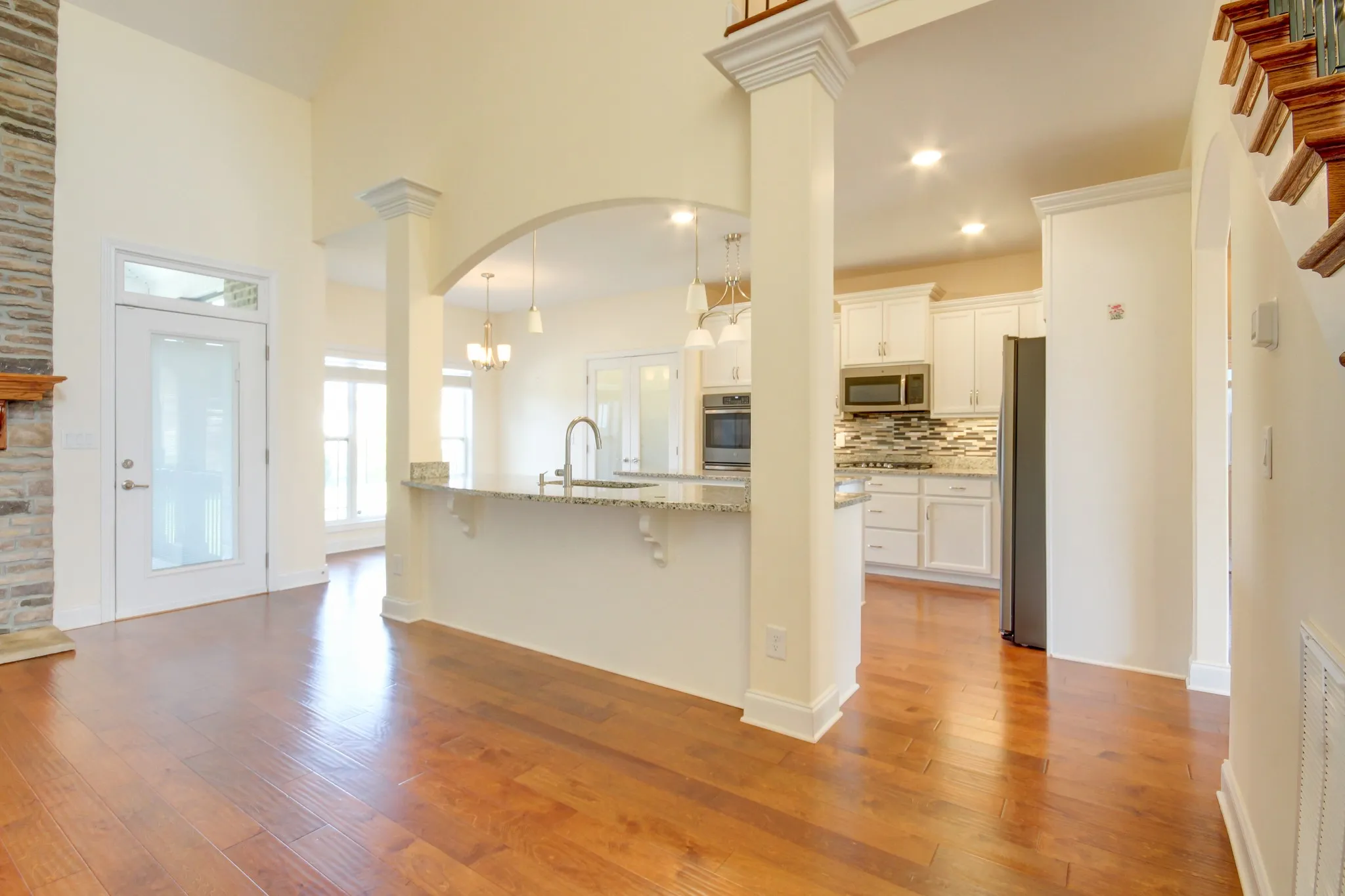 +"PublicRemarks": "Welcome to this beautiful ALL BRICK Contemporary Home with 4 Bedrooms plus HUGE Bonus room that includes a 1/2 Bath and Walk in Closet(could be 5th bedroom). Popular open floor plan features a luxurious Primary Suite and 2nd Bedroom on Main level. You will be impressed with the gorgeous Hardwood Flooring throughout main level (with tile flooring in the bathrooms and laundry ROOM). Stunning Great Room with 18 ft Ceilings and Stacked Stone fireplace with Gas Logs creating a warm and inviting atmosphere. You will love this Chef's kitchen offering Granite counter tops, Island, Counter bar area, Wine/Drink Fridge, Double Oven, Gas cook top, Refrigerator, Tile Backsplash,Soft Close Cabinets,Pantry-perfect for both cooking and entertaining! Luxurious Primary Bedroom with Cozy Sitting Area, 2 Walk in Custom Closets, and Bath with Soaking Tub and Tiled Shower. Laundry ROOM with Cabinetry, Sink, and Fold down folding table. Upstairs gives you another full bath plus half bath, 2 large bedrooms, Roomy Landing area, and HUGE Bonus Room. Step out side to the covered and screened patio, or enjoy the open air patio overlooking a large backyard with aluminum fencing. Located in the desirable Hartley Hills area , you will enjoy easy access to the Interstate, Wilma Rudolph shopping area, Hospital and Dr offices, and not too far from Ft Campbell. All this house needs is YOU to make it home!"