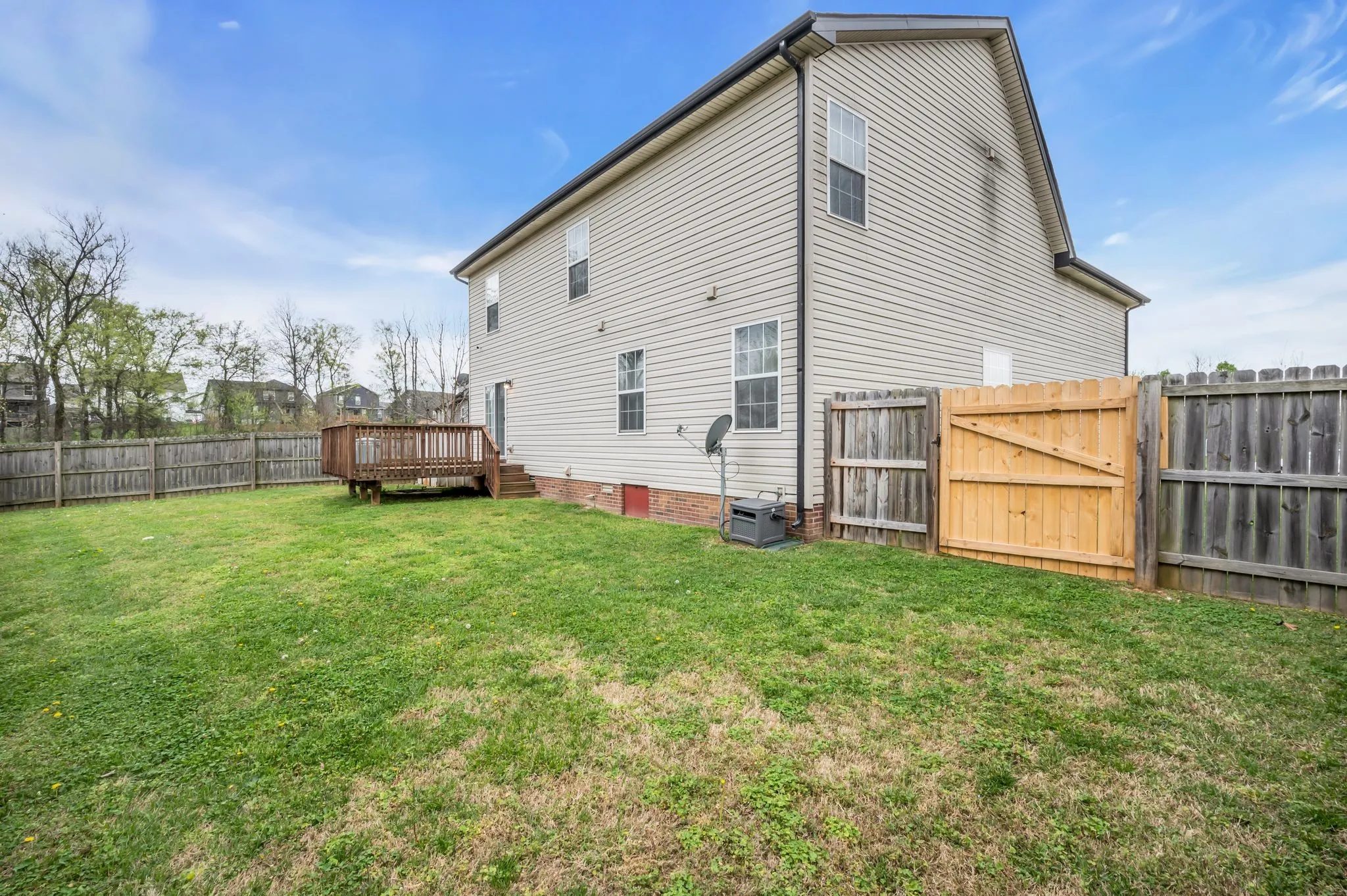 NO HOA & Priced below market value, this property offers a remarkable opportunity. Featuring a desirable Owner’s Suite on the main floor with a luxurious ensuite bathroom that includes double vanities, jacuzzi tub and separate shower, this 4-bedroom, 2.5-bathroom home provides ample space for family living. With Granite Countertops and Stainless Steel Appliances to include a new fridge, the kitchen is both elegant and functional. Enjoy the cozy fireplace during cool evenings and the NEW HVAC on them hot summer days. Hardwood floors in the main living area add a subtle touch of elegance. Upstairs, discover three additional bedrooms and a bonus room ALL WITH NEW CARPET. Outside, the fenced backyard oasis with a sturdy deck is perfect for friends gathering and those family cookouts. Full security system stays, cameras, doorbell camera, and sensors. Valued at 1500.00 Don’t miss the chance to own this modern and very convenient home, ideal for creating cherished memories.(1 Year Warranty)