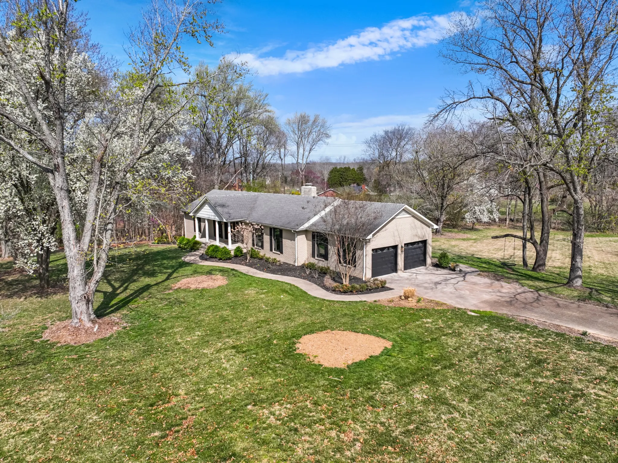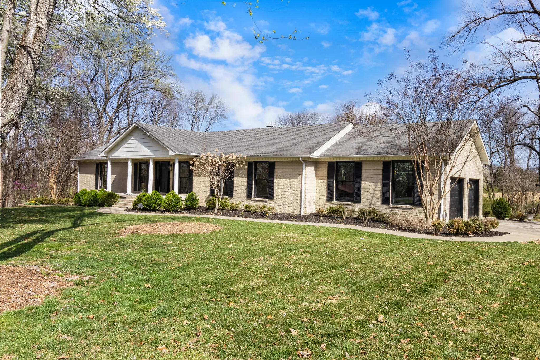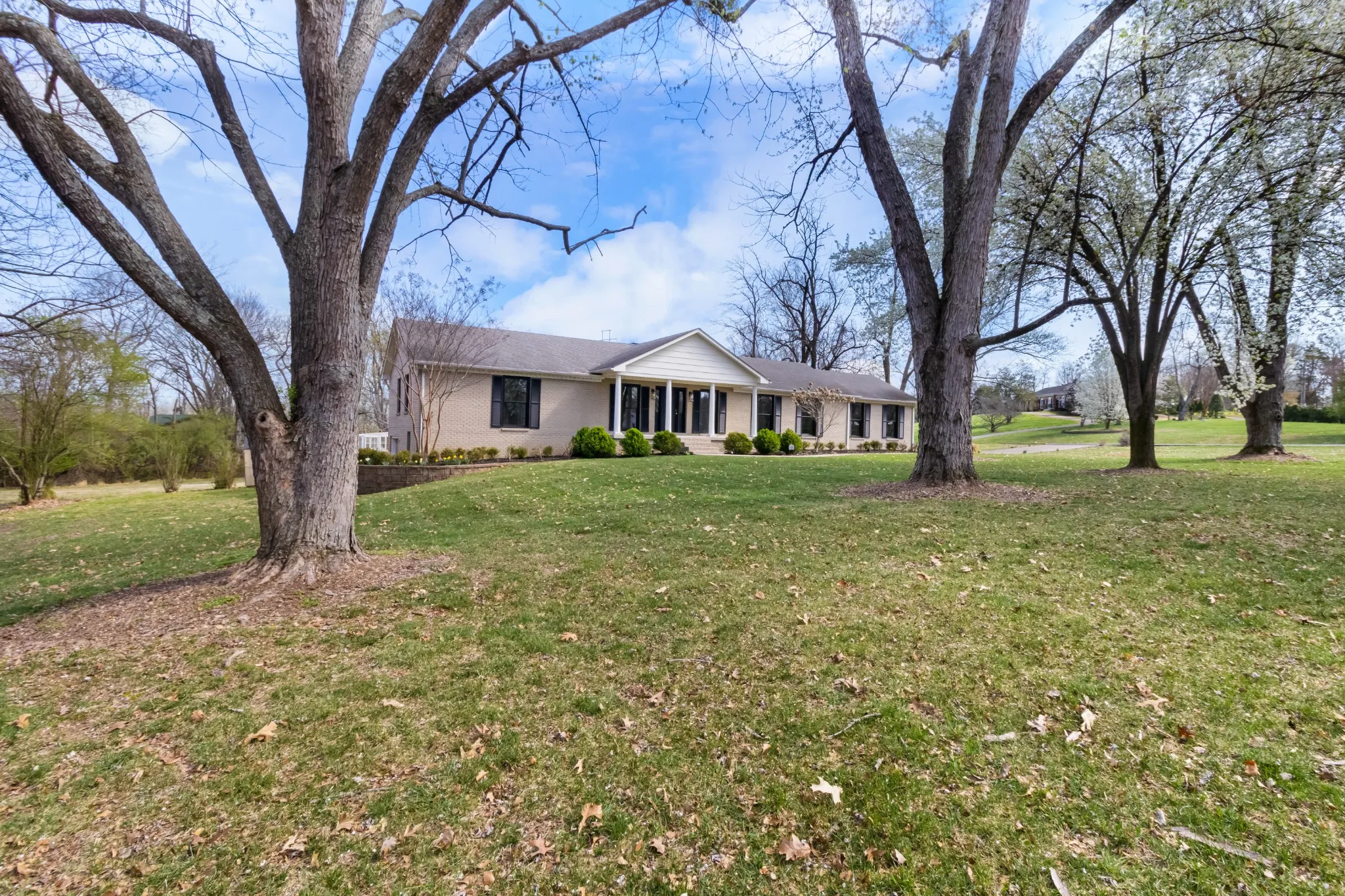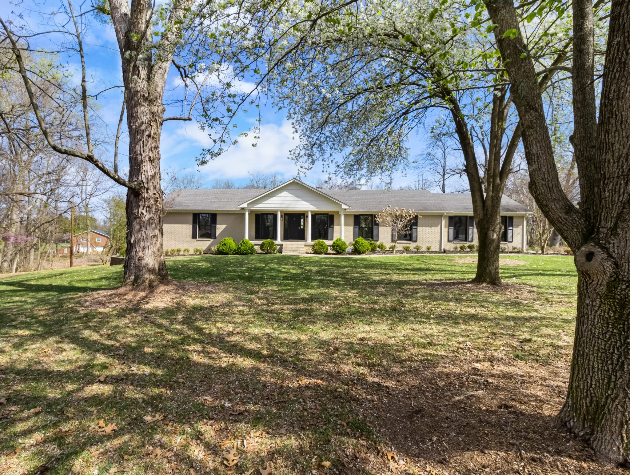 All brick ranch style home on 3 acres in the middle of Clarksville’s coveted Hilldale area! This beautifully crafted ranch style home features a marble foyer with sand and finish hardwoods throughout the remainder of the living areas. The primary bath has been updated and renovated to feature a large walk in tile shower with glass door. A wonderfully modern kitchen adorned with granite countertops and stainless appliances overlooking the den with a brick fireplace. A 2-car side load garage on grade makes transfer from shopping easy into the main living area, while the unfinished basement with 3rd garage is a utilitarian location for storage or future finishing for additional living square footage. Under the porch can function as a concrete shelter. Watch the deer race across your back yard heading to the river on this enormous 3 acre tract in the middle of the city limits while sitting under the covered elevated patio.
